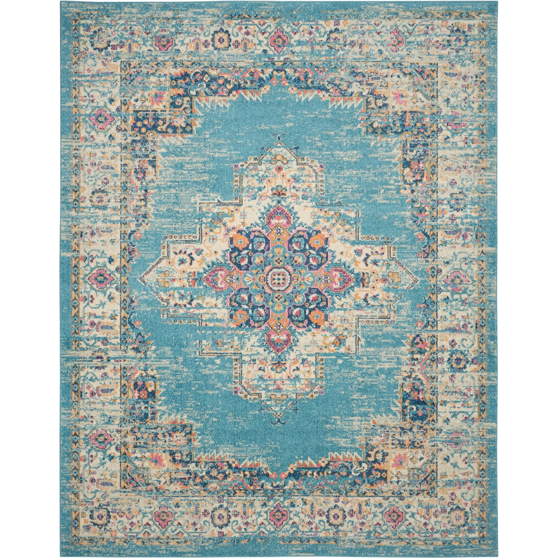 9' 6" x 13' - Light Blue/Blue - Rectangle