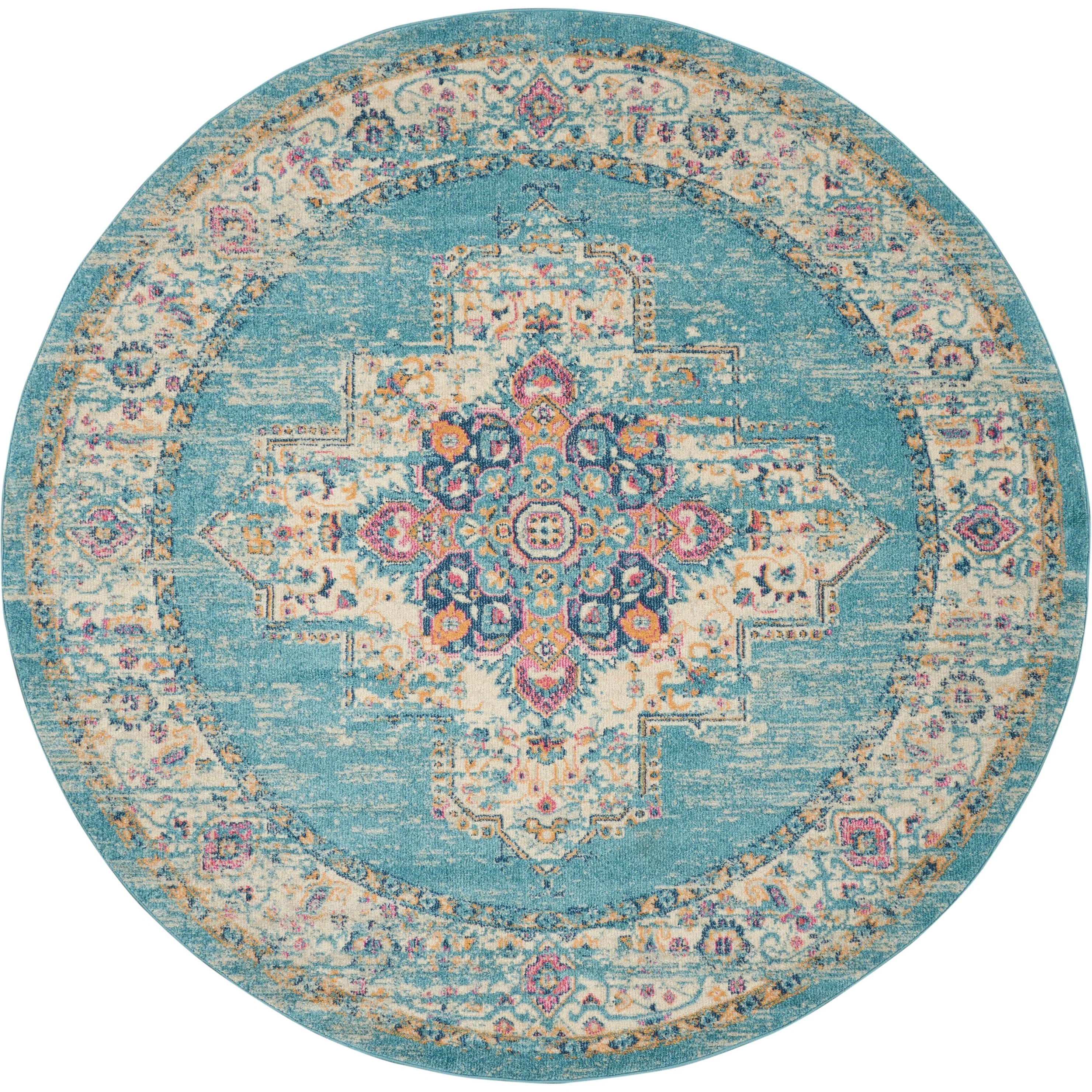 6'7" x 6'7" Round - Cream/Light Blue - Round