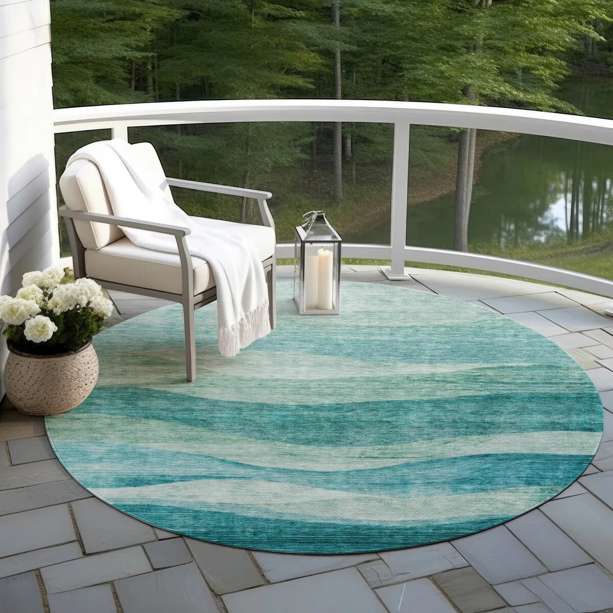 6'7" x 6'7" Round - Light Blue/Blue - Round