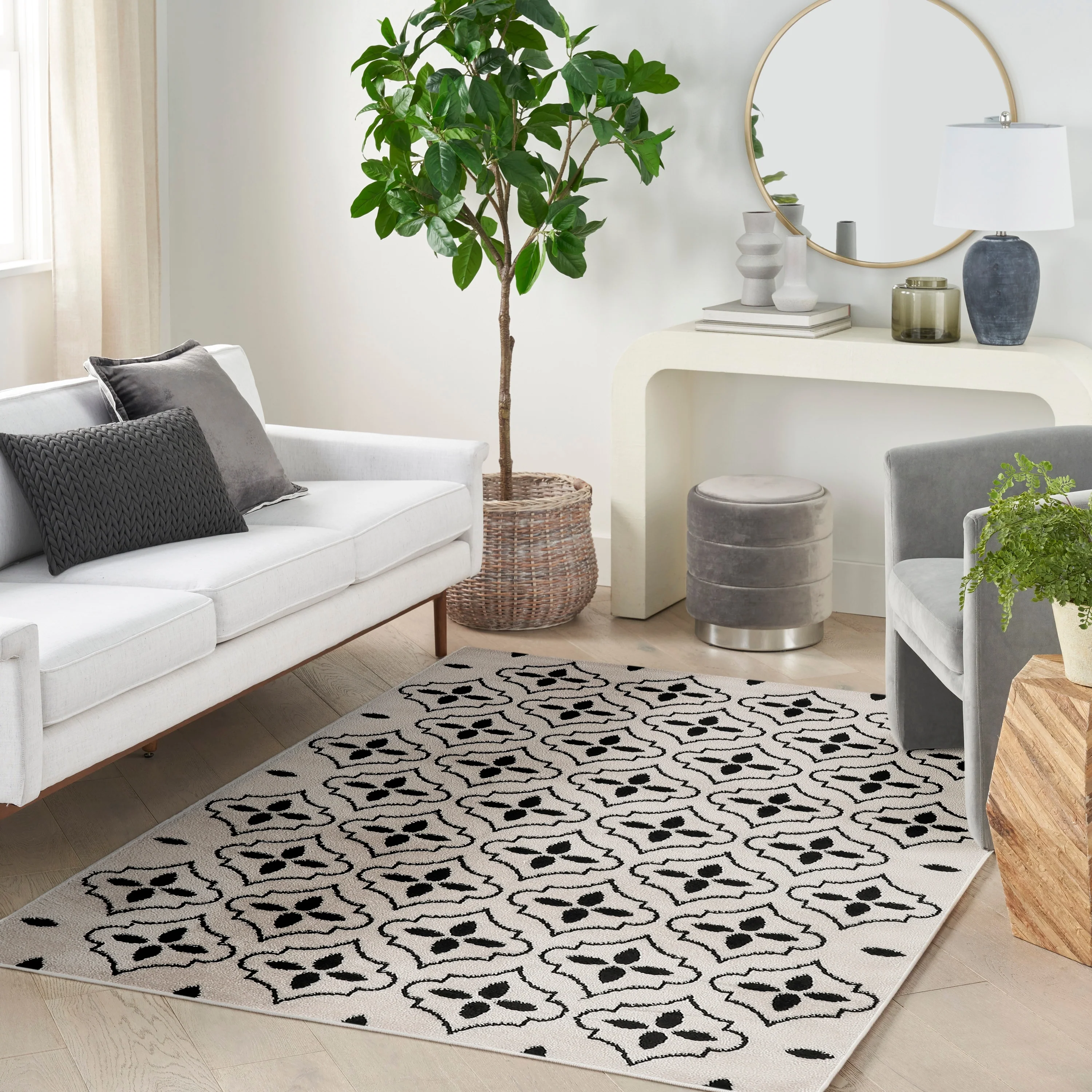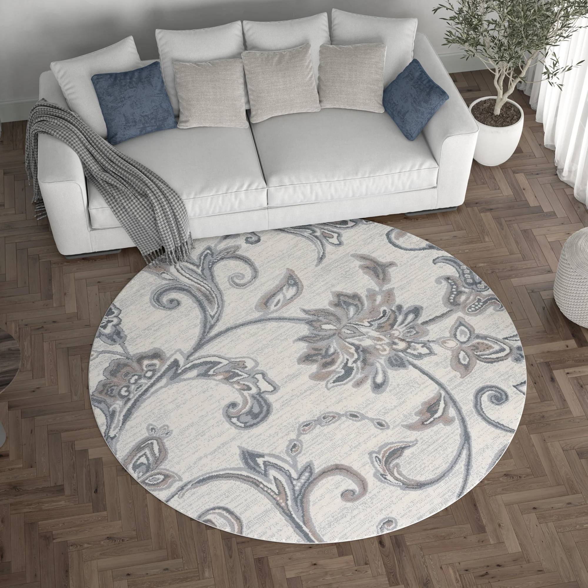 6'7" x 6'7" Round - Cream/Grey - Round