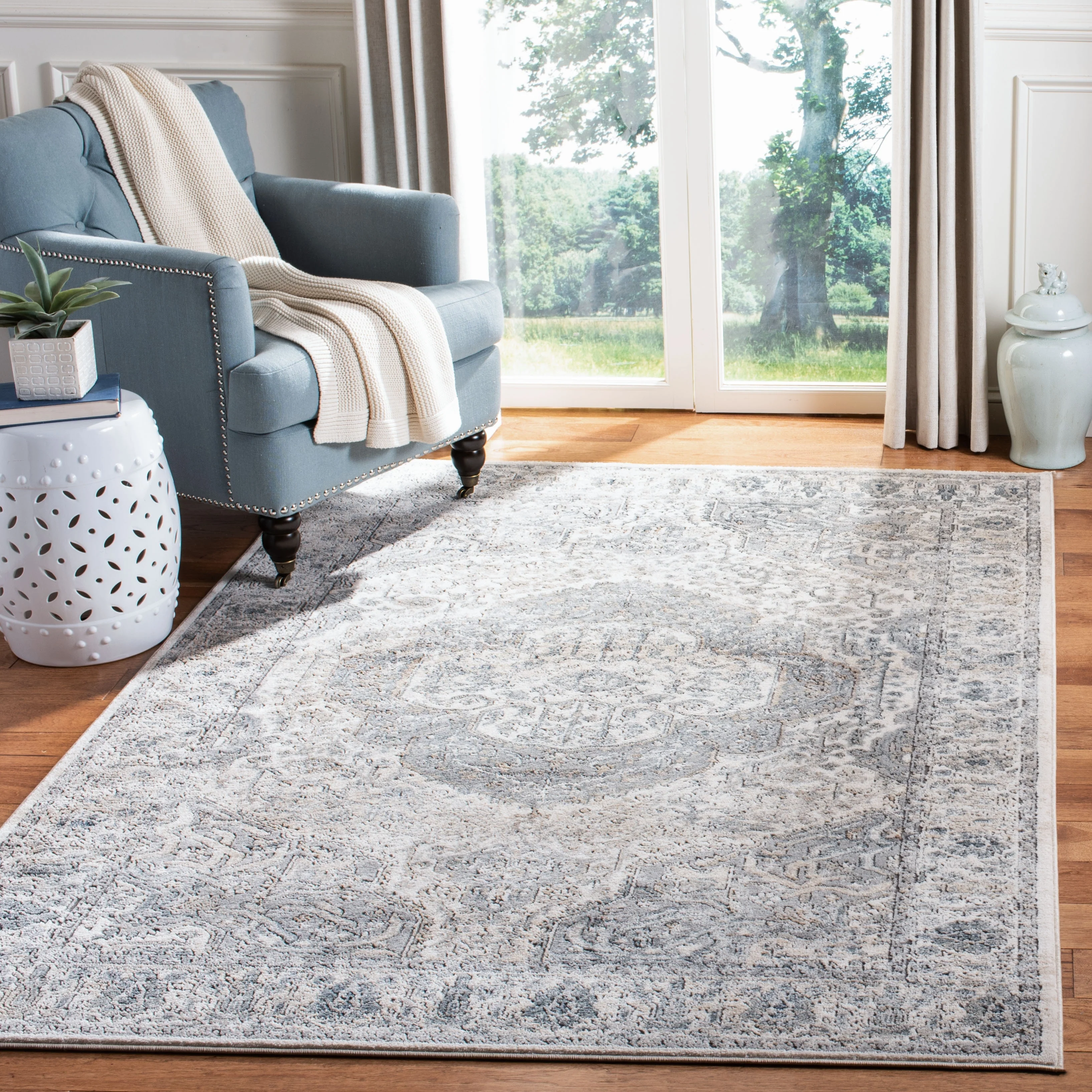 8' 6" x 12' - Cream/Blue - Rectangle