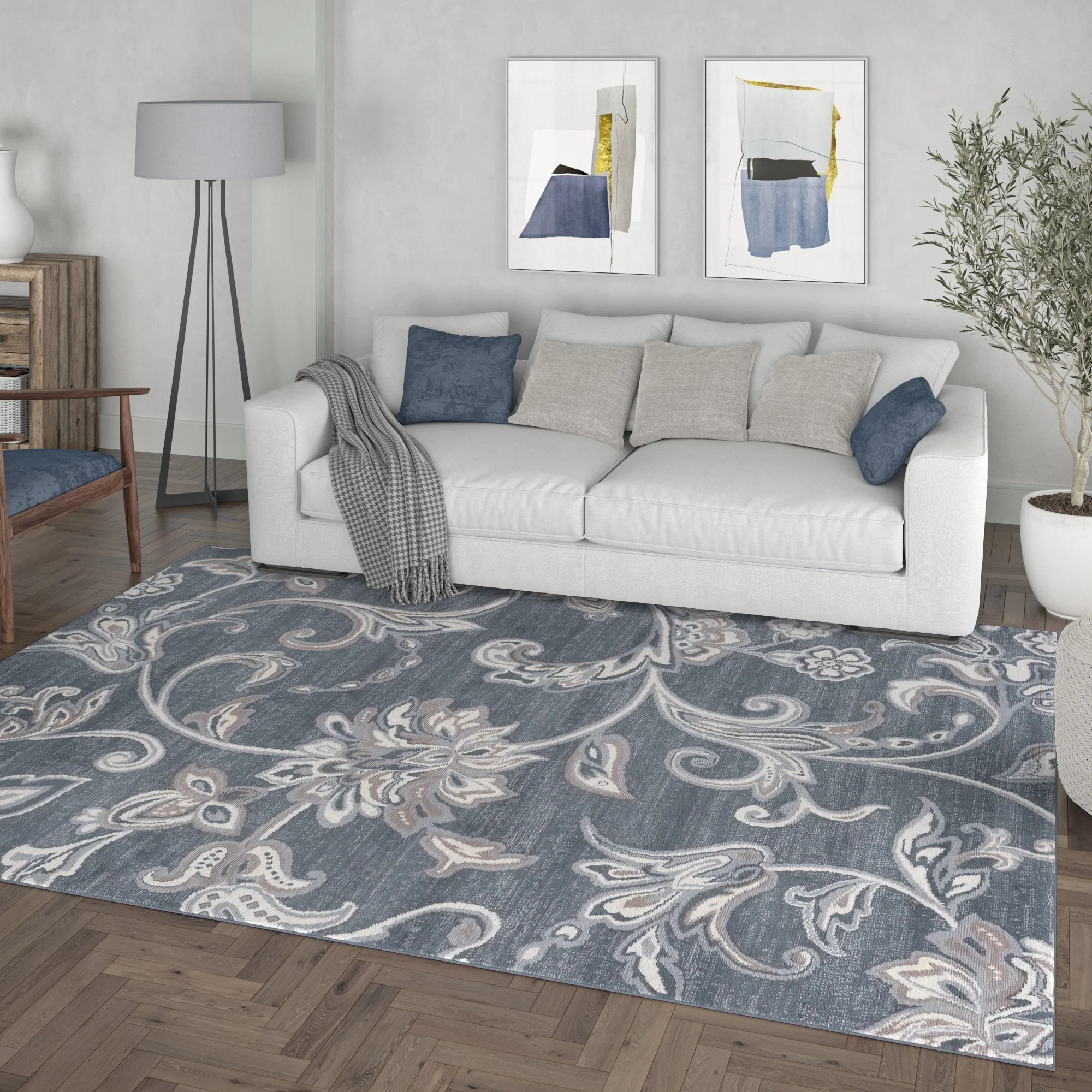 8' 6" x 12' - Dark Blue/Cream - Rectangle