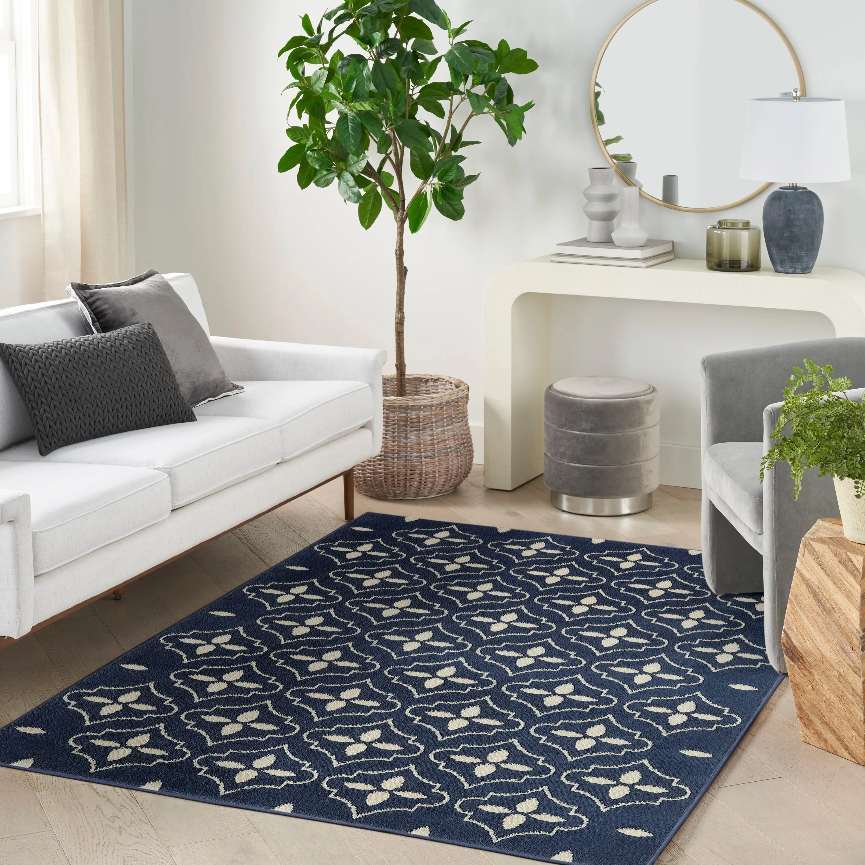 5' Round - Dark Blue/Cream - Round