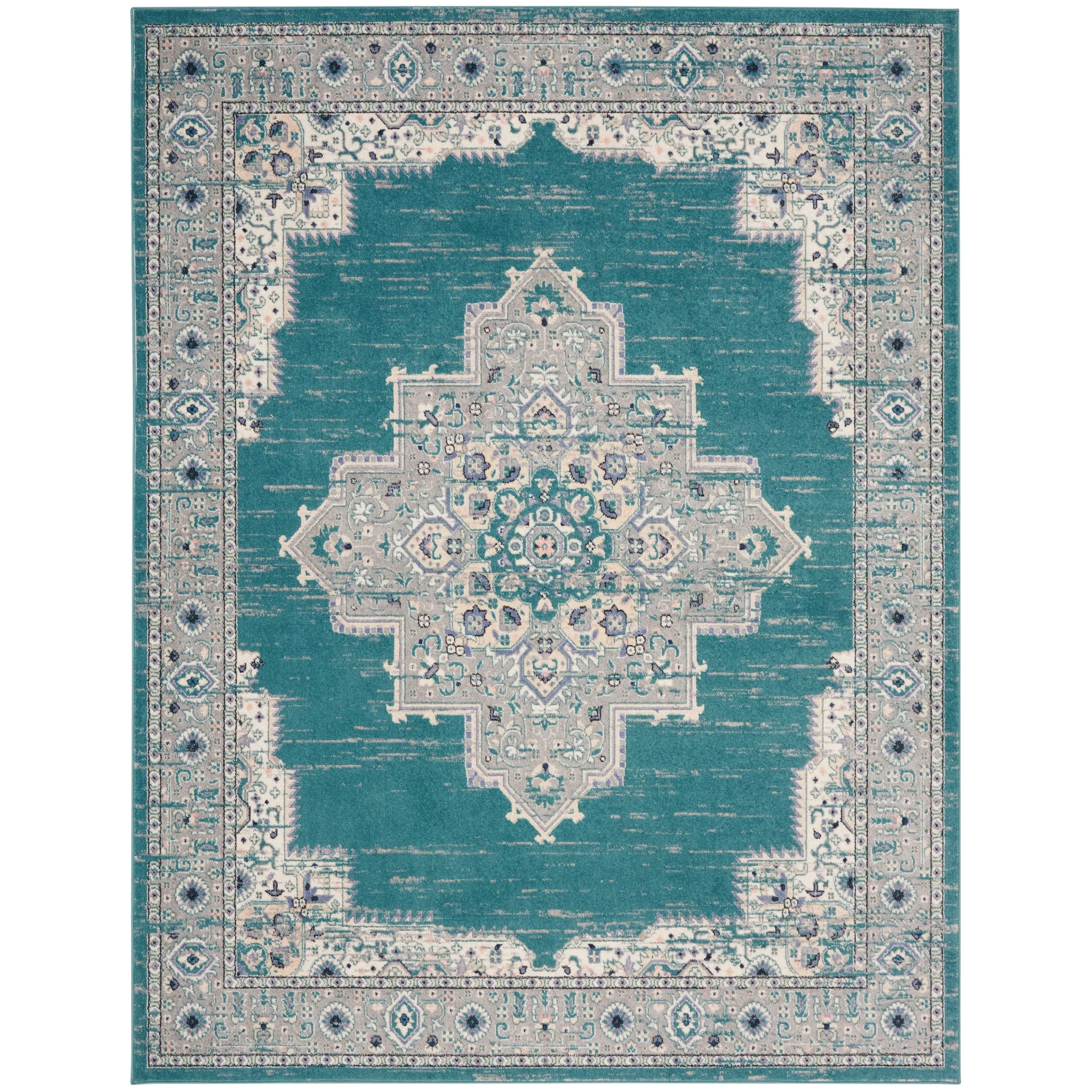 8' x 10' - Cream/Light Blue - Rectangle