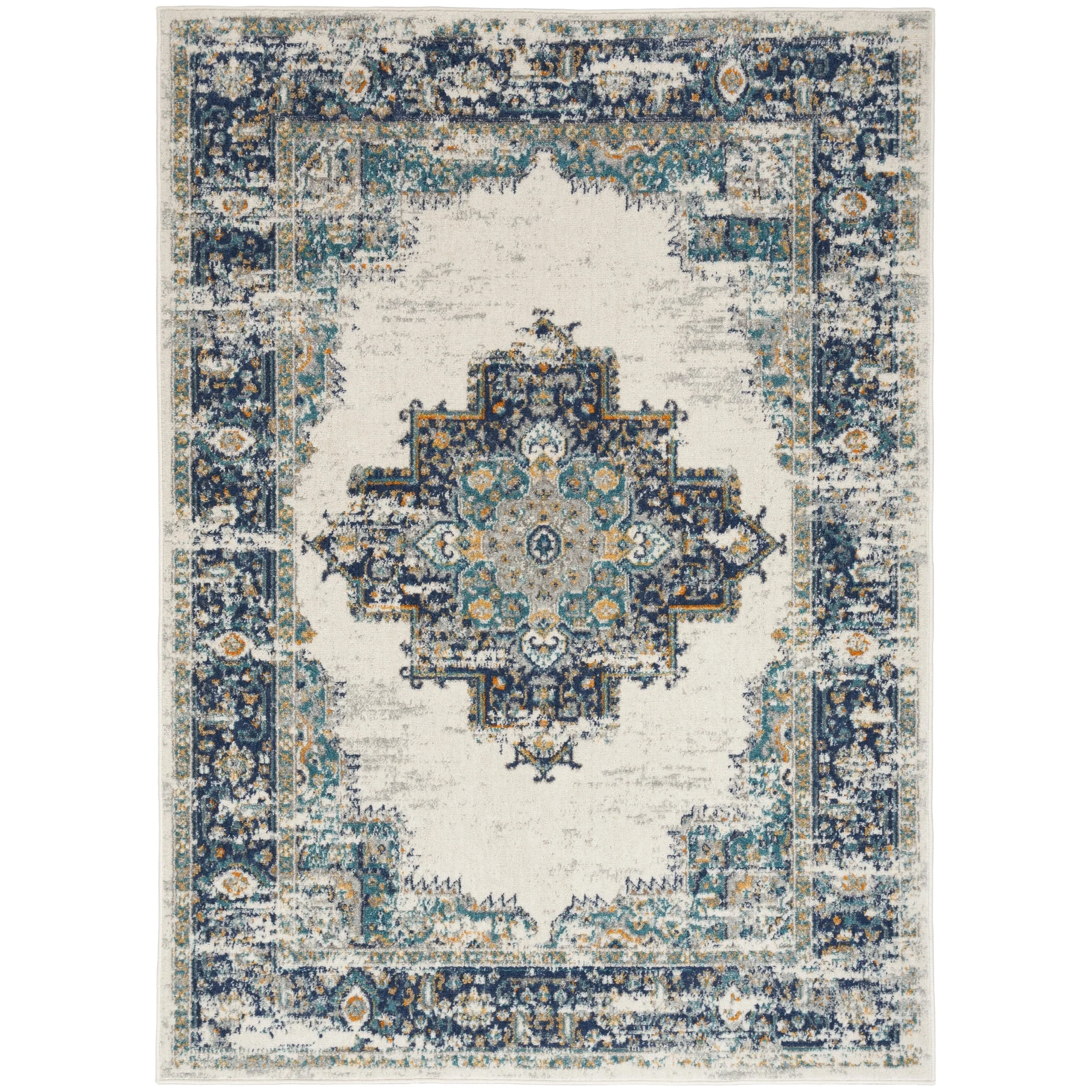 4' x 6' - Cream/Blue - Rectangle