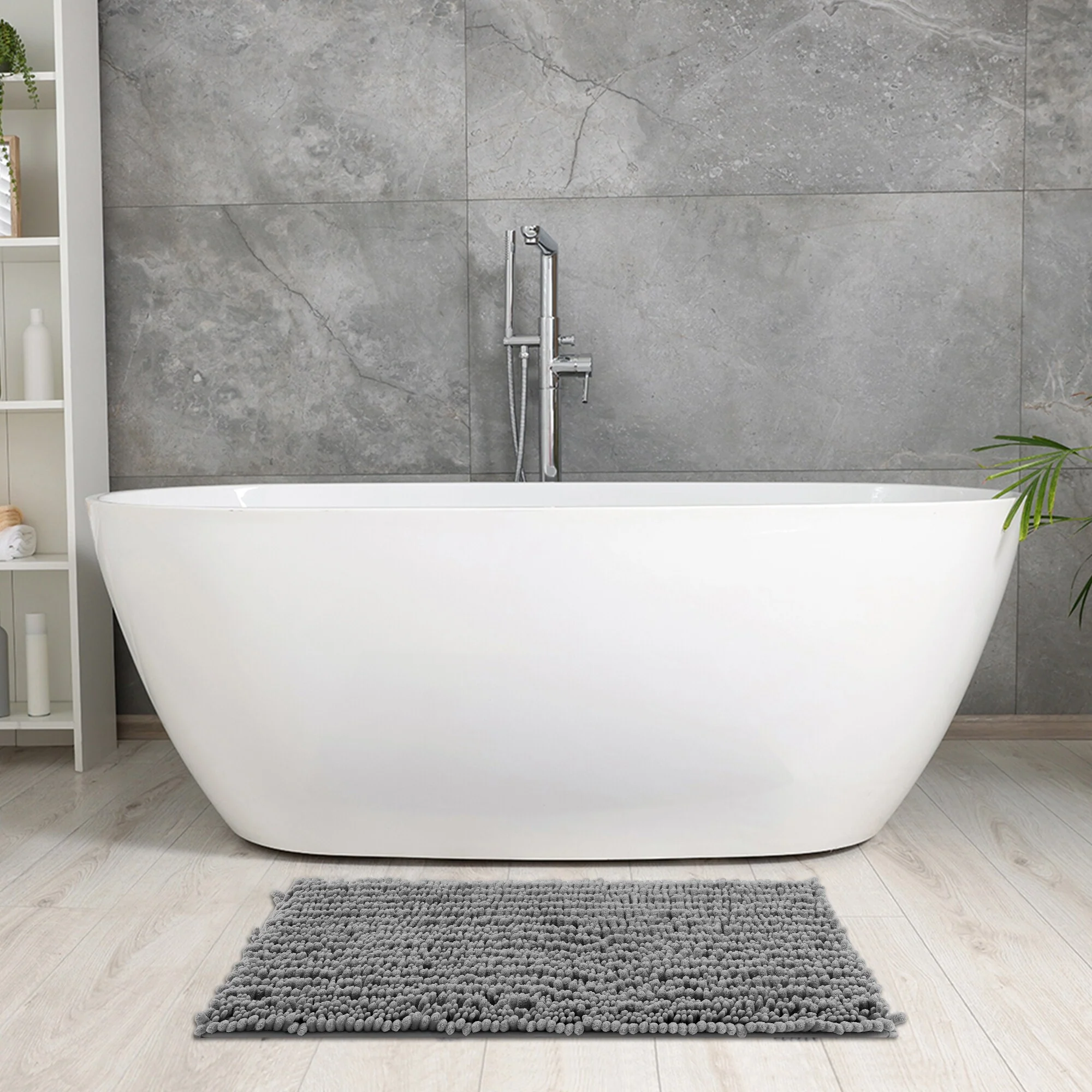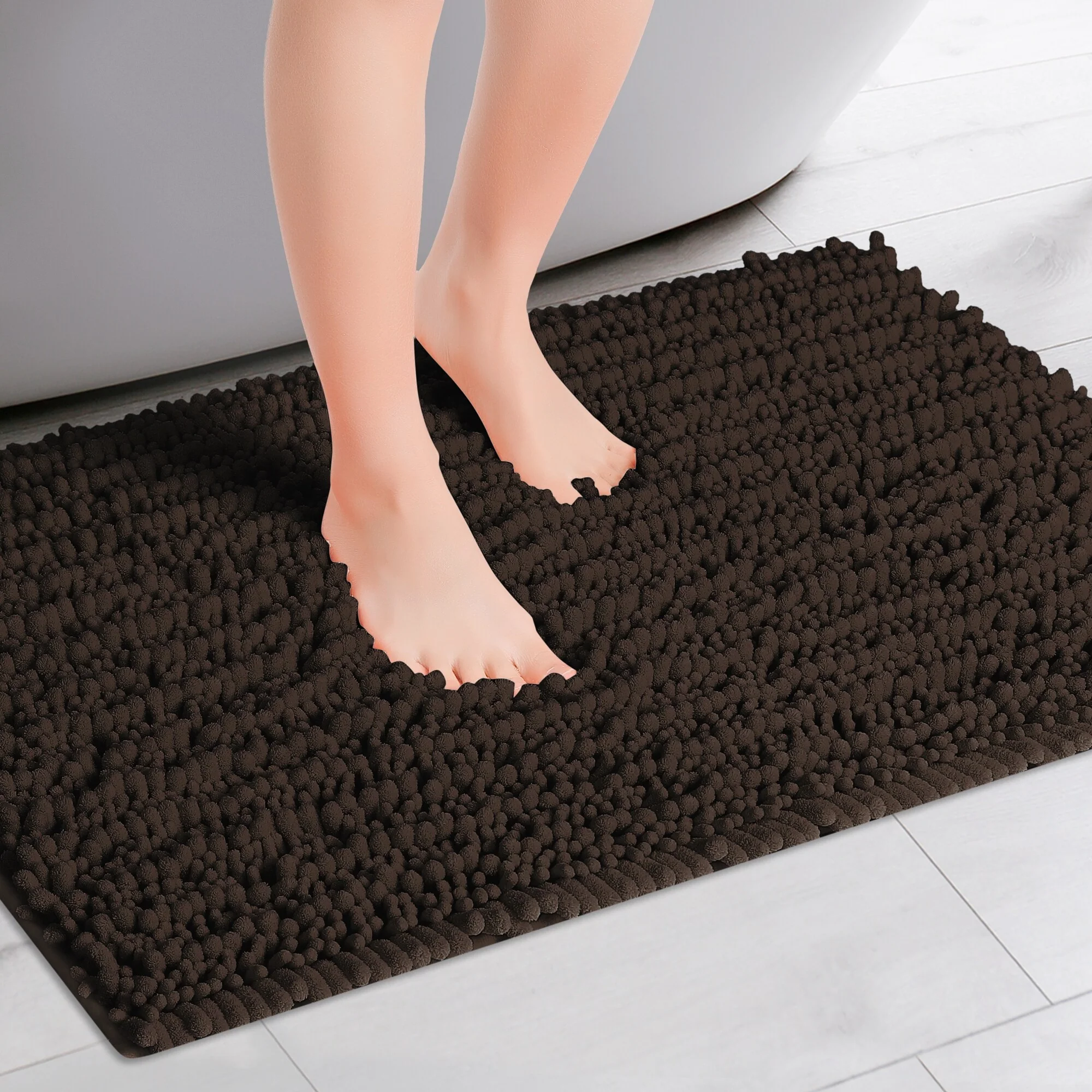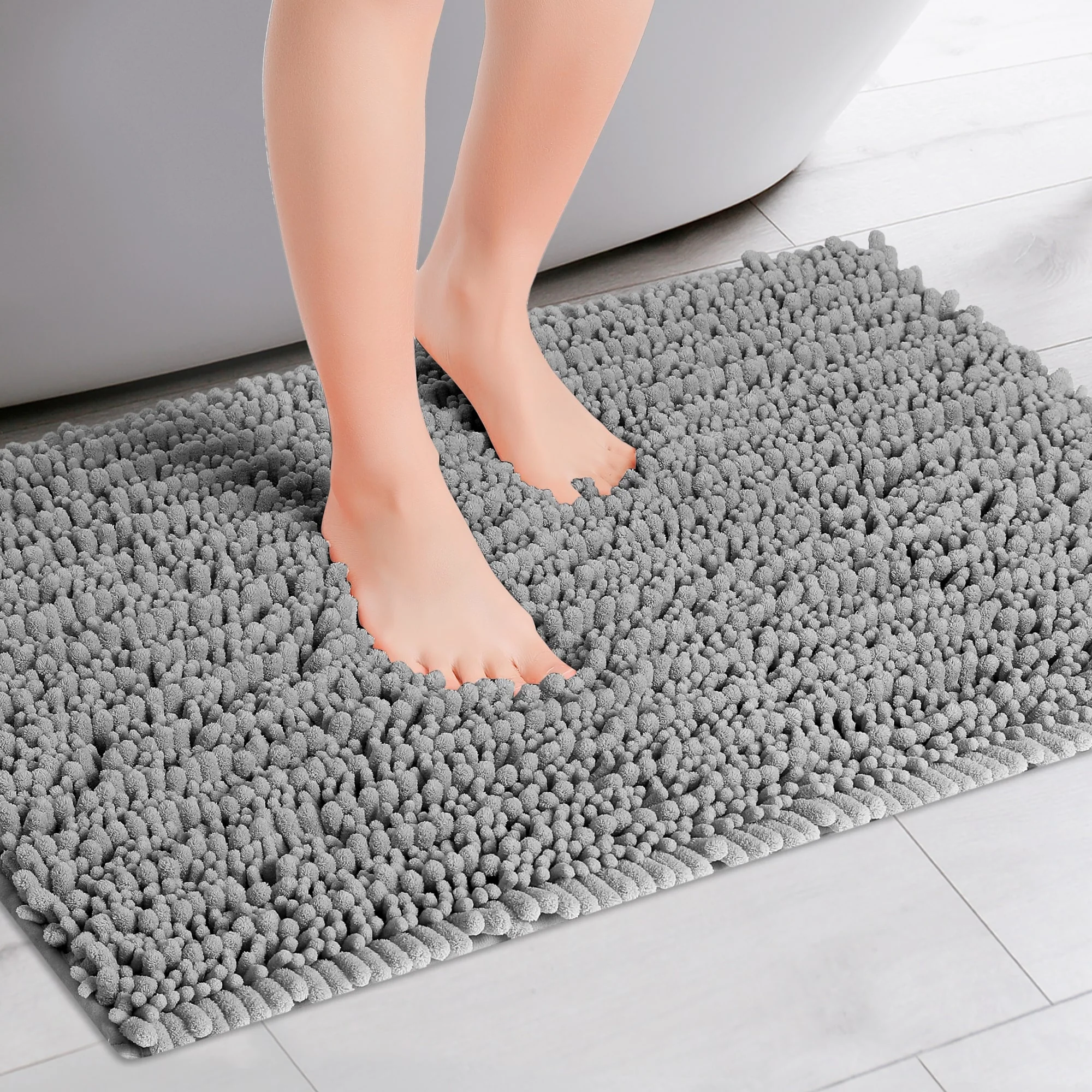 Chenille Bathroom Rugs Non-Slip Bath Mat, Plain Washable Soft Shower Mat, for Bathroom Floor