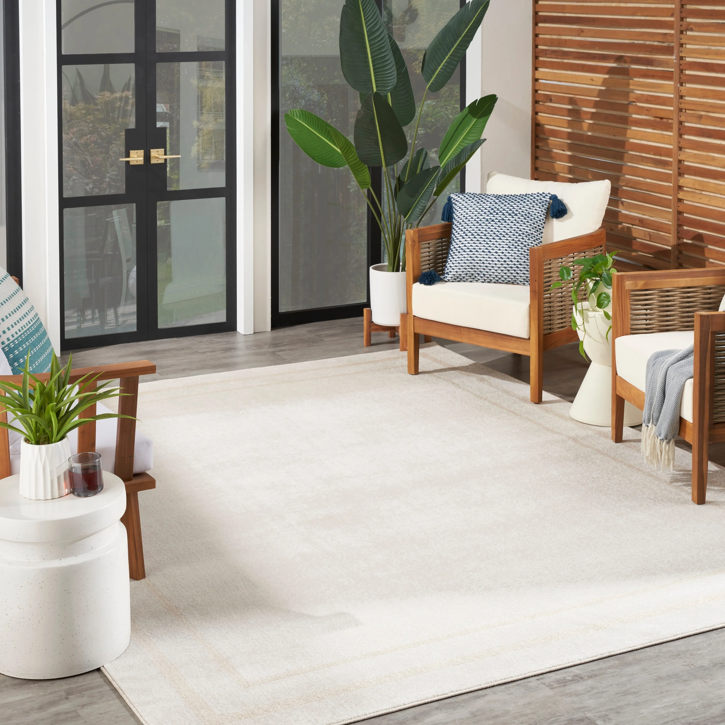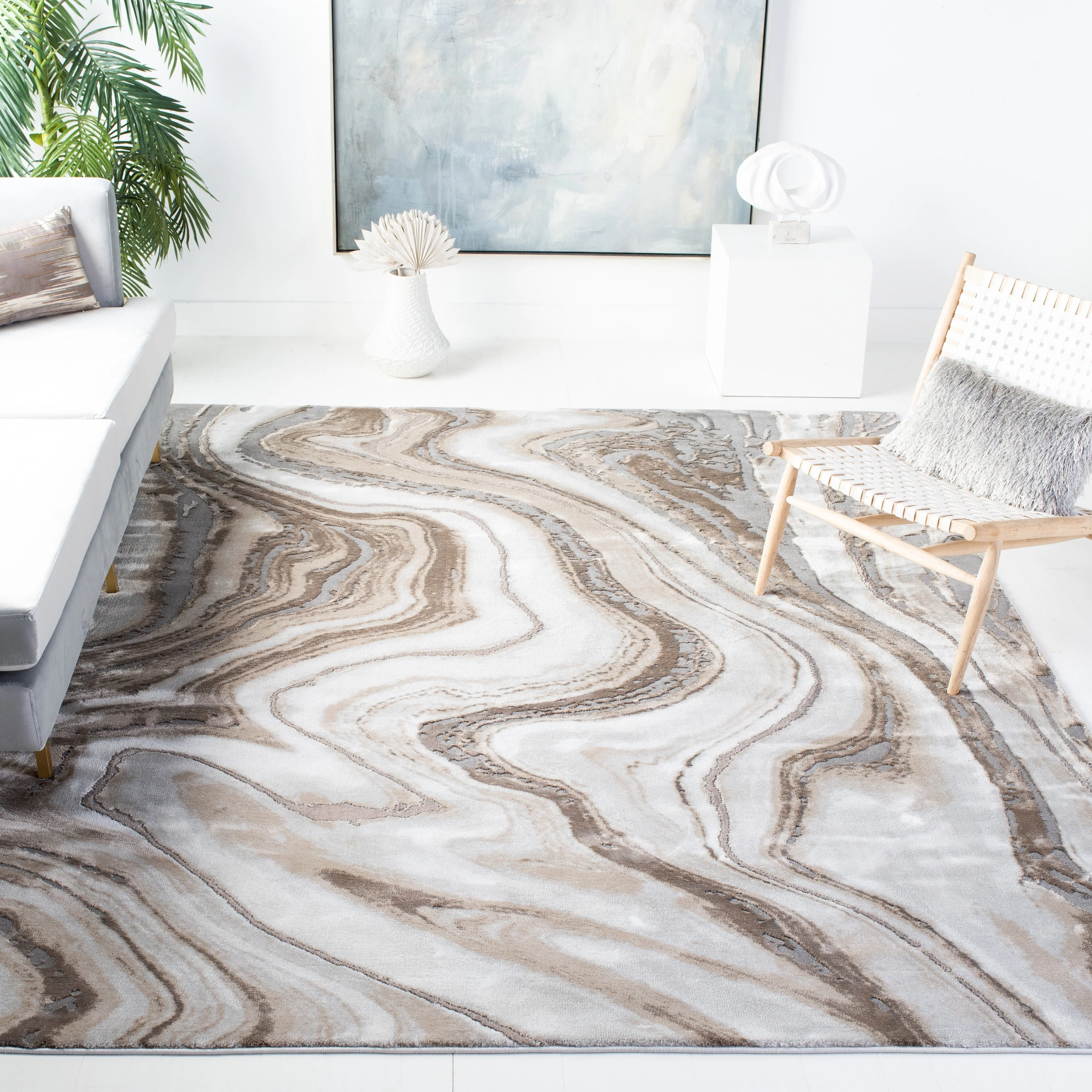 8' x 10' - Cream/Grey - Rectangle