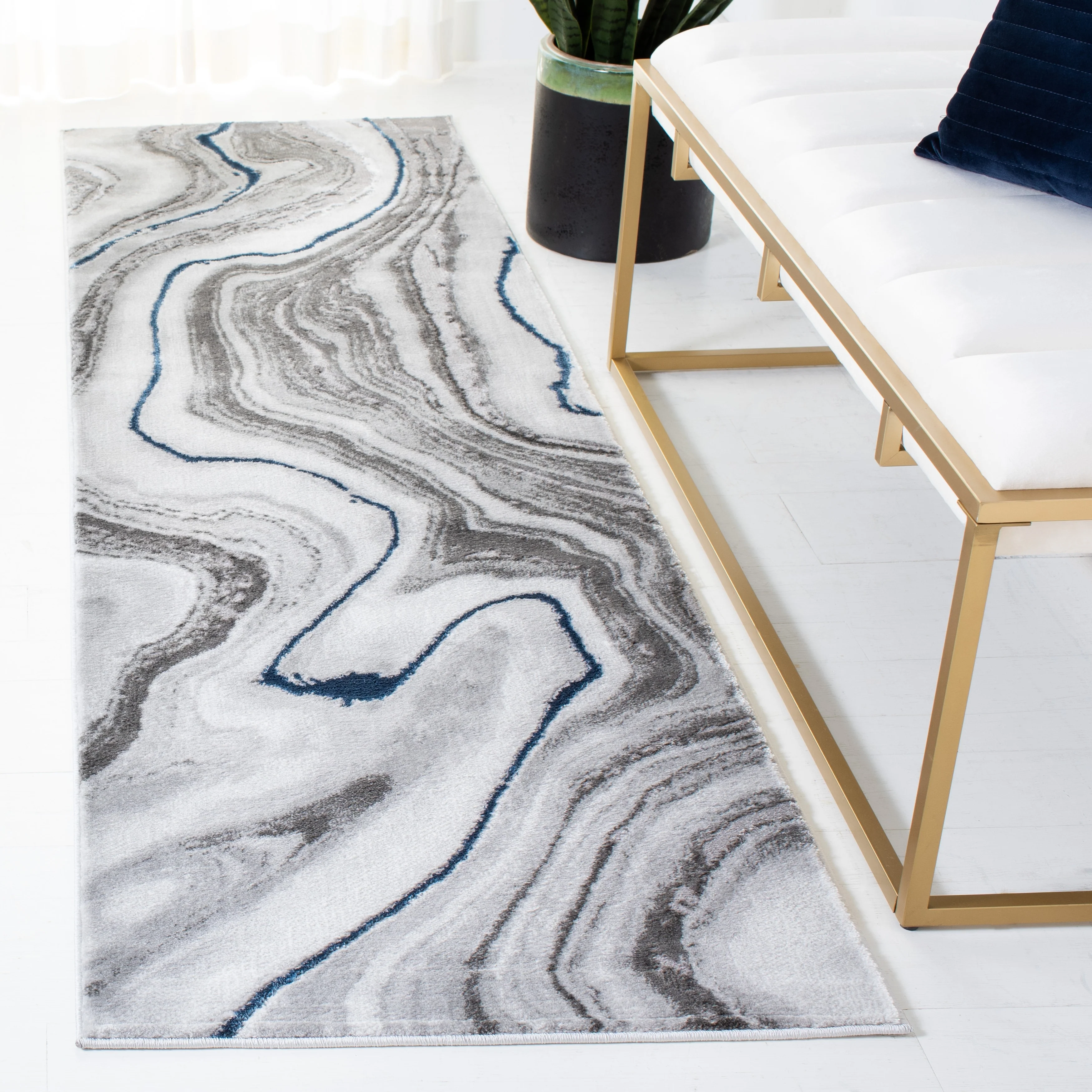 2' 3" x 11' - Dark Blue/Cream - Runner