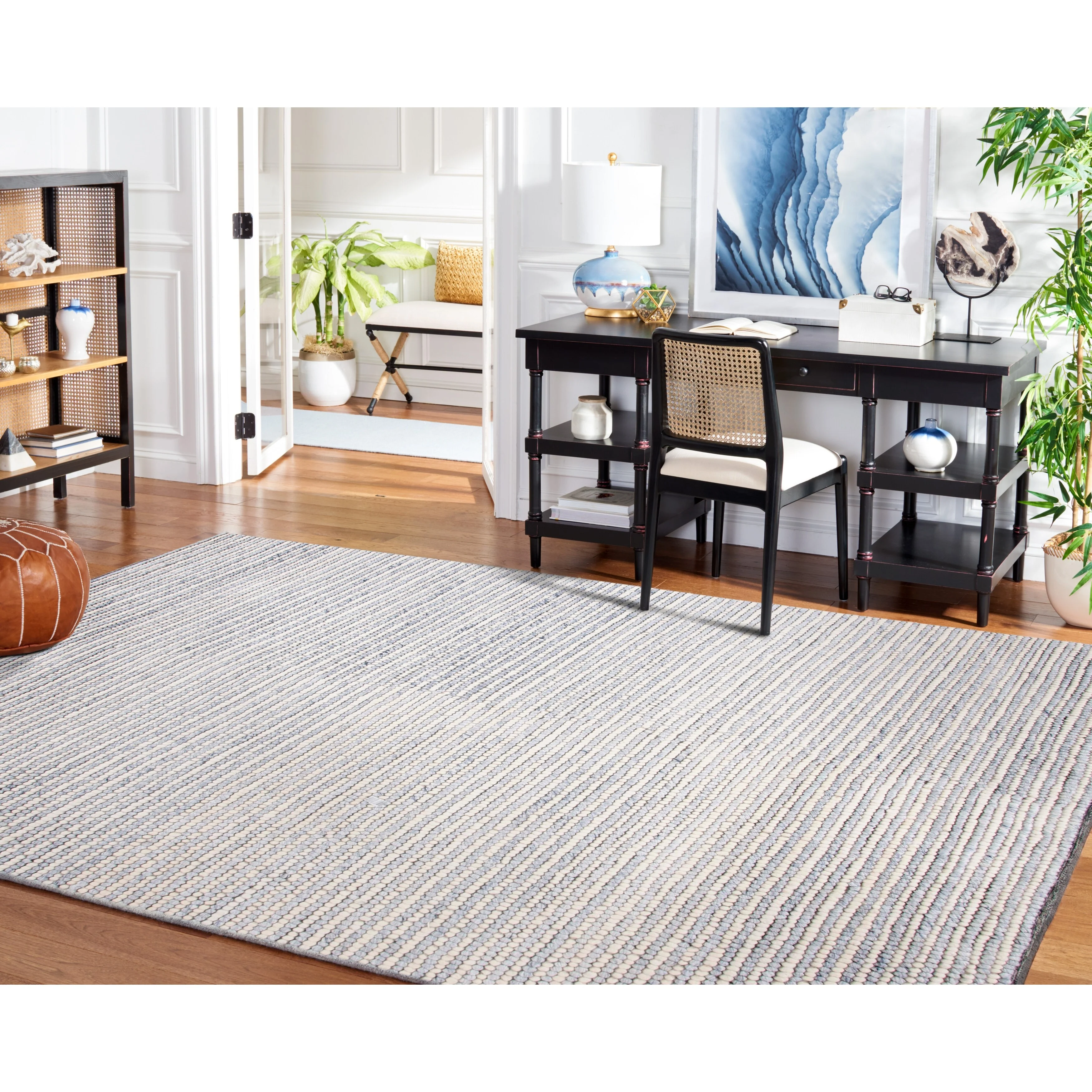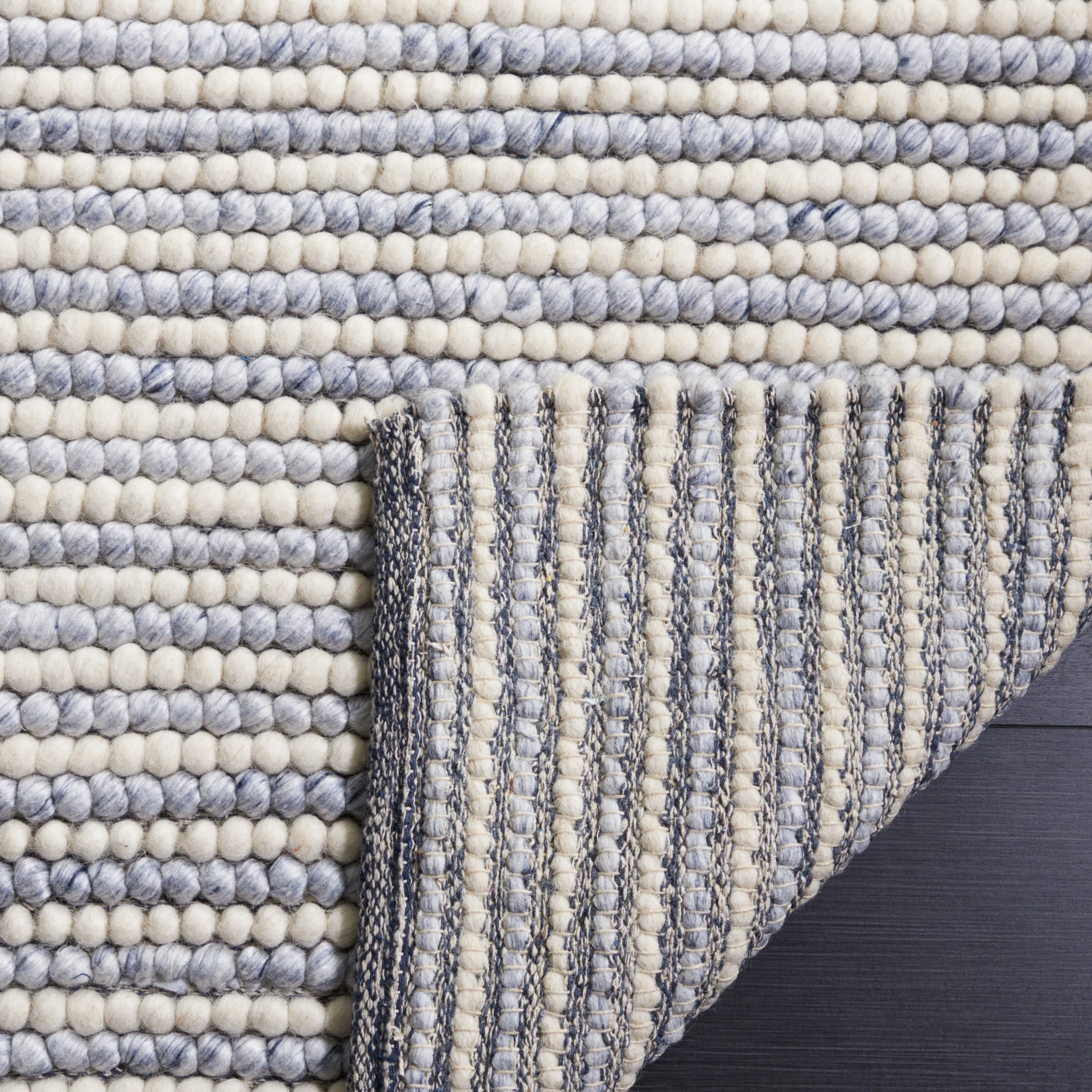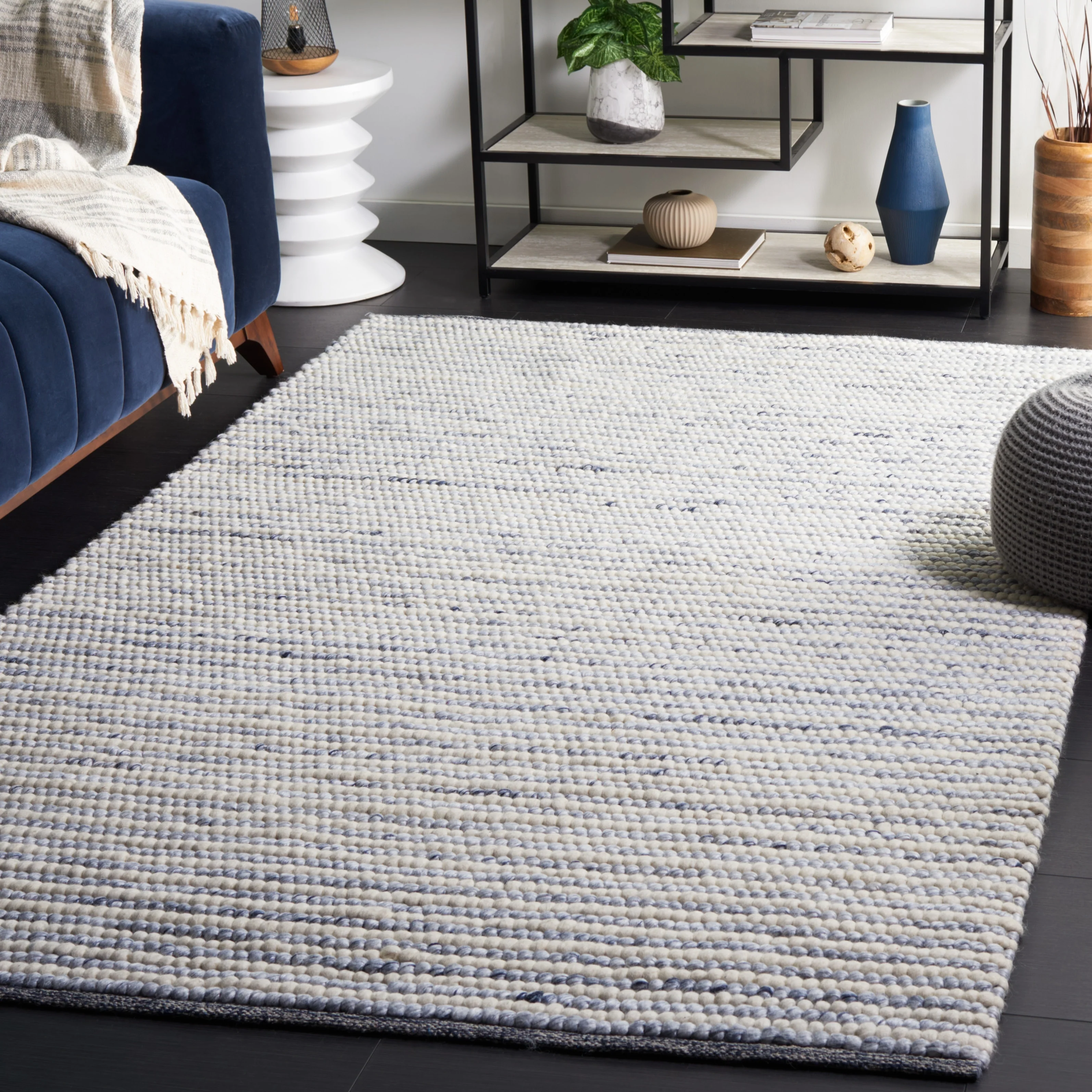8' 6" x 12' - Dark Blue/Cream - Rectangle