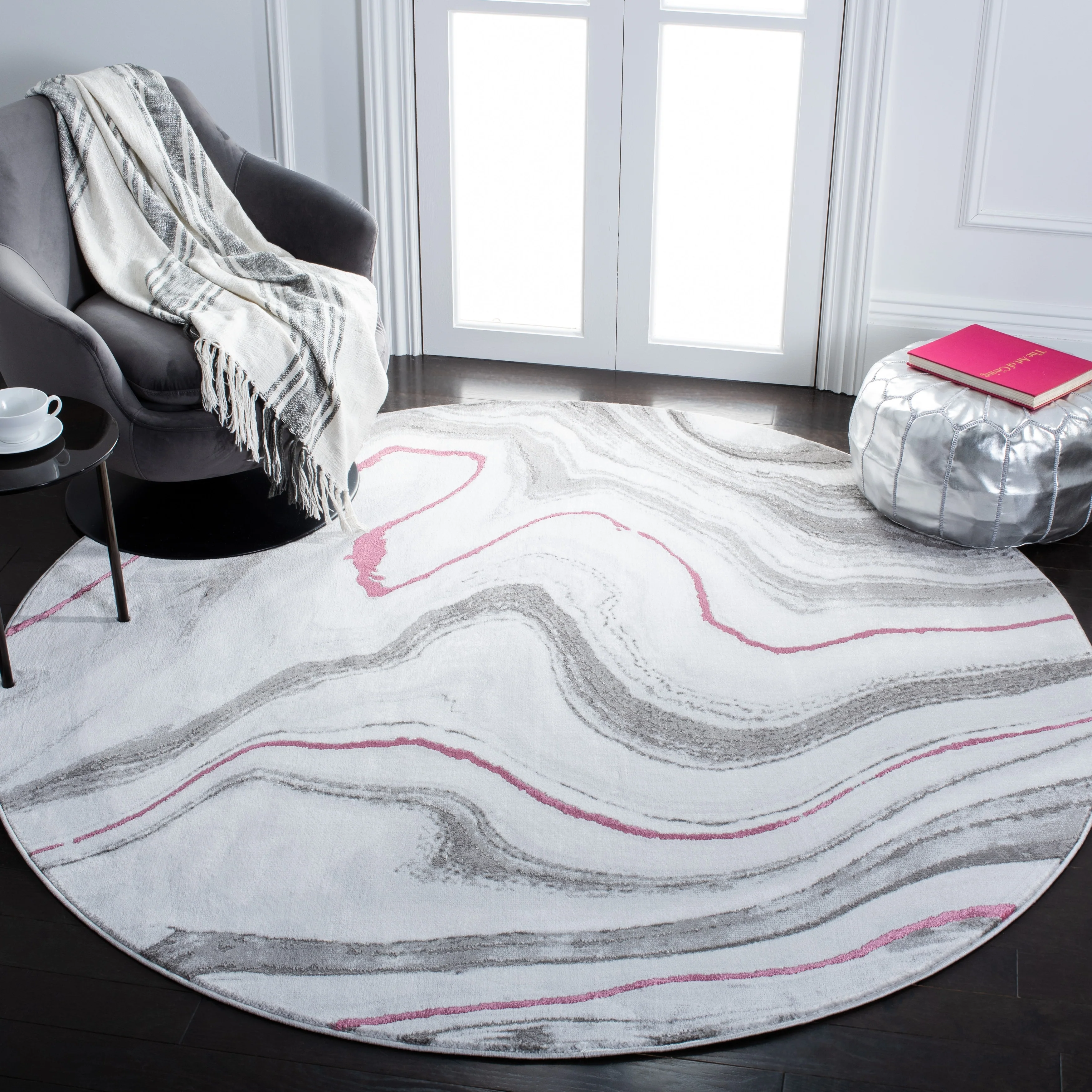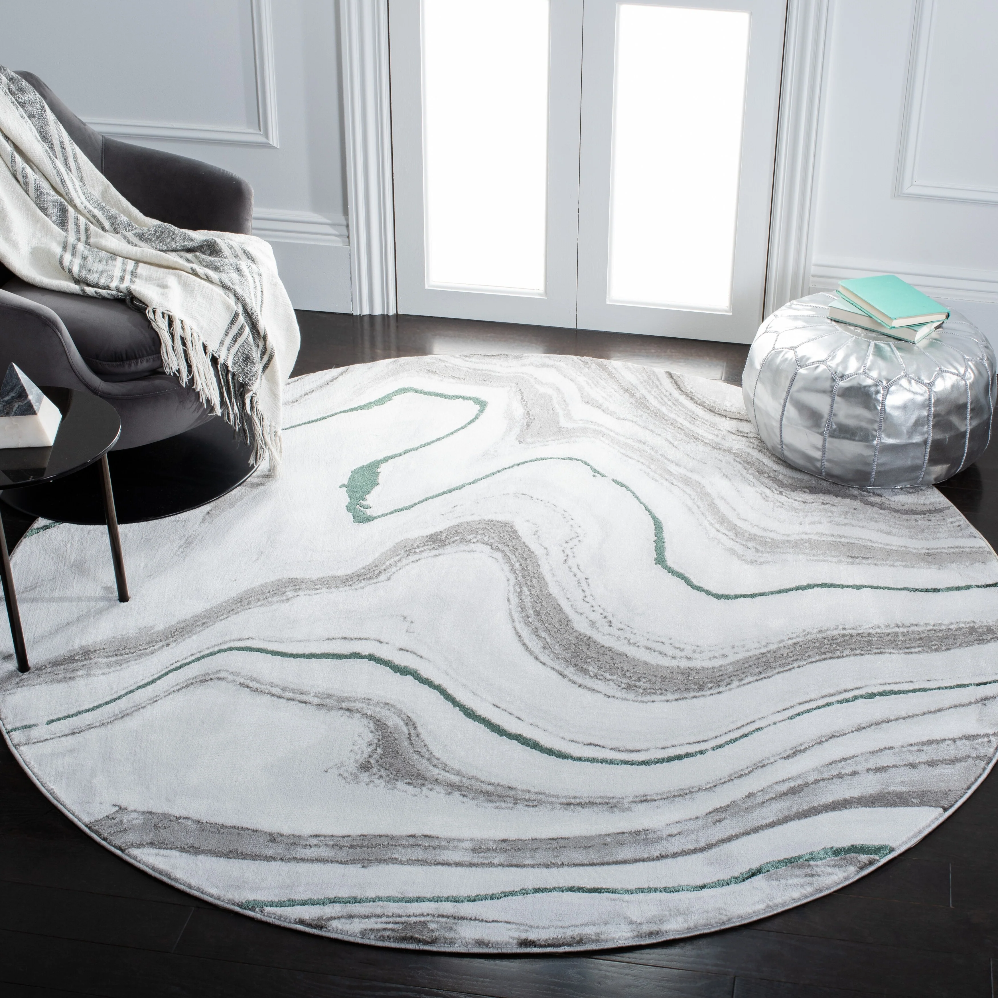6'7" x 6'7" Round - Cream/Grey - Round