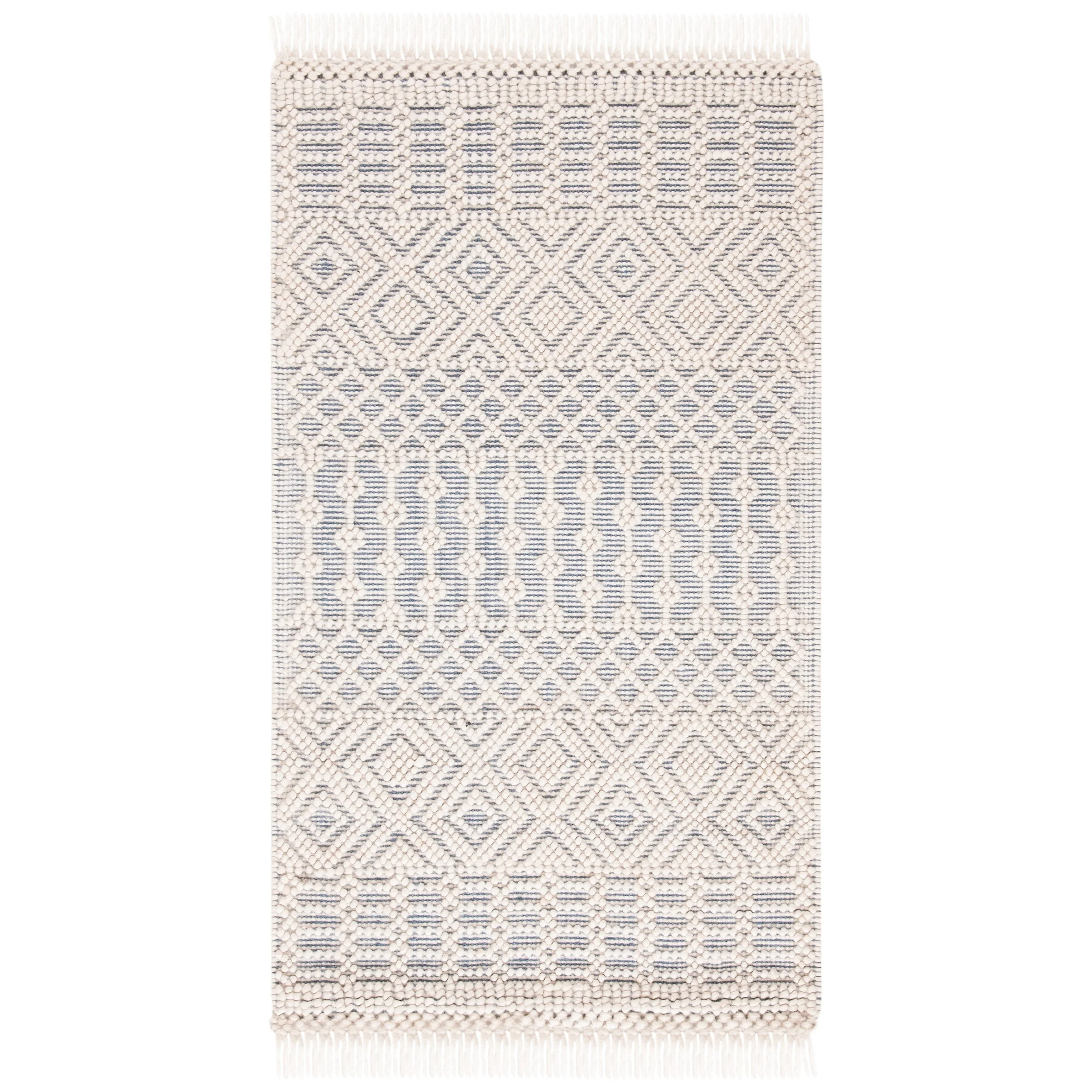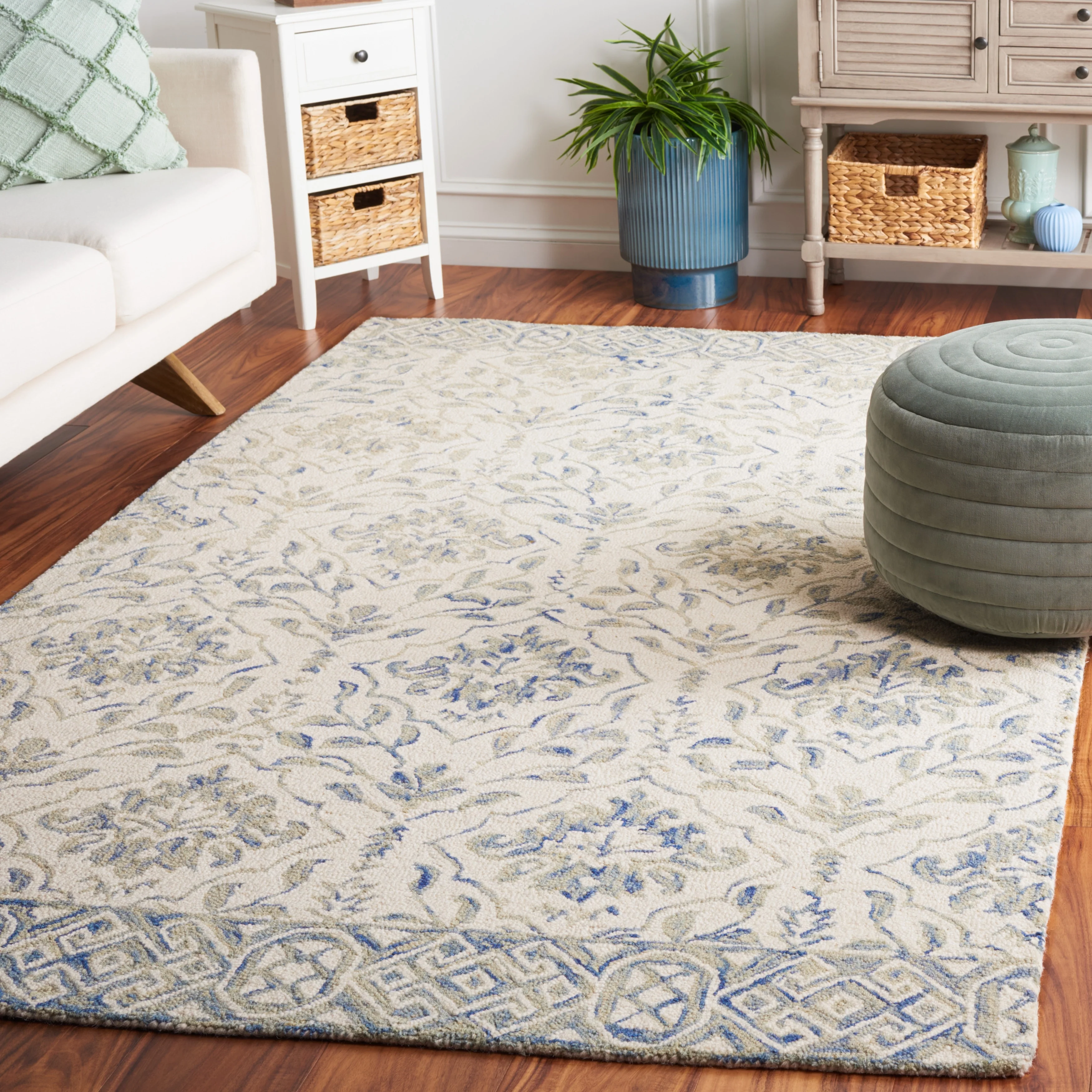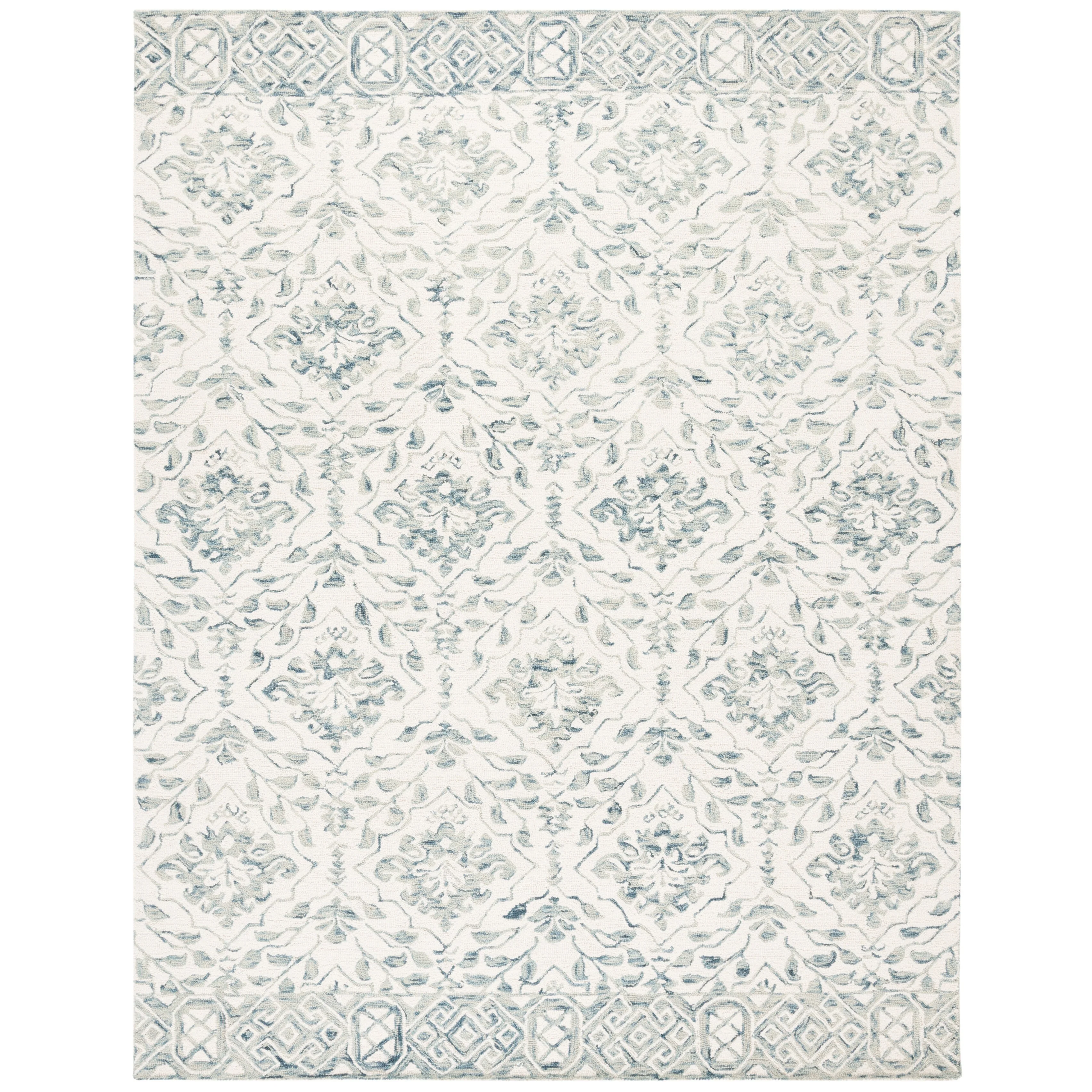8' 6" x 12' - Cream/Blue - Rectangle