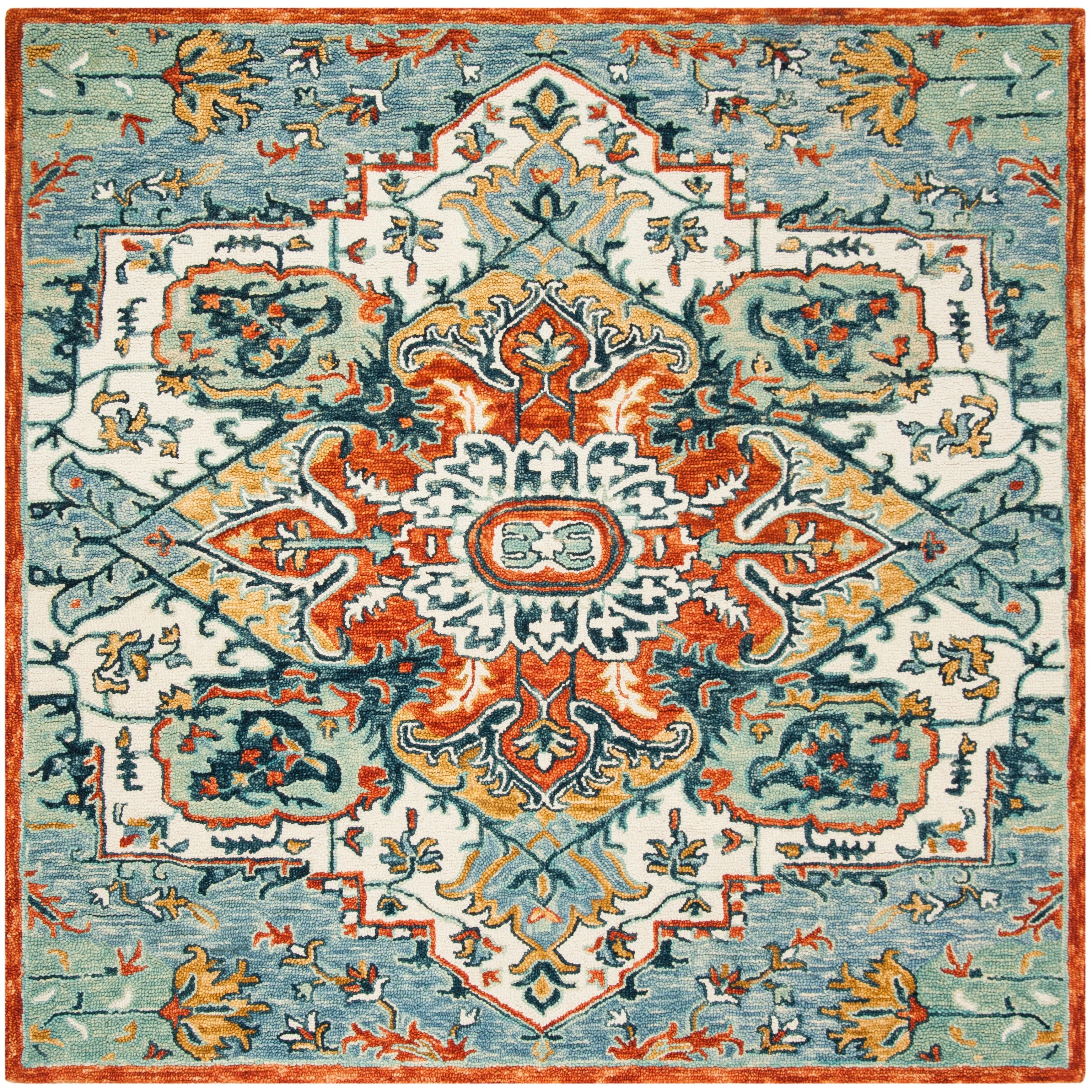 6'7" x 6'7" Square - Cream/Blue - Square