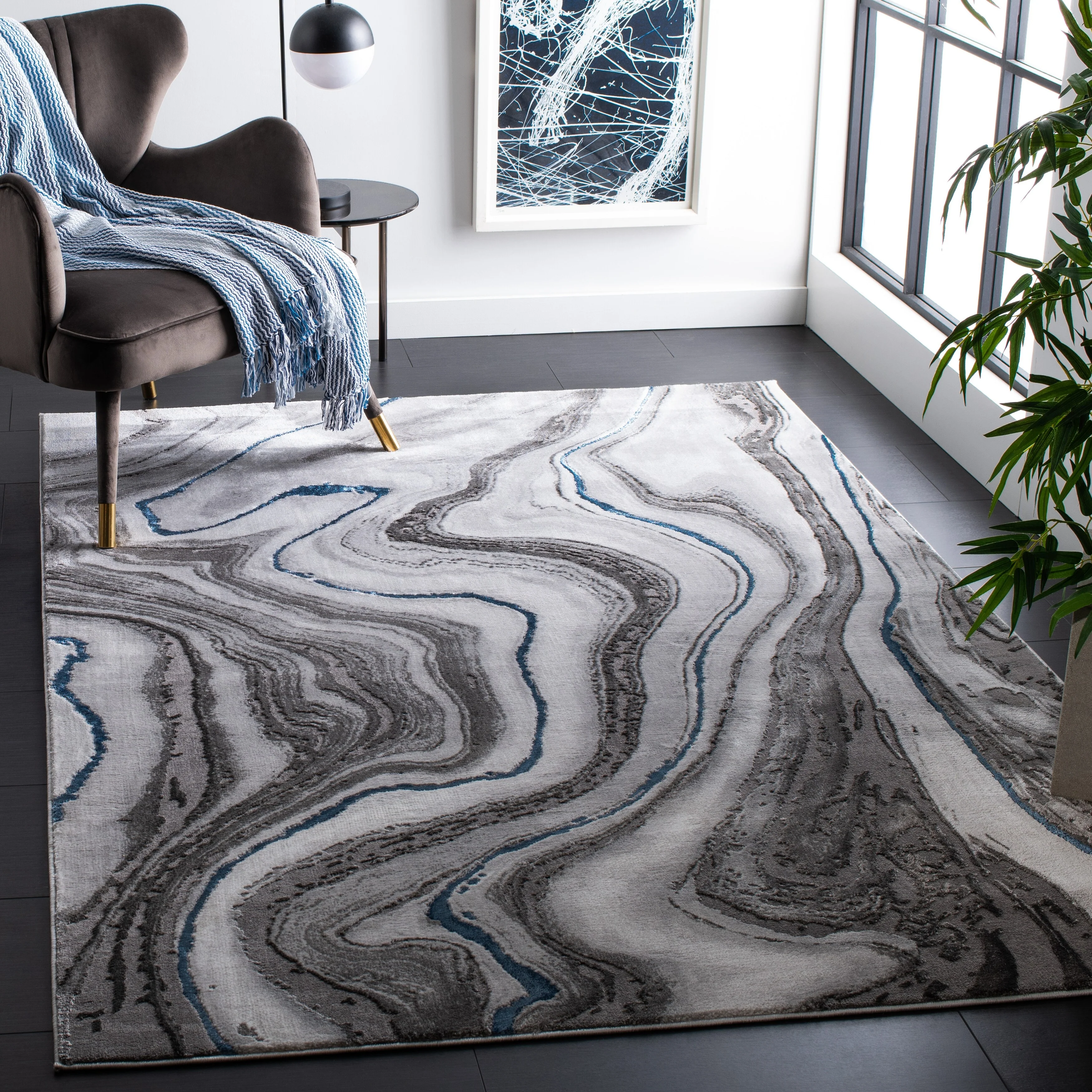3' 3" x 5' 3" - Light Blue/Blue - Rectangle