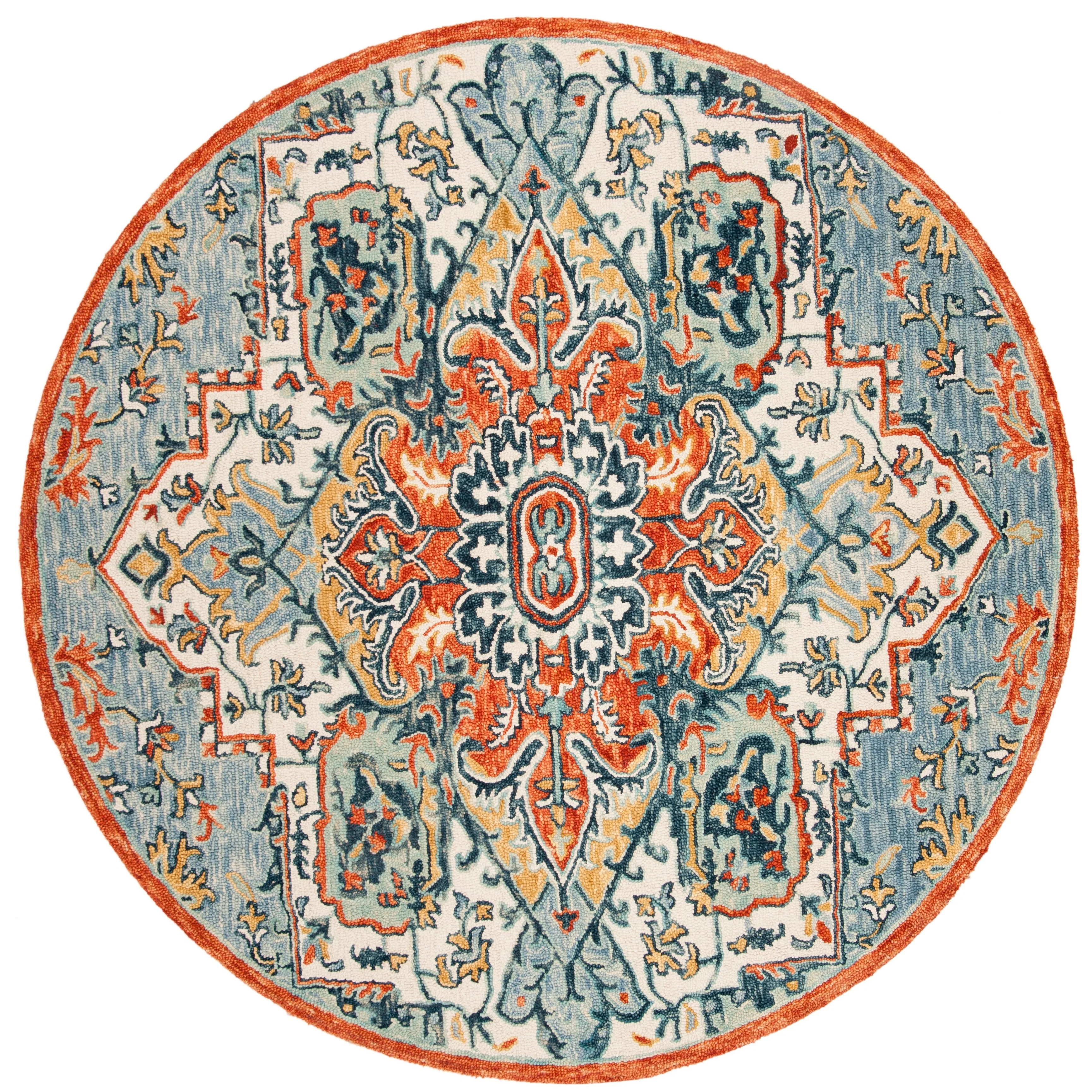 4' Round - Cream/Blue - Round