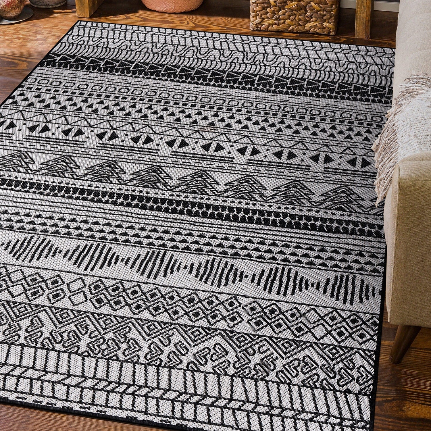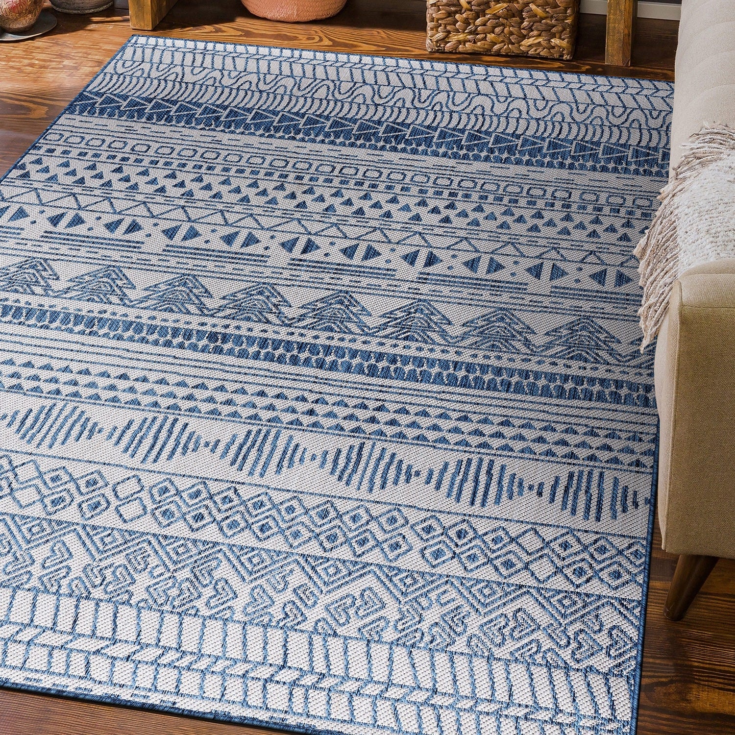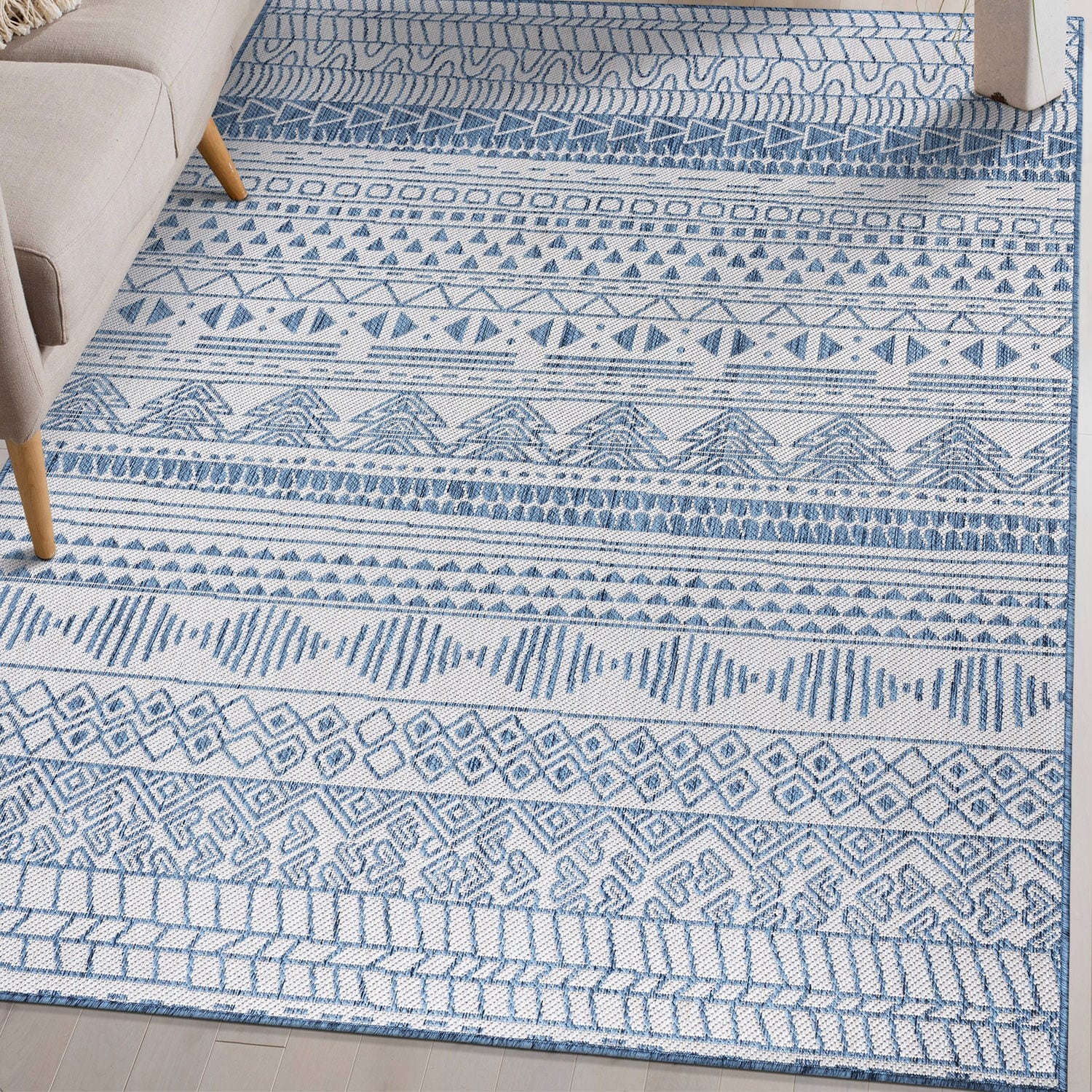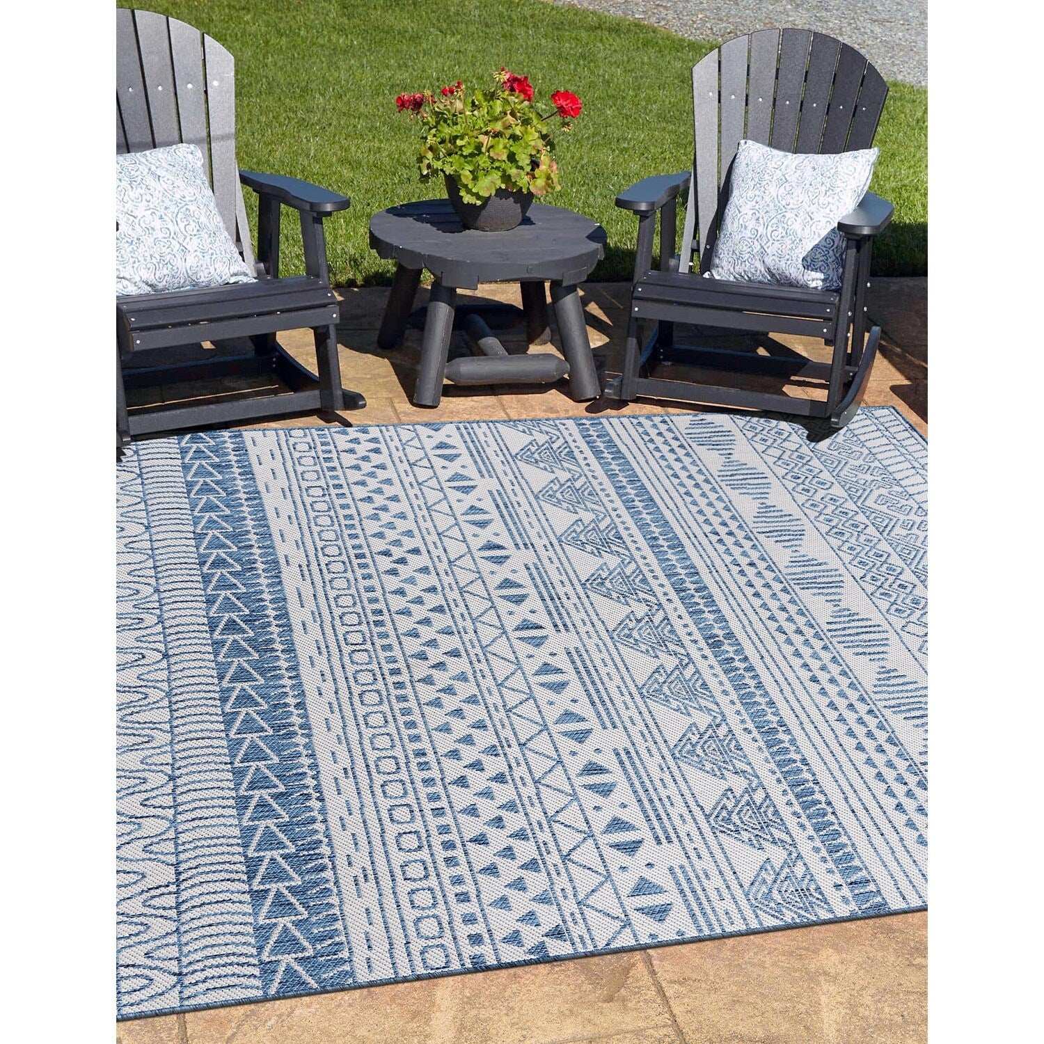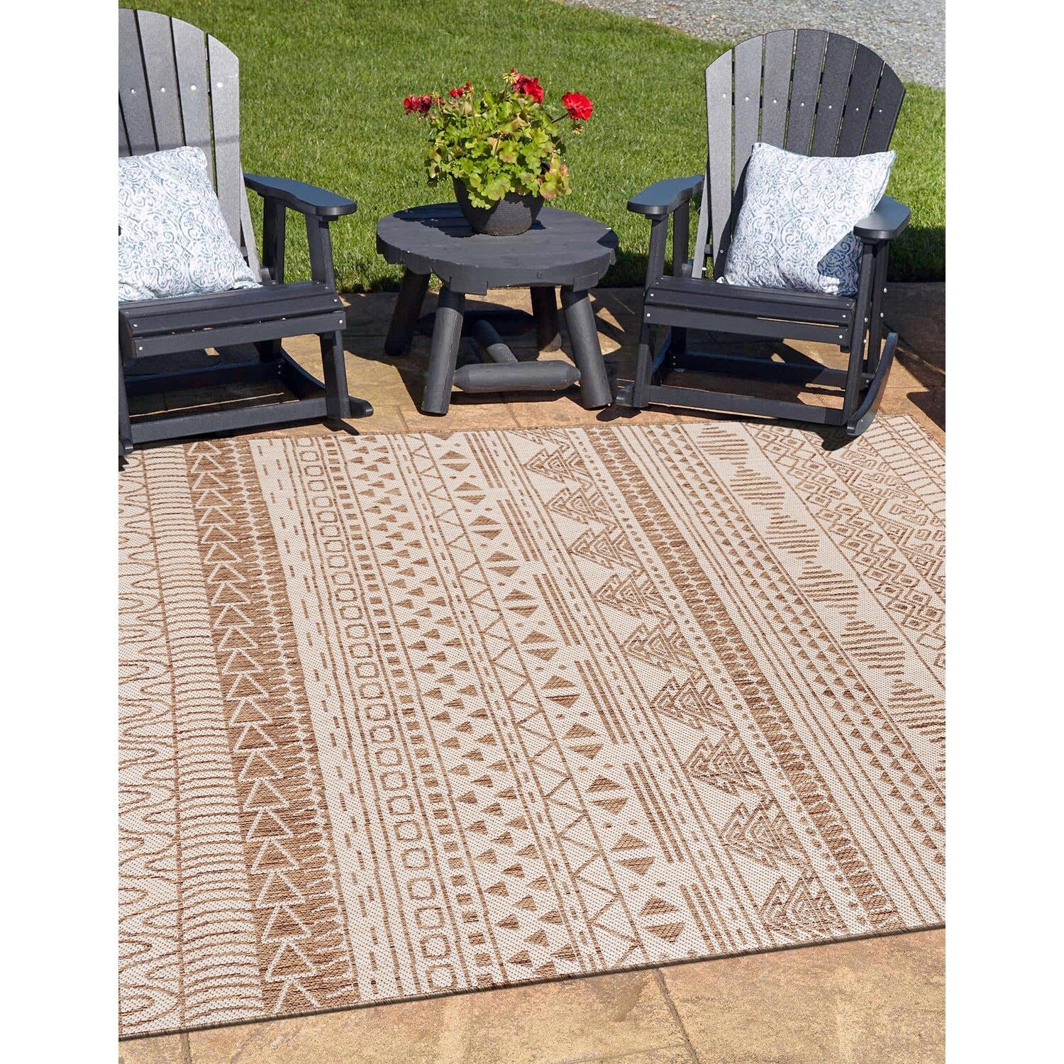 World Rug Gallery Contemporary Geometric Bohemian Textured Flat Weave Indoor/Outdoor Area Rug