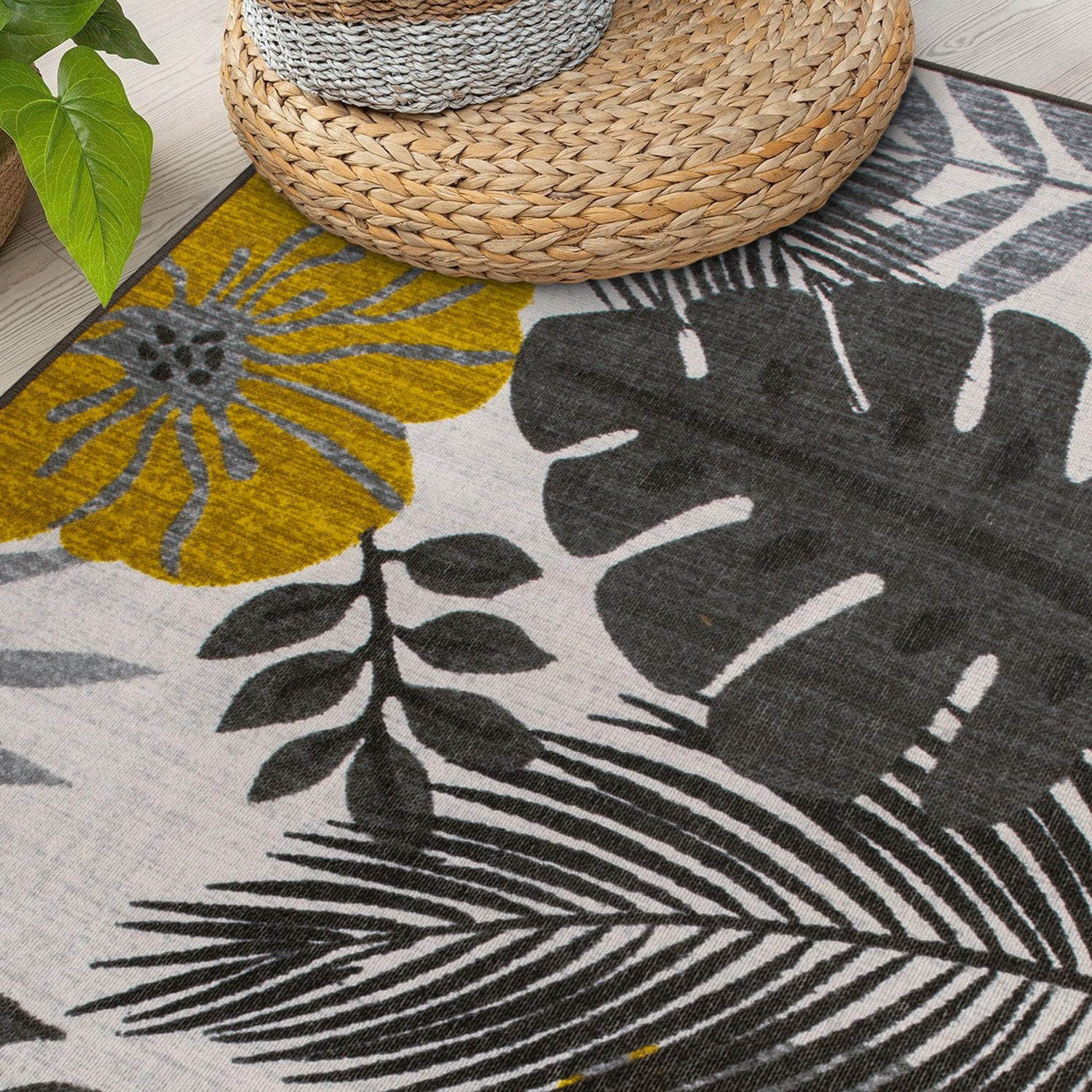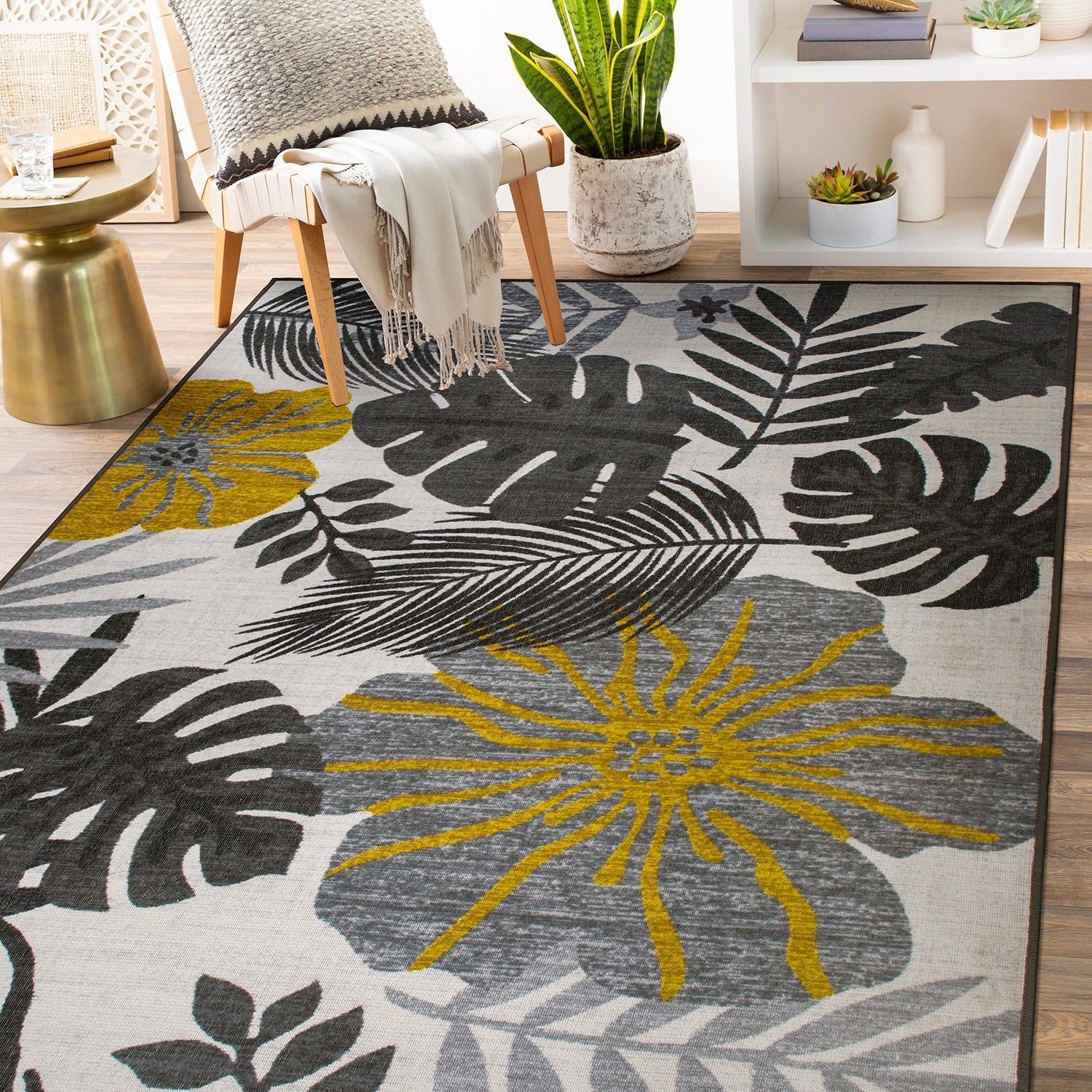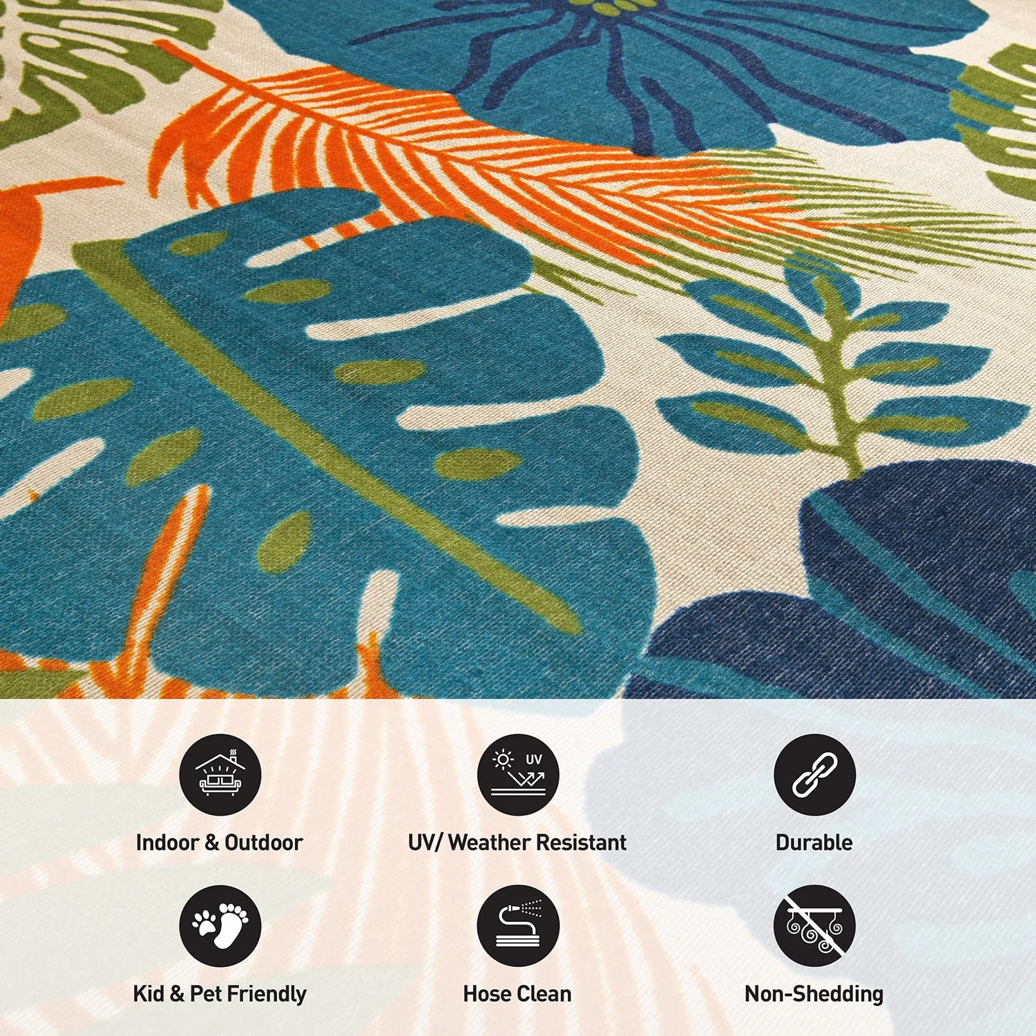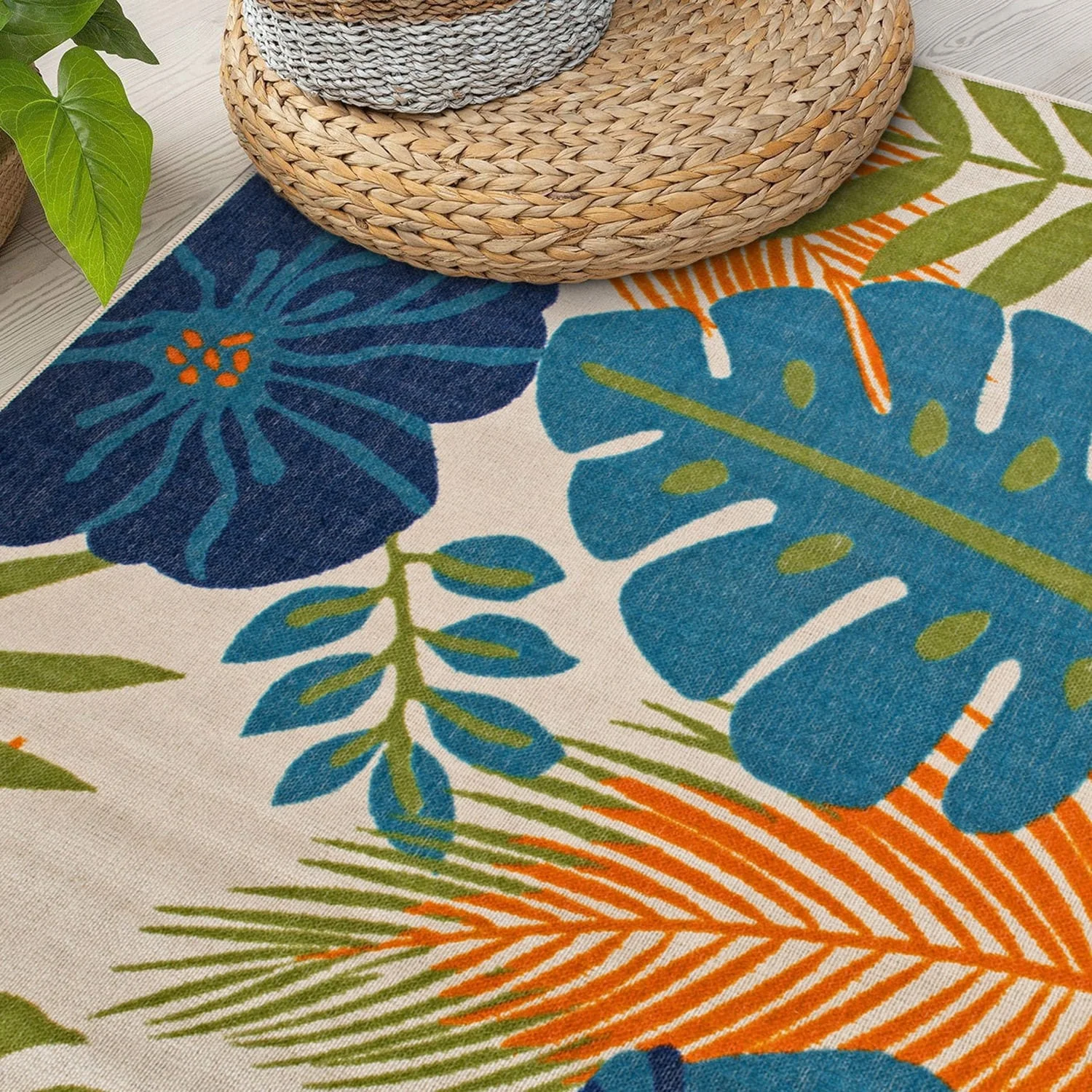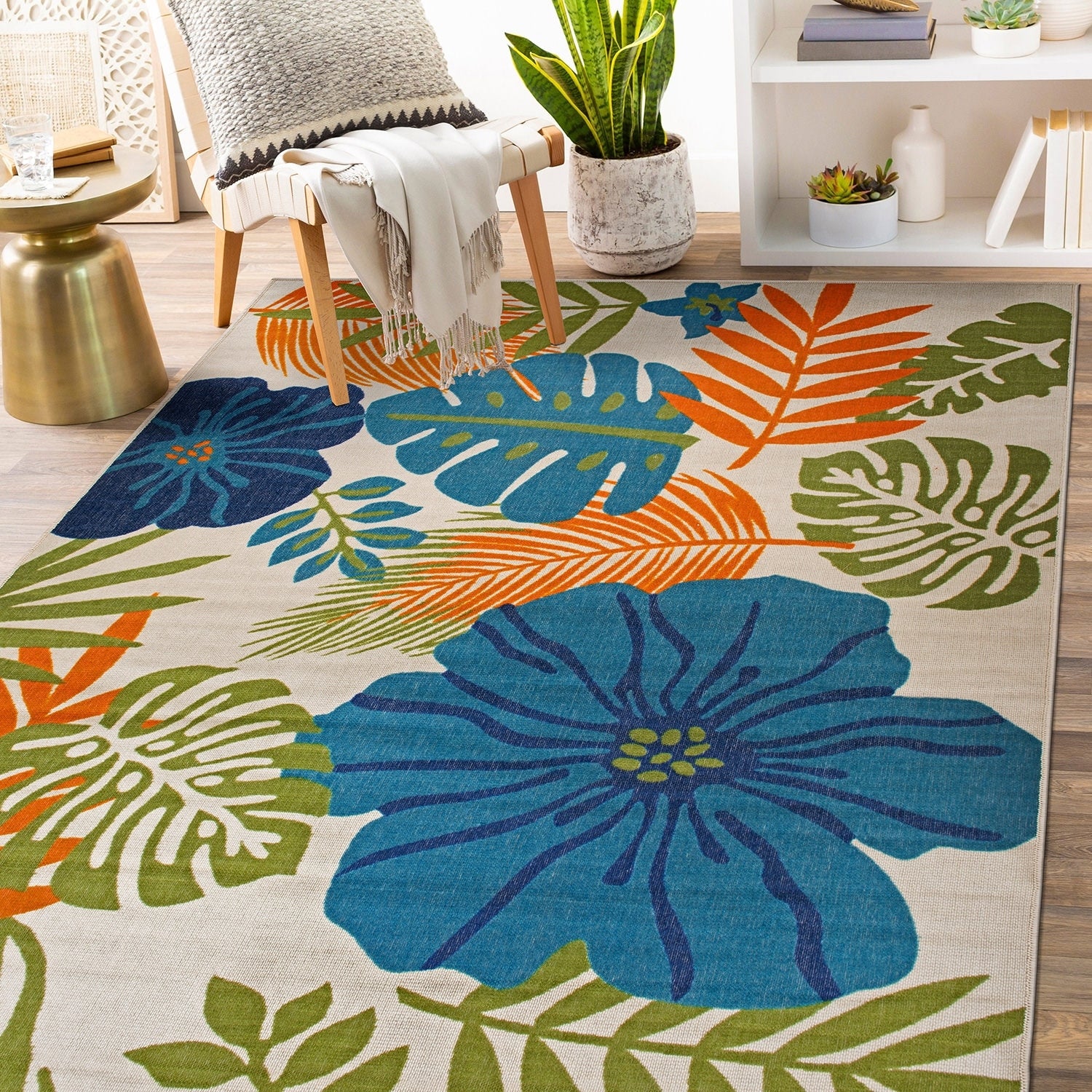 Tropical Floral Leaves Indoor/Outdoor Area Rug