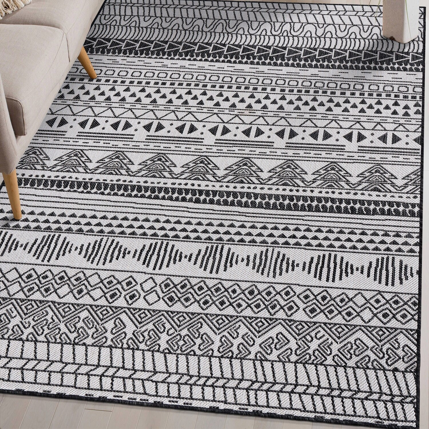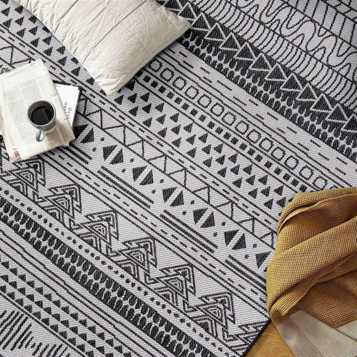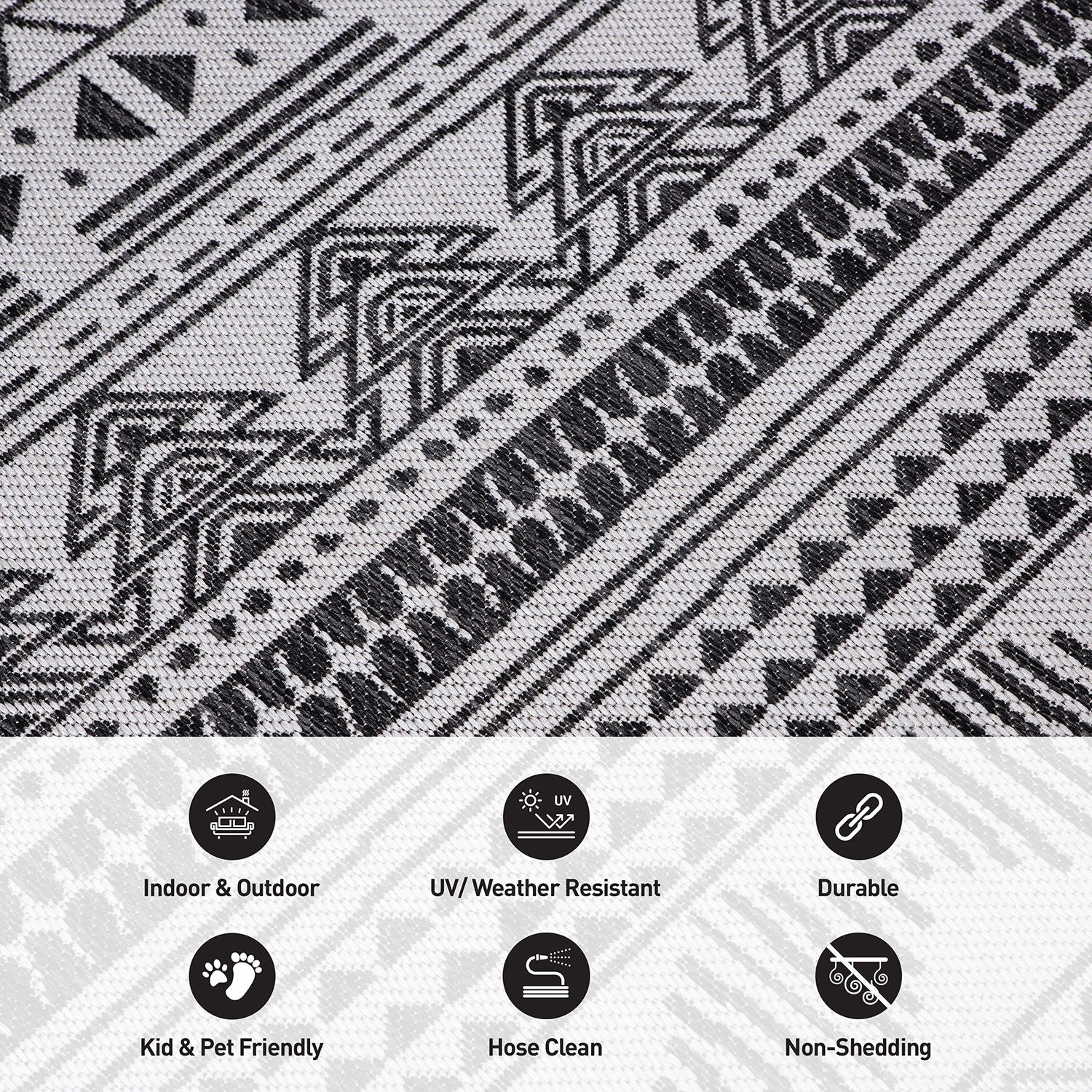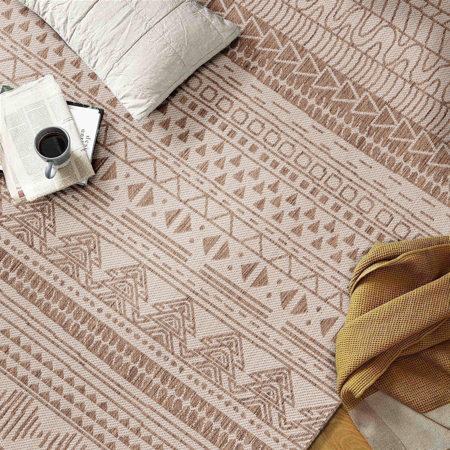 Indoor & Outdoor Rug with Mottled Boho Pattern
