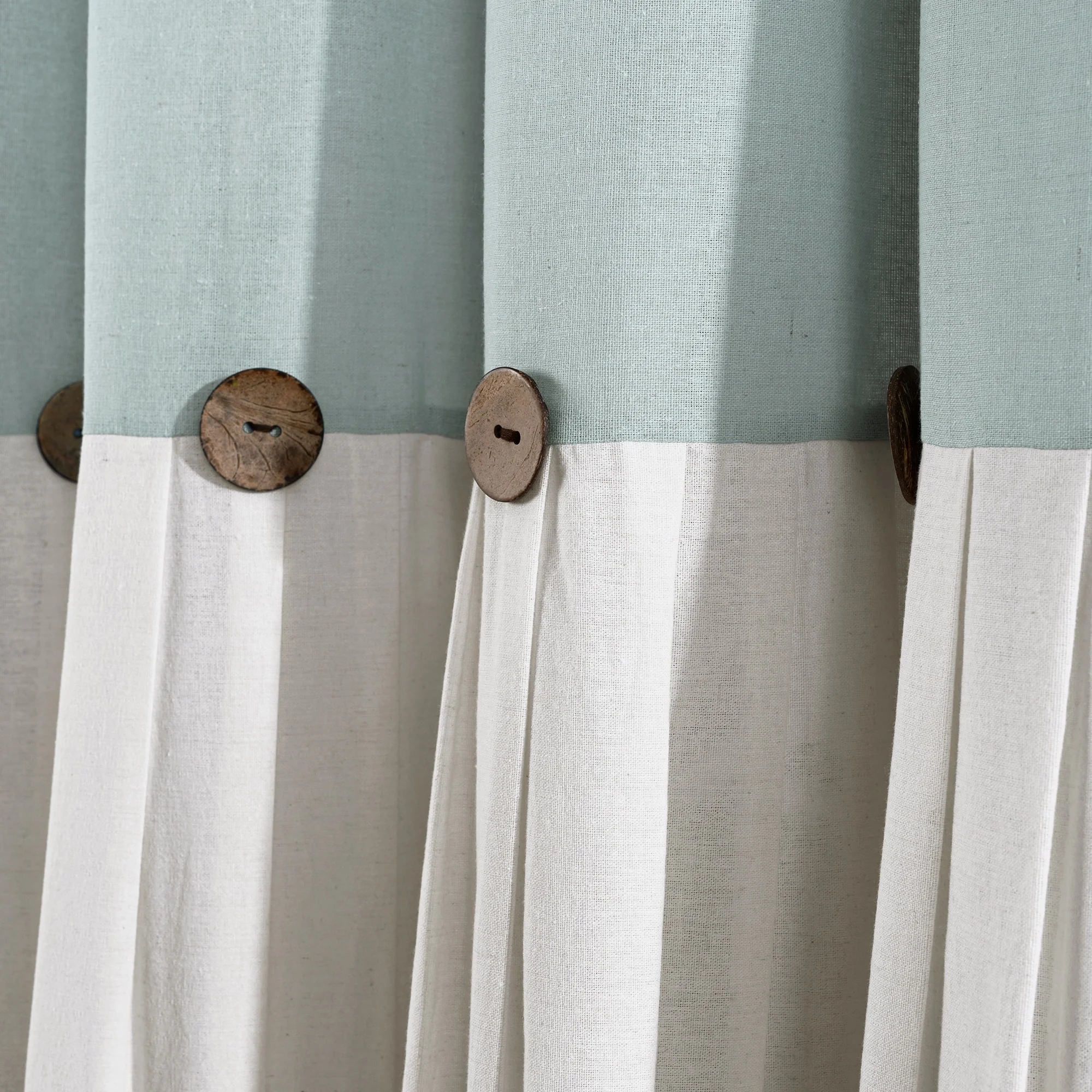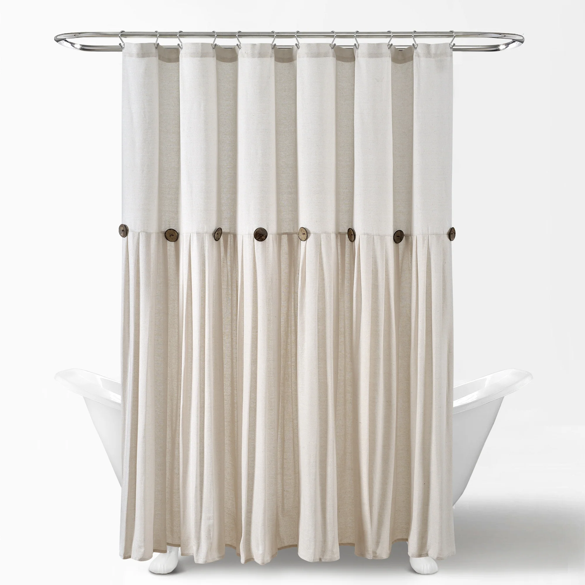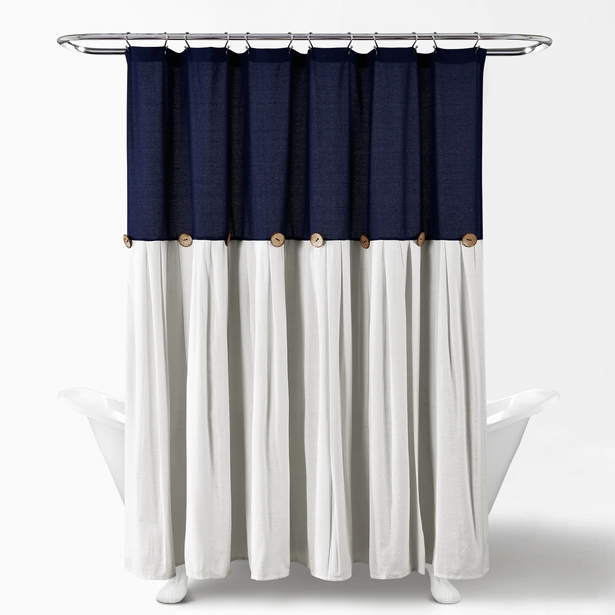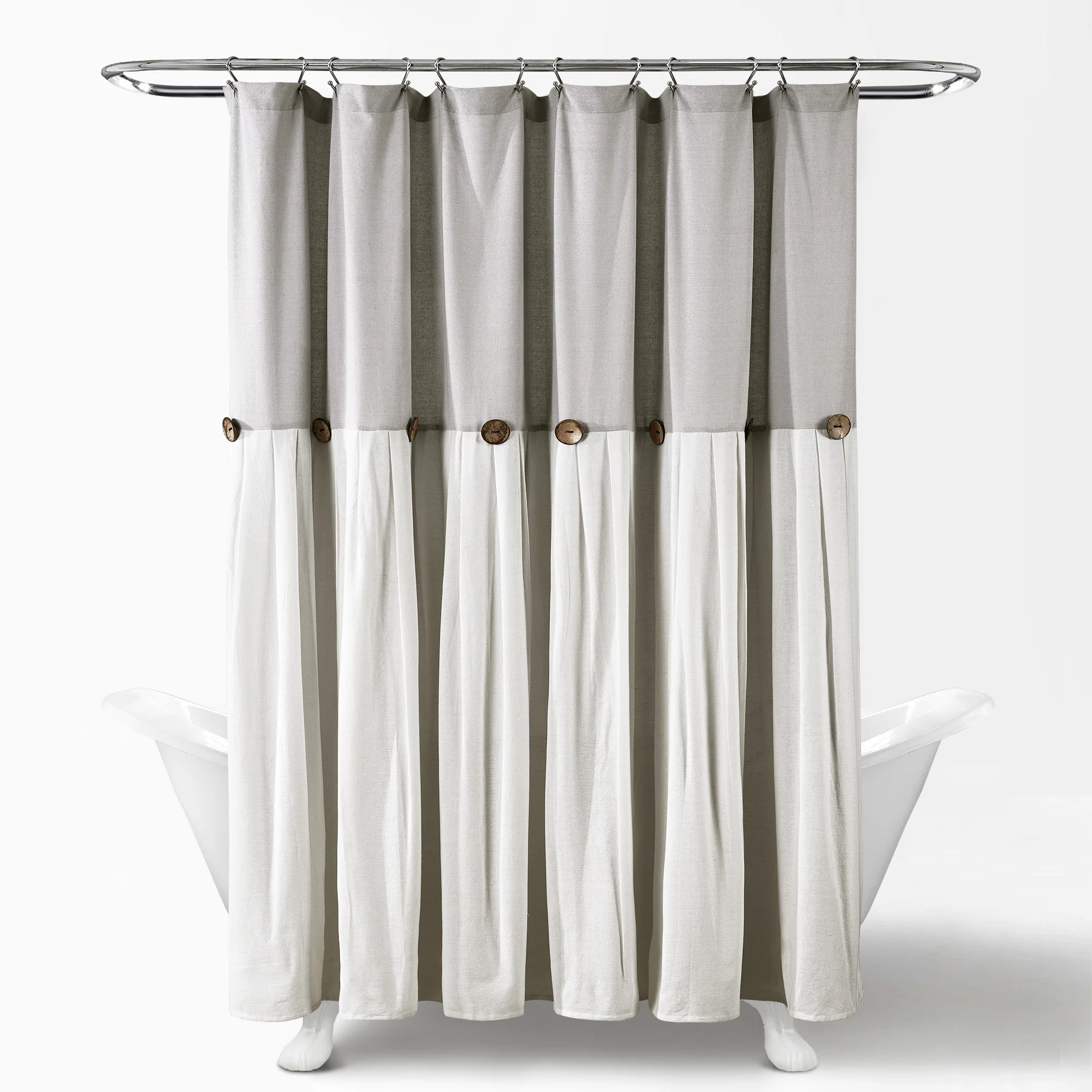 Add a touch of casual elegance to your bathroom with this Lush Decor Two-tone Linen Button Shower Curtain. With its charming button embellishments and pleating, this shower curtain is perfect to brighten up your bathroom d��cor. Made of a high-quality cotton/polyester blend fabric, this curtain comes in various two-tone color options to best match your bathroom's color scheme. This shower curtain is machine washable and easy to maintain.