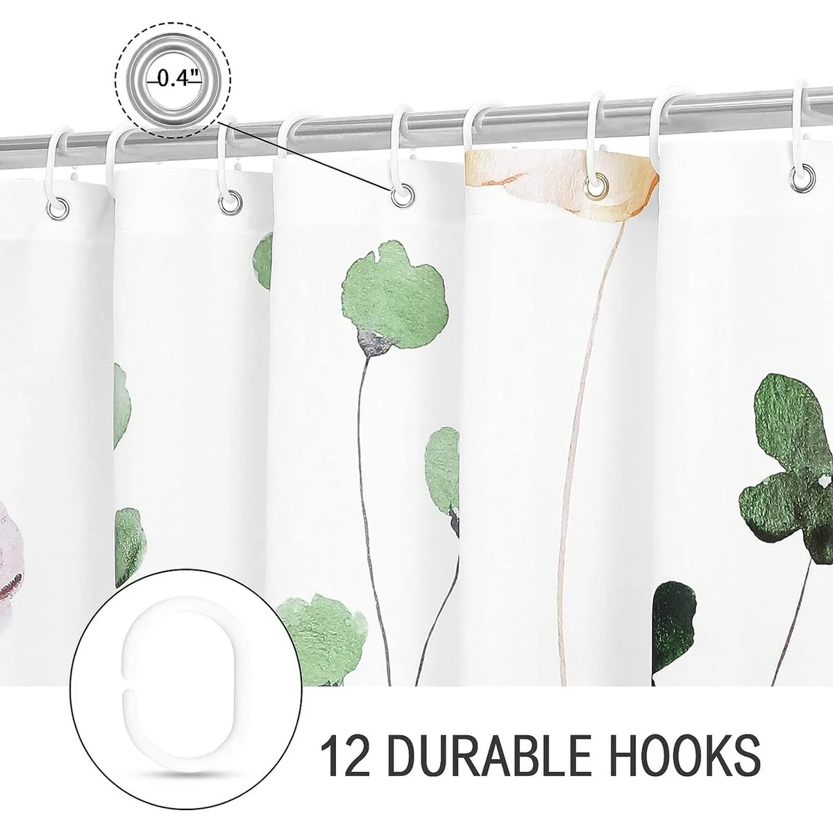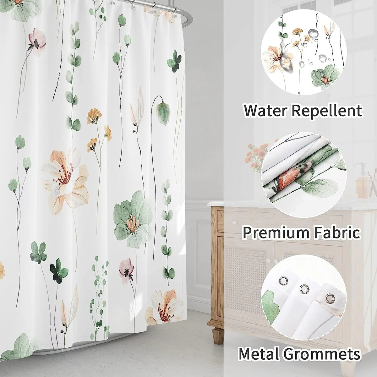 Watercolor Floral Shower Curtain,Beige Flower Shower Curtain