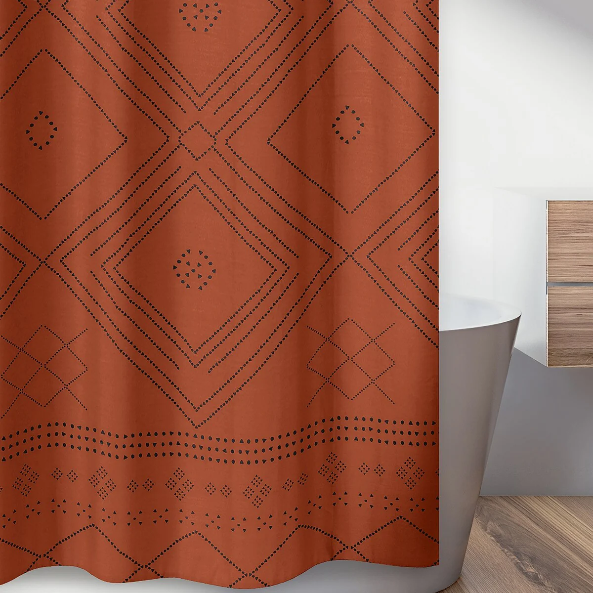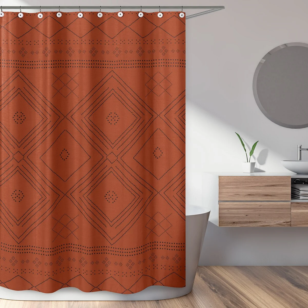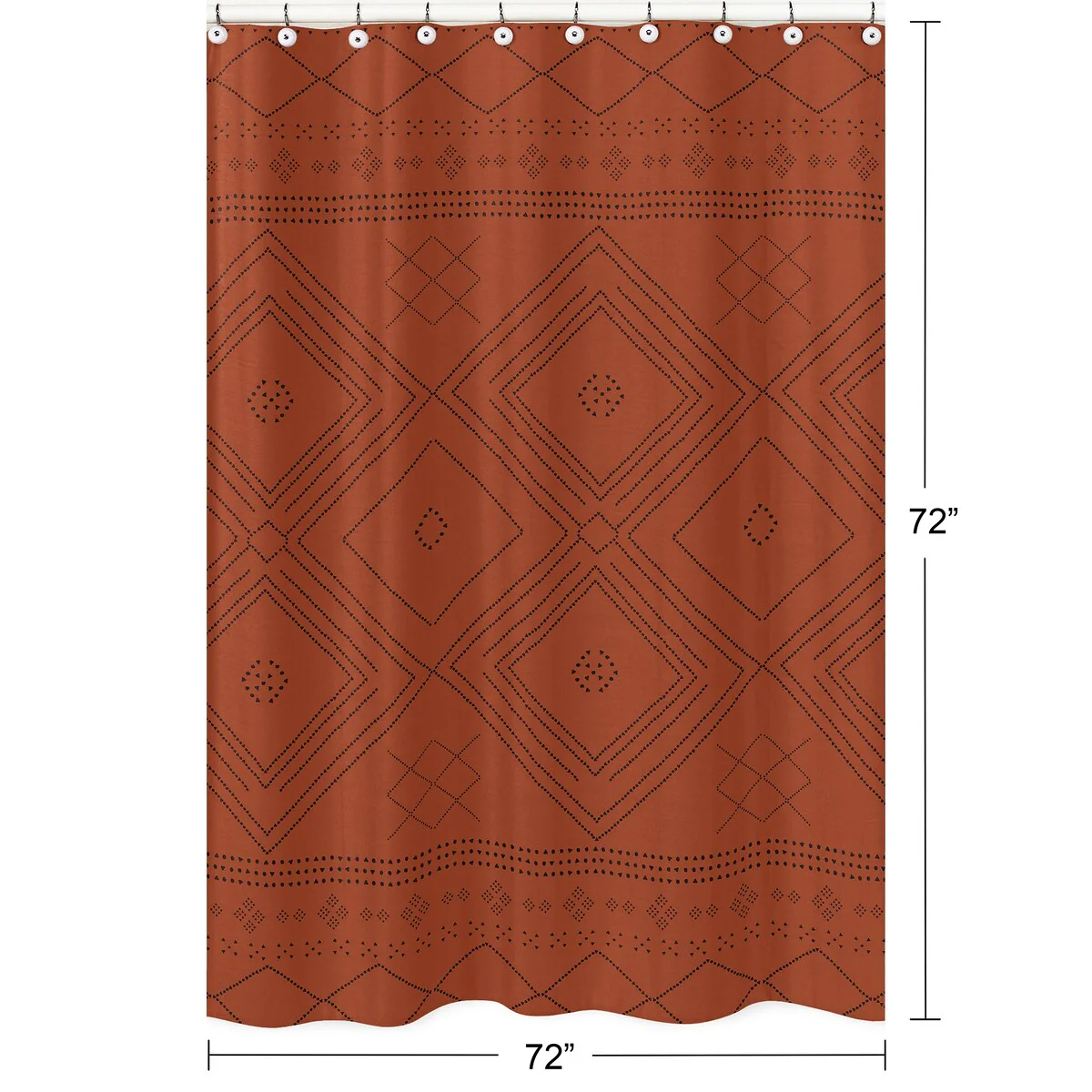 Sweet Jojo Designs Orange Boho Bohemian Tribal Bathroom Fabric Bath Shower Curtain Black Rustic Woodland Southwest Urban Retro