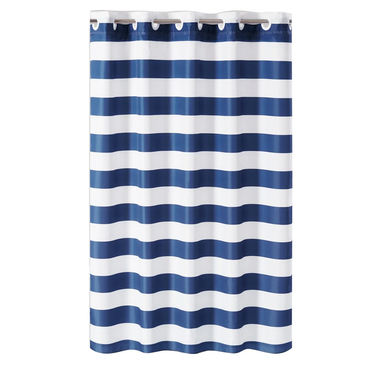 Hookless Cabana Stripe 3-in-1 Shower Curtain with Flex-on Rings & PEVA Liner