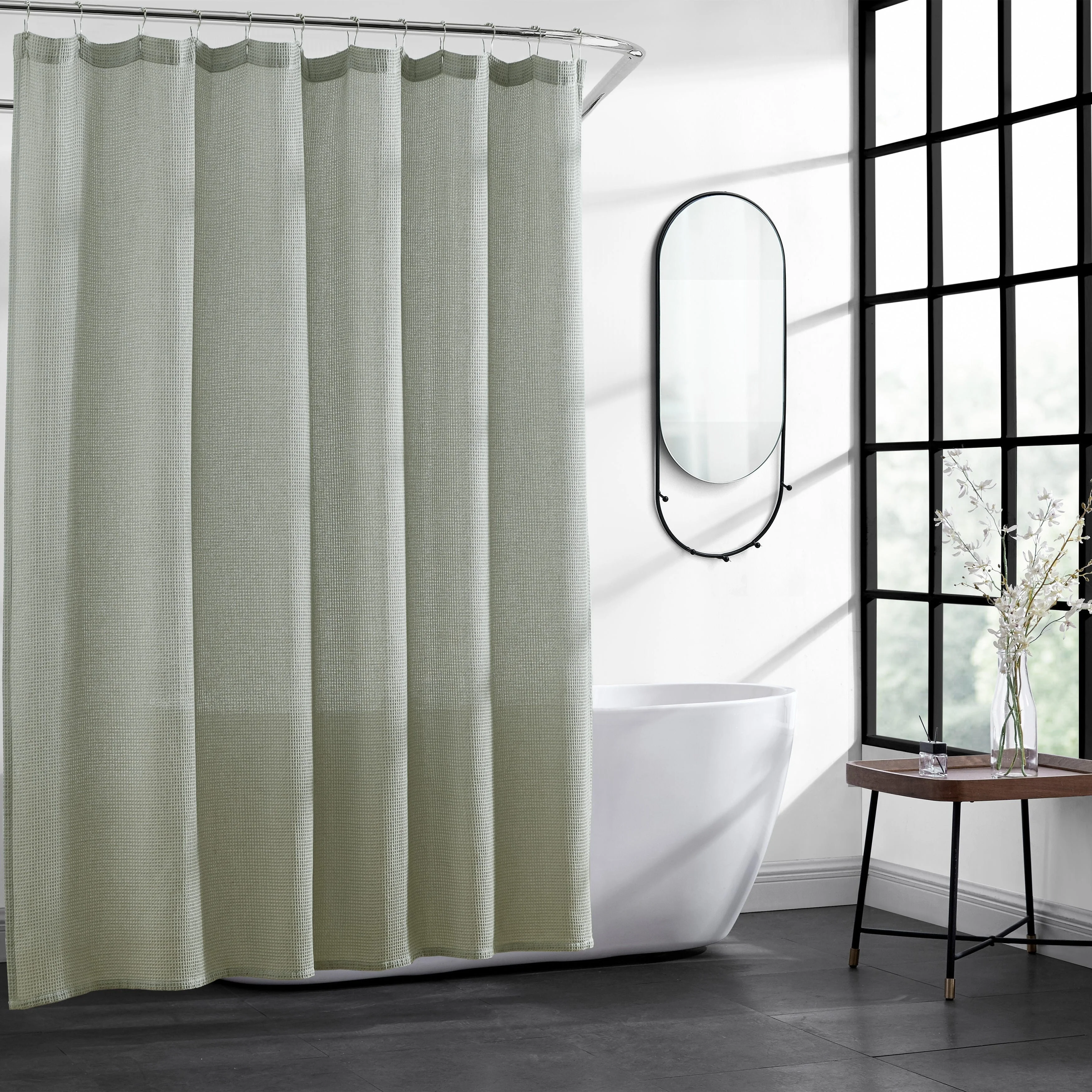 Kenneth Cole Solid Waffle Cotton Blend Shower Curtain