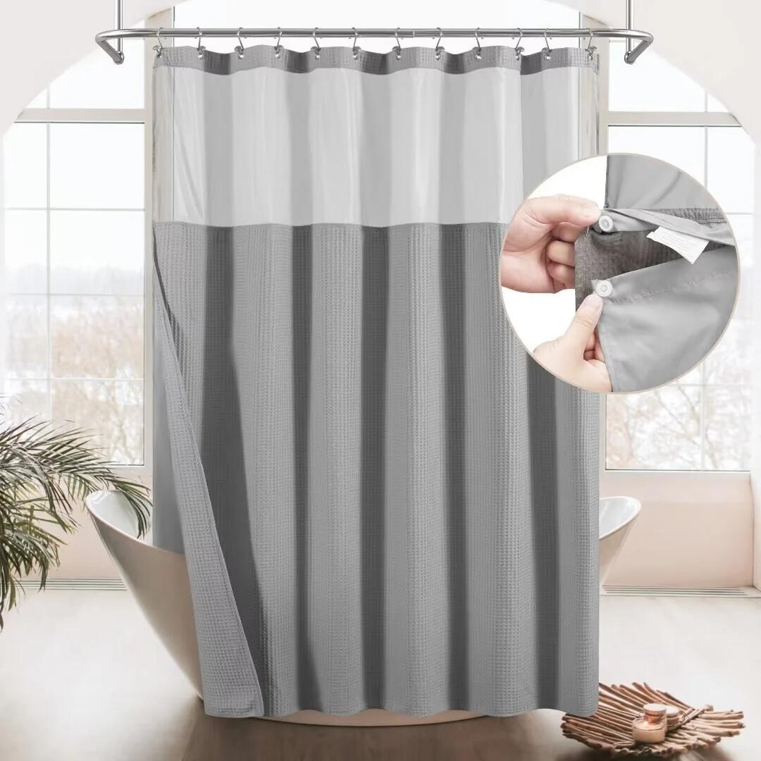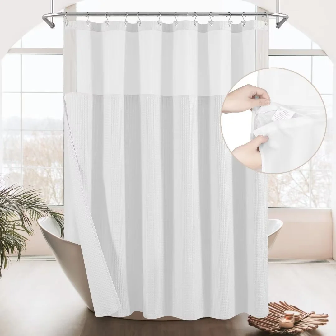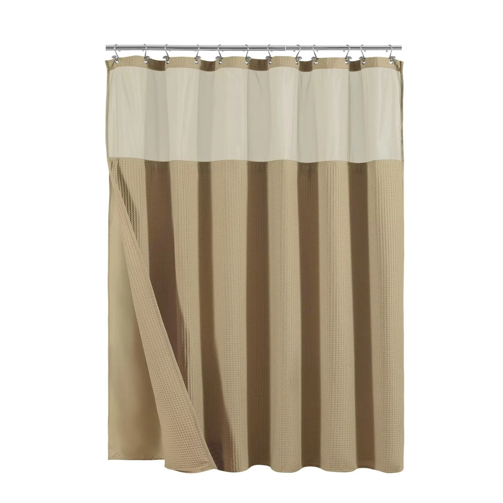 Cotton Blend Honeycomb Waffle Shower Curtain with Snap-in Liner
