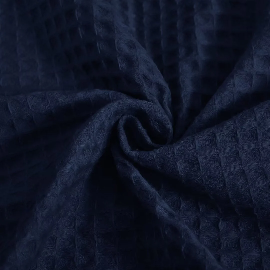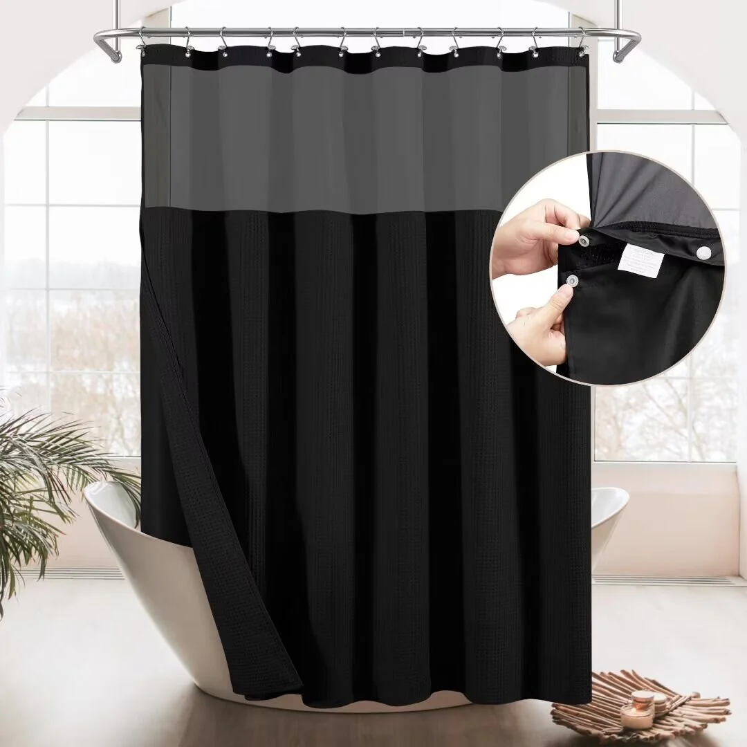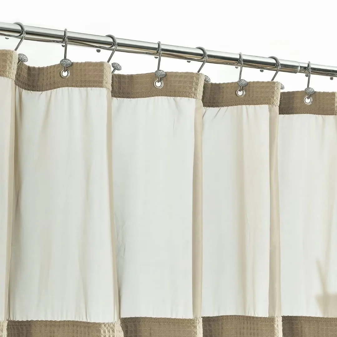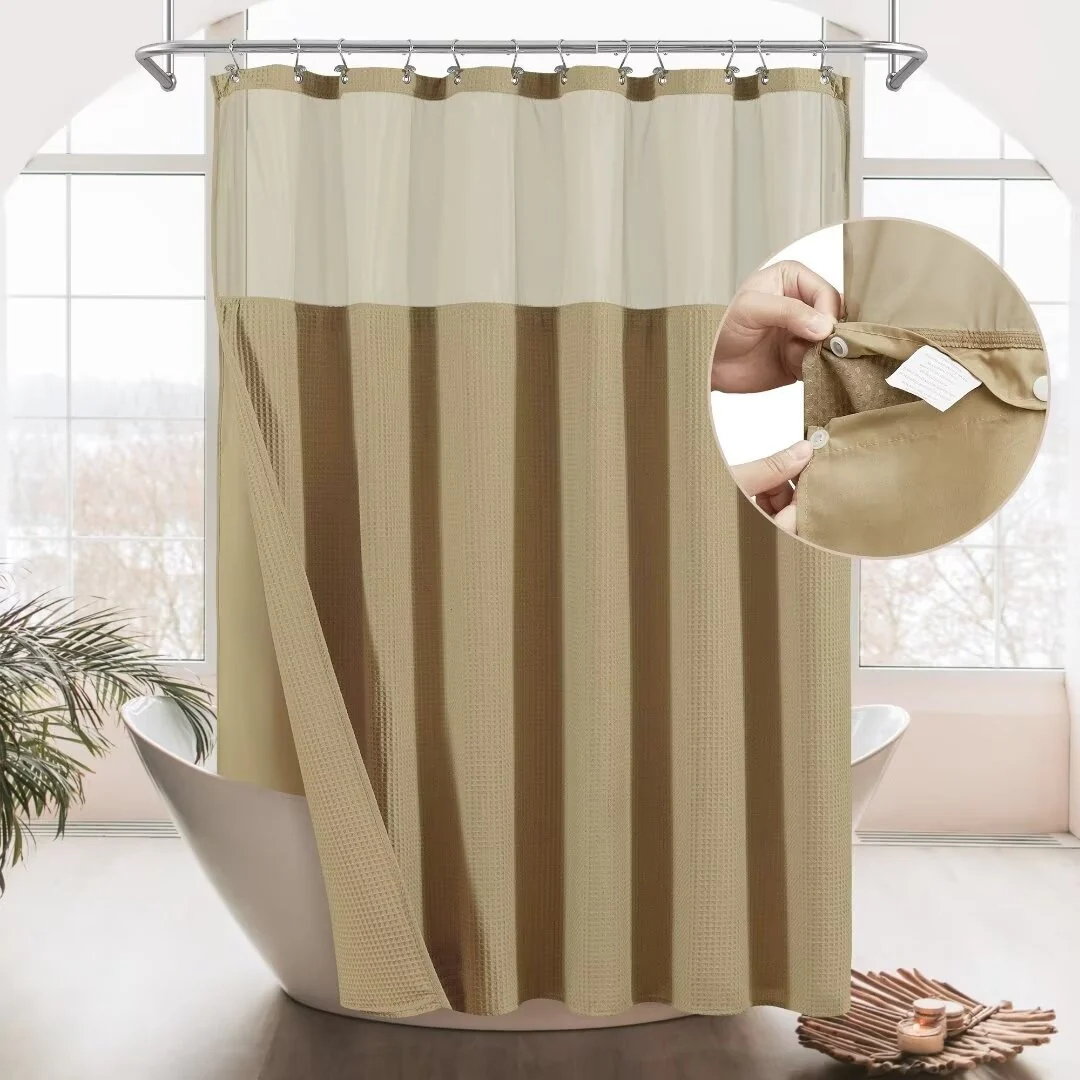 Cotton Blend Honeycomb Waffle Shower Curtain with Snap-in Liner
