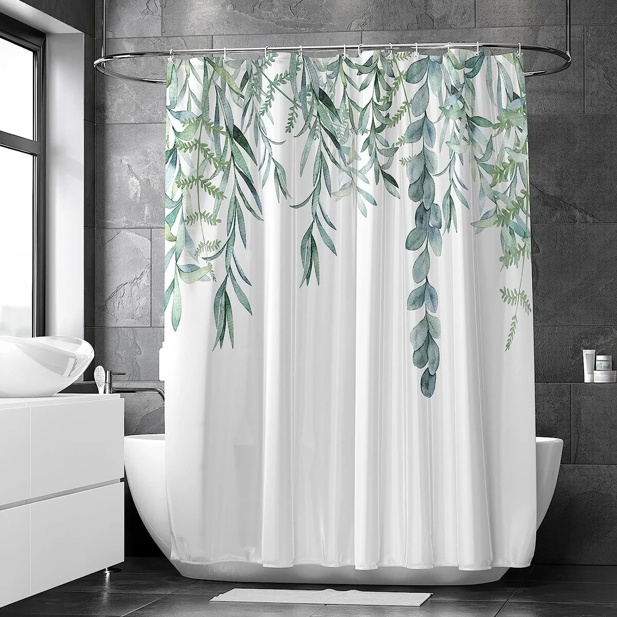Spring Floral Shower Curtain for Bathroom, Eucalyptus Leaves