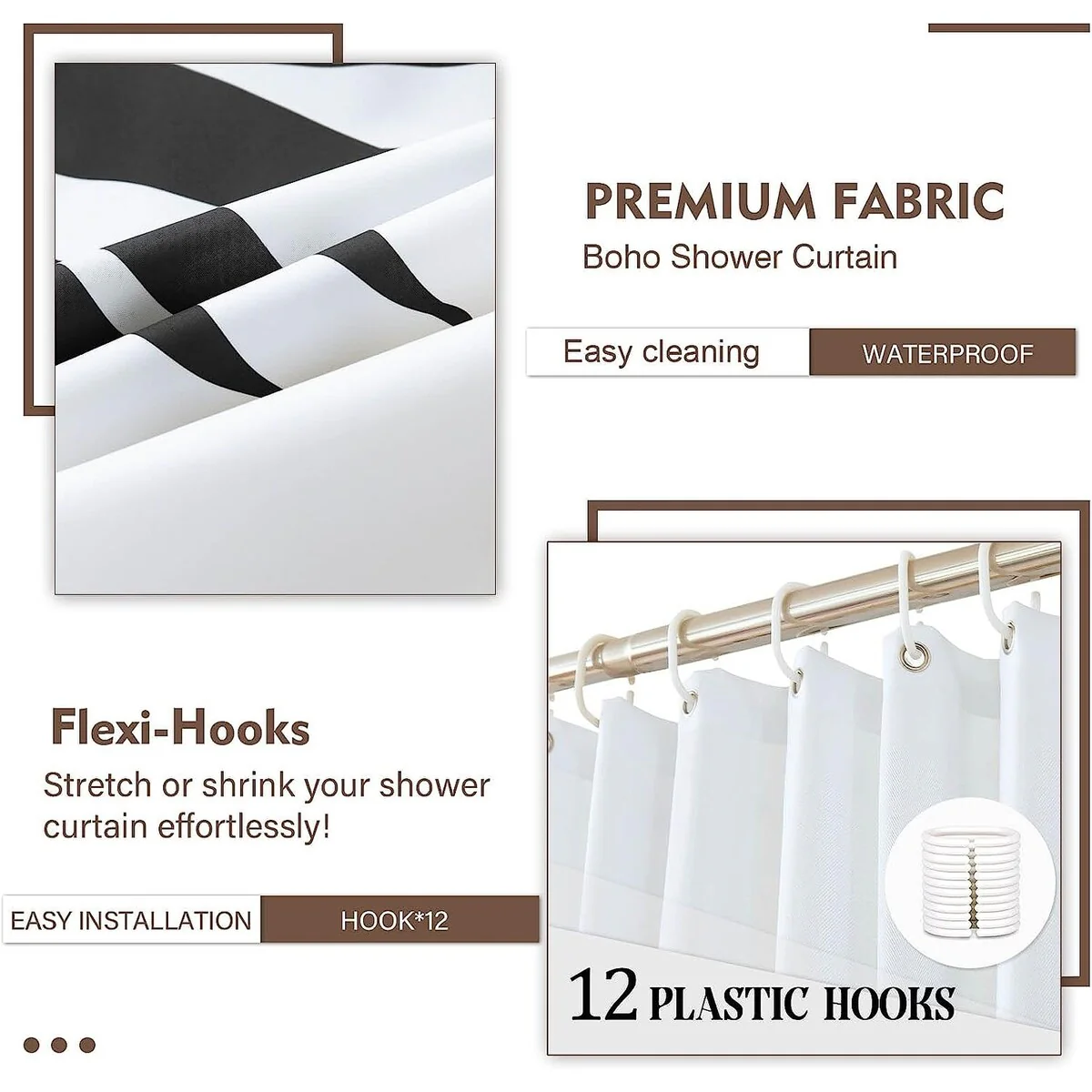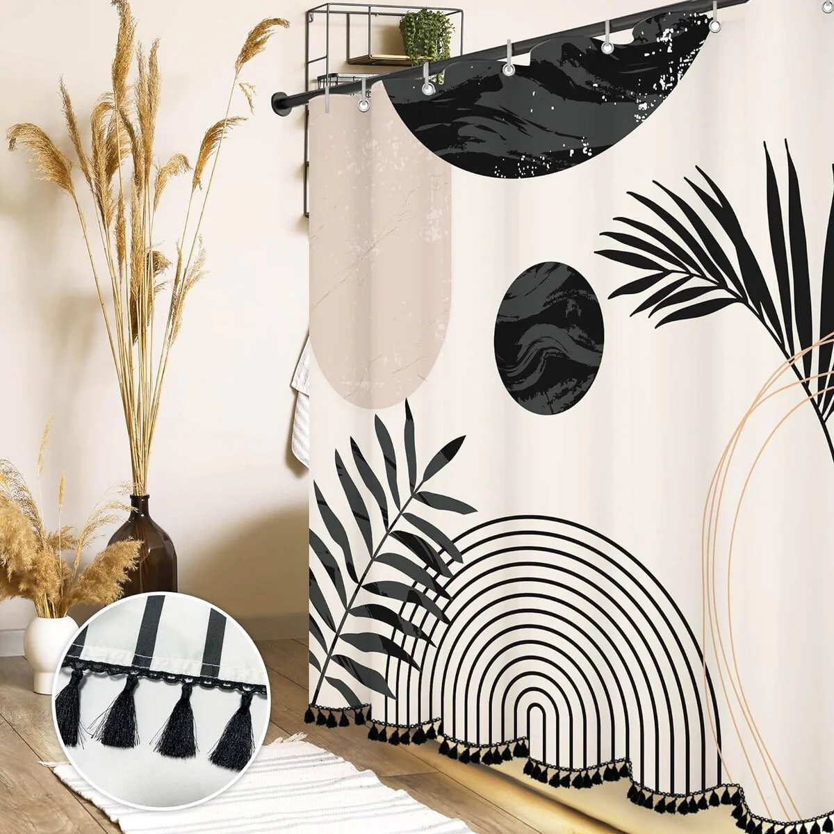 Boho Mid Century Shower Curtain Sets with Tassel Pendants Arch Sun