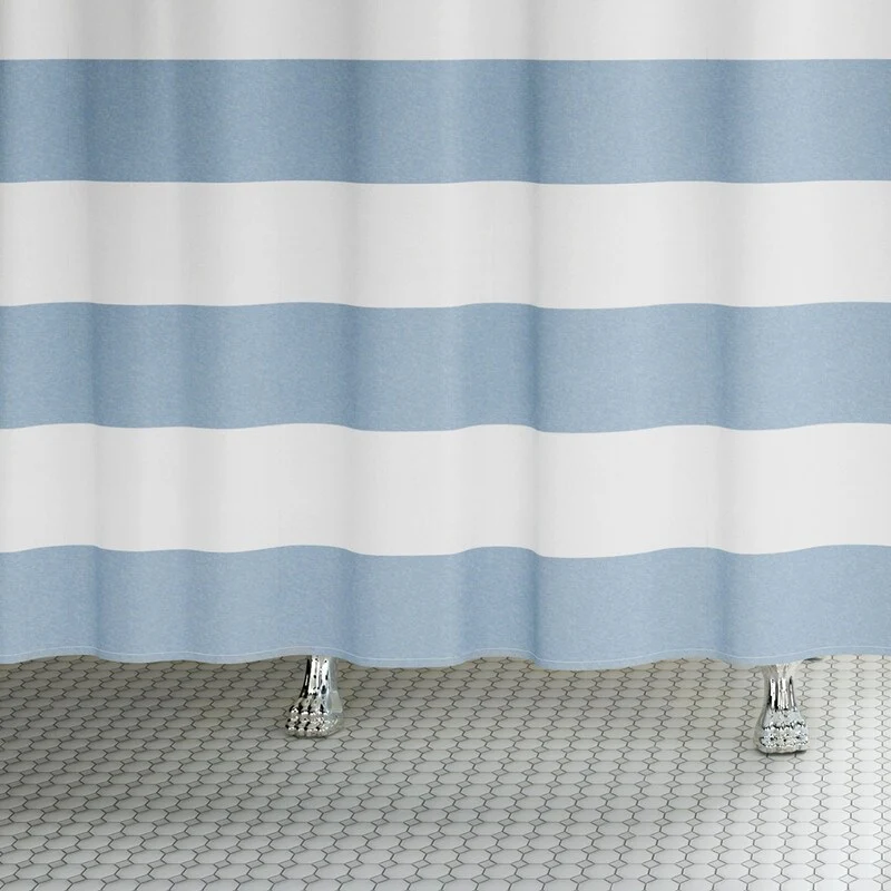 Lavelle Blue/White Stripe Fabric Shower Curtain