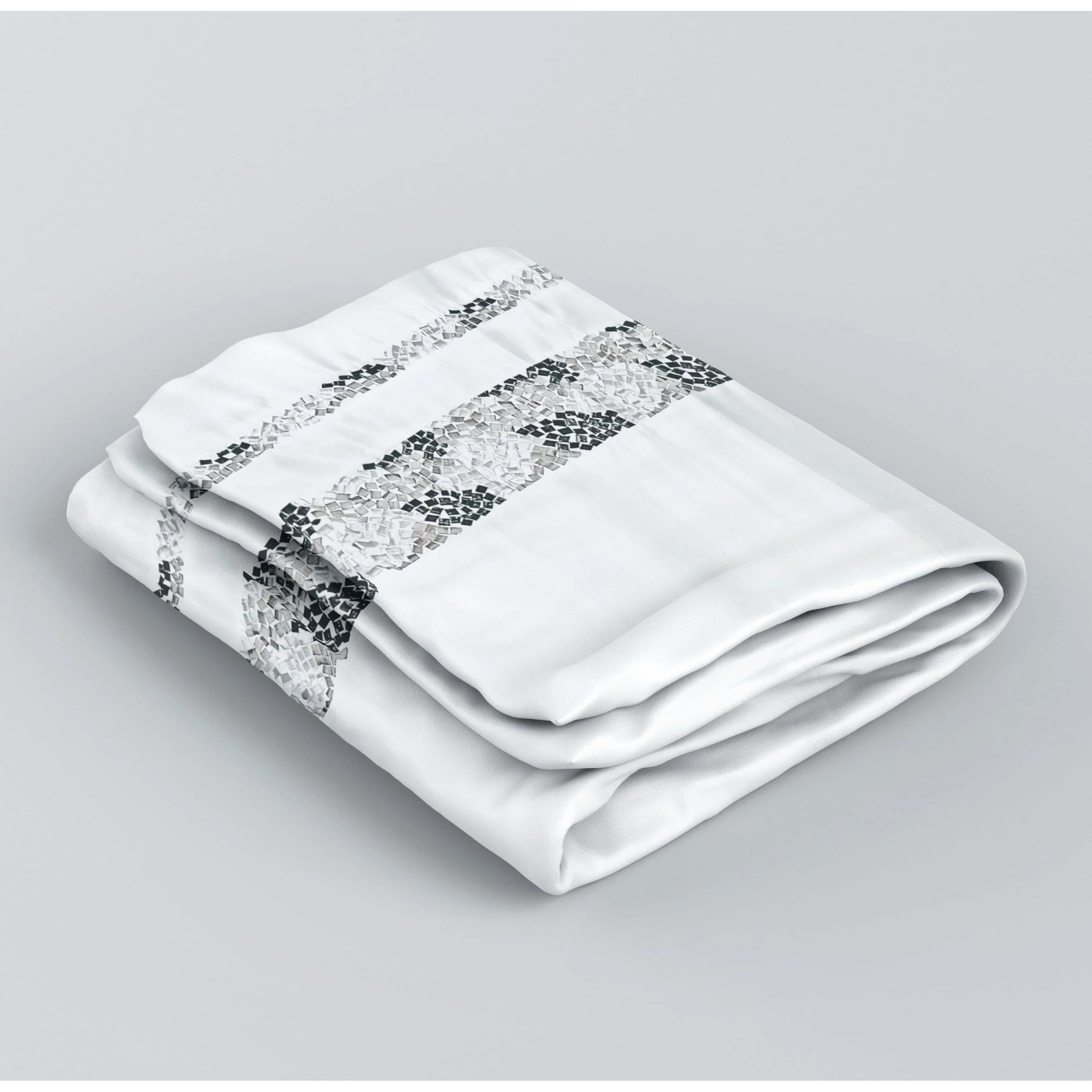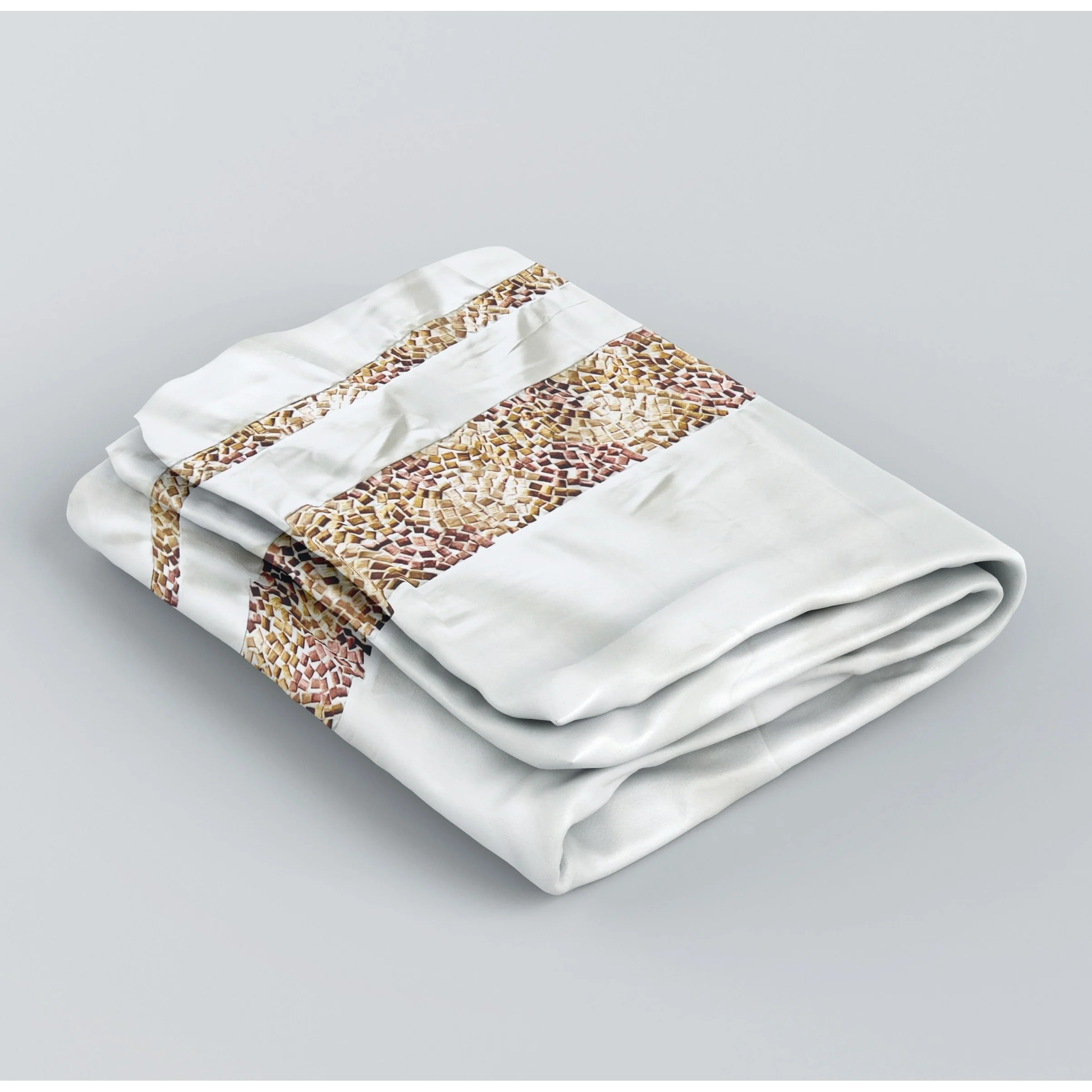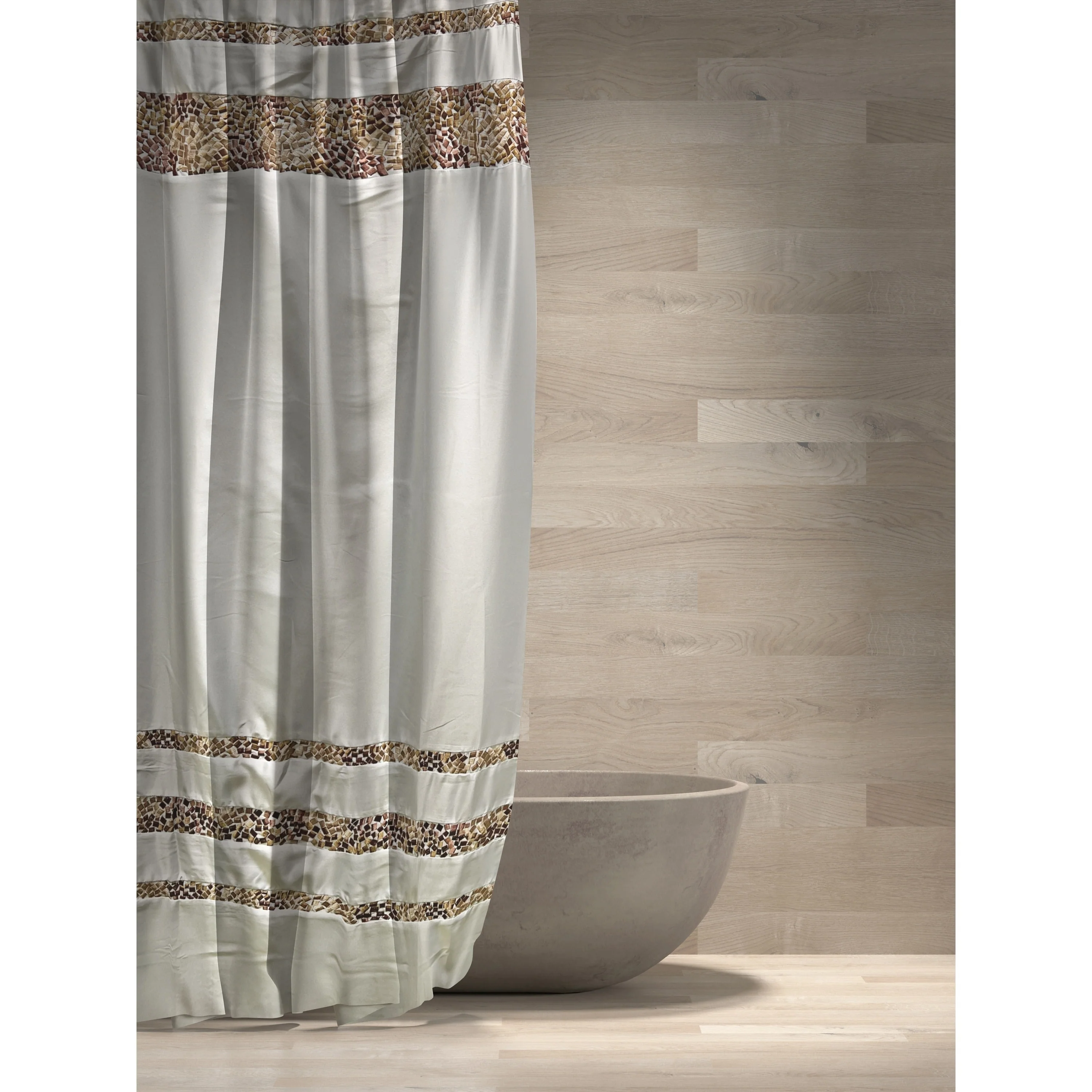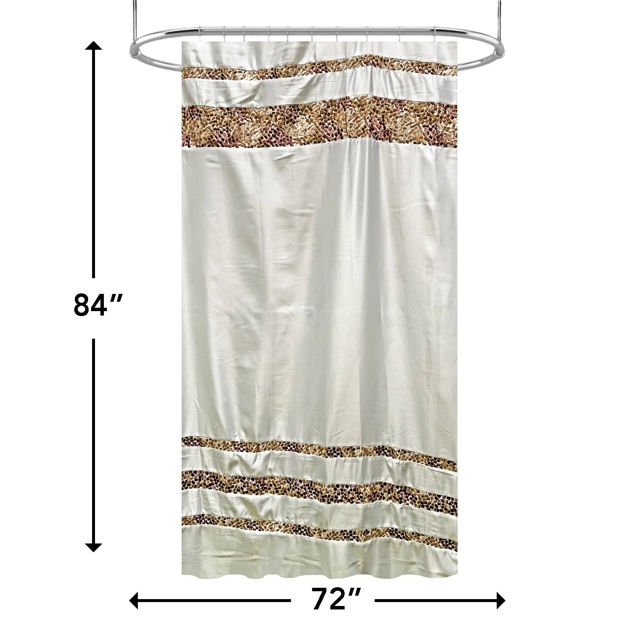 Spa Tile White Soft Fabric Shower Curtain with Multicolor Embroidered Tile Bands