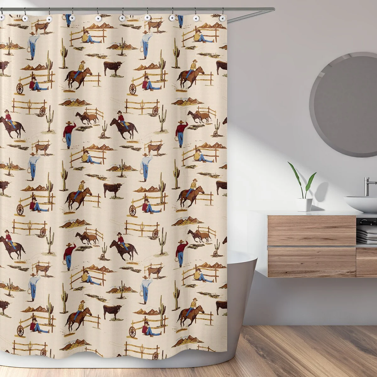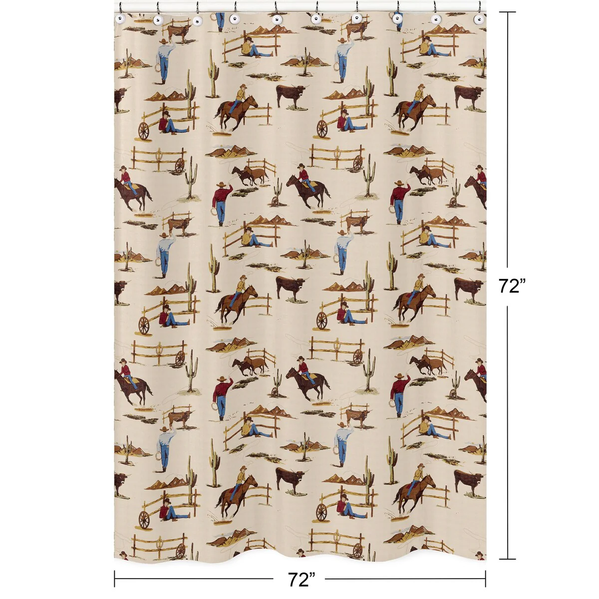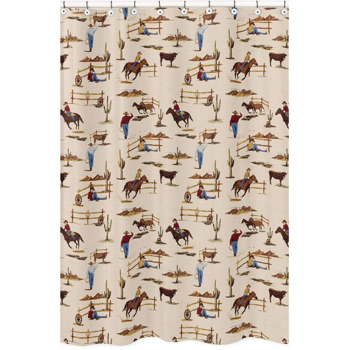 Sweet Jojo Designs Brown Western Cowboy Boy Bathroom Fabric Bath Shower Curtain Tan Wild West Southern Country Horse Cow Animal