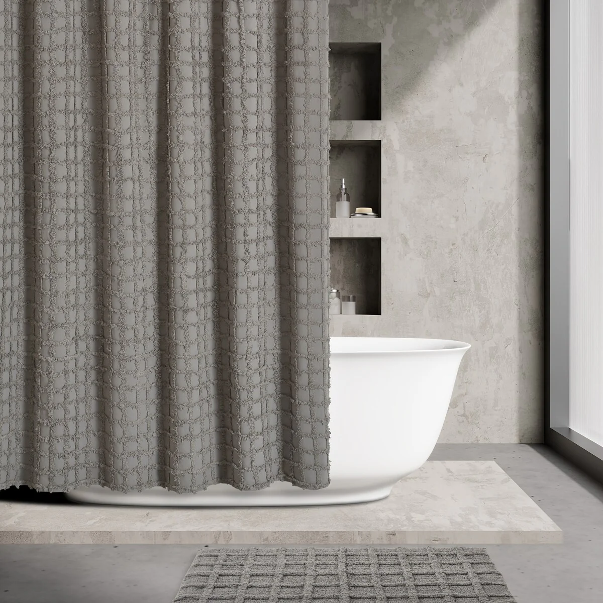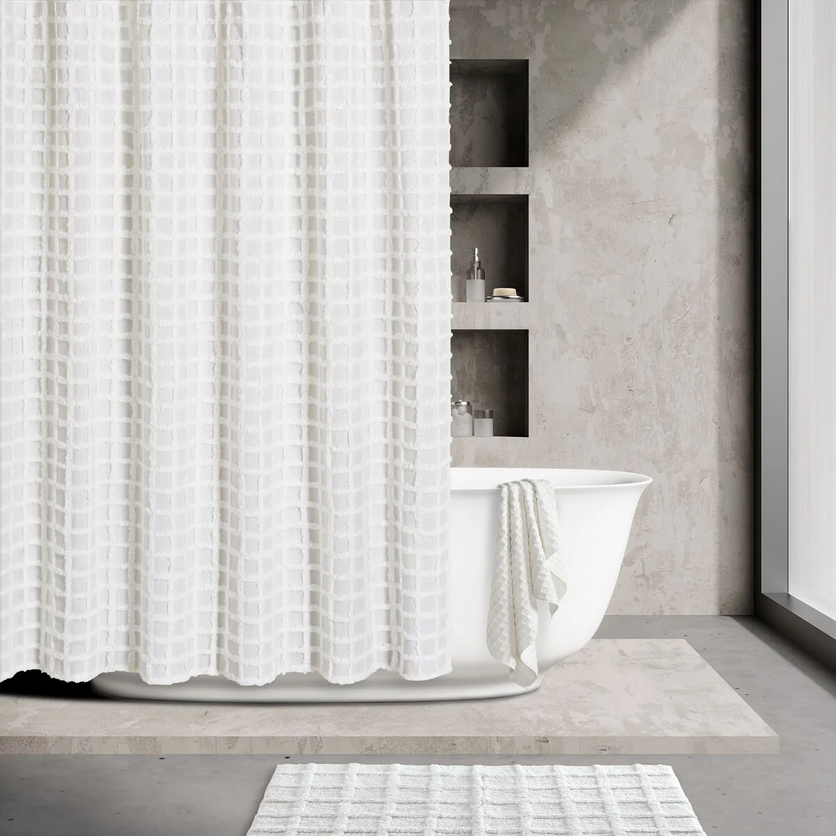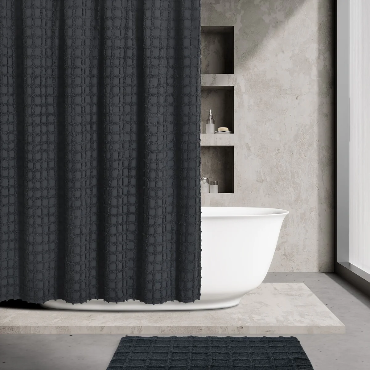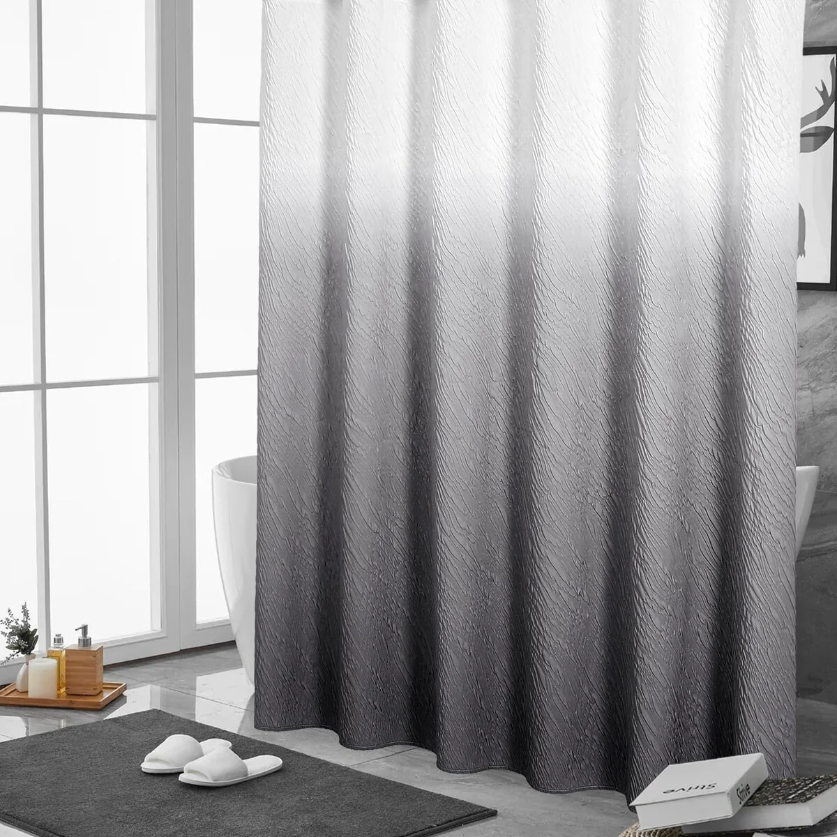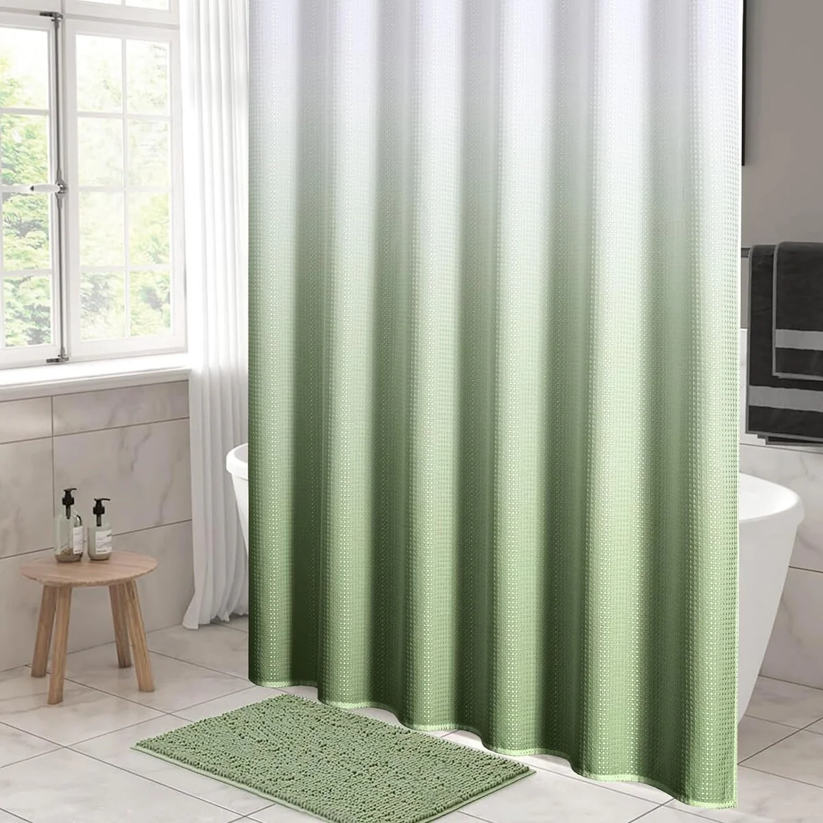 Ombre Waffle Fabric Shower Curtain, Modern Waffle Weave Textured for