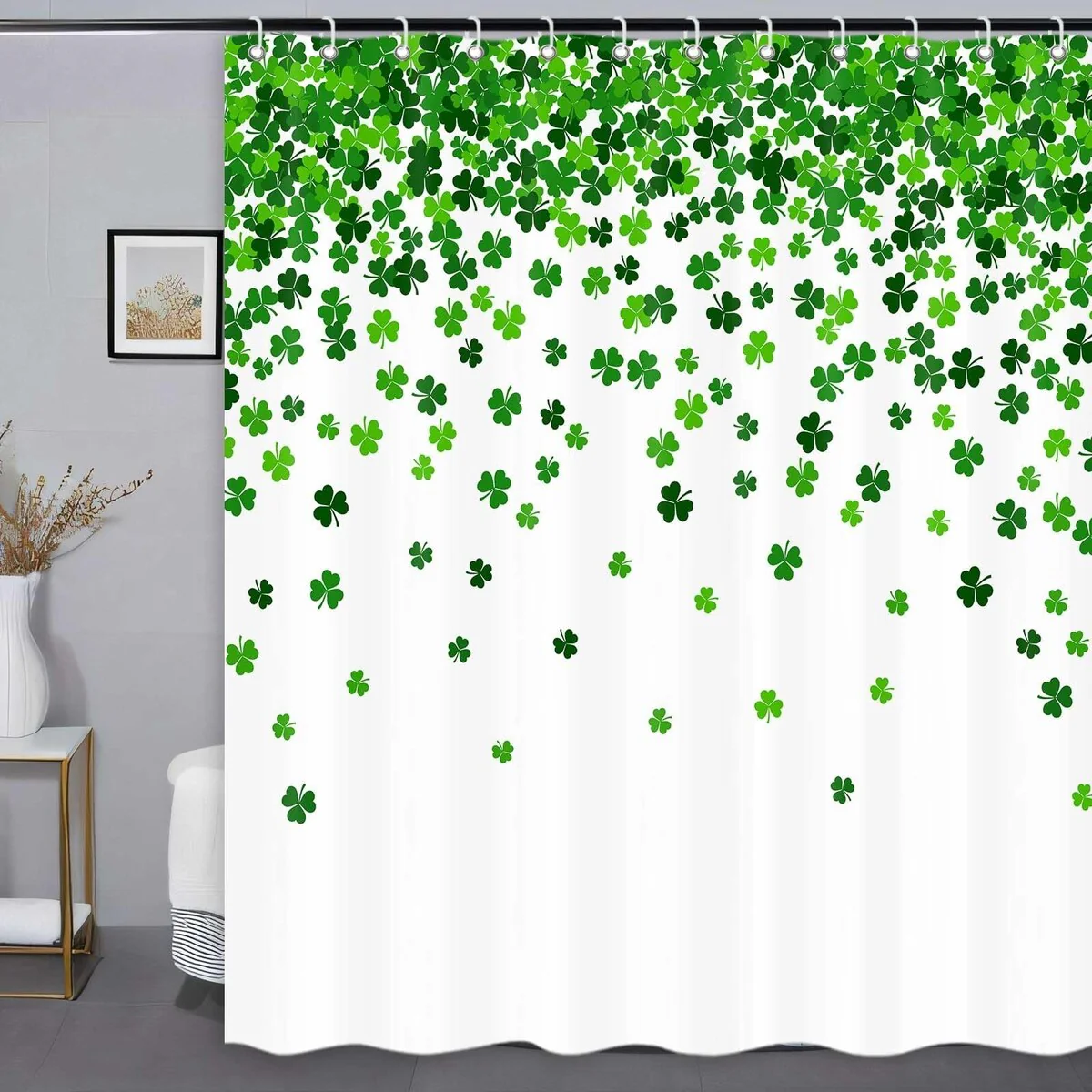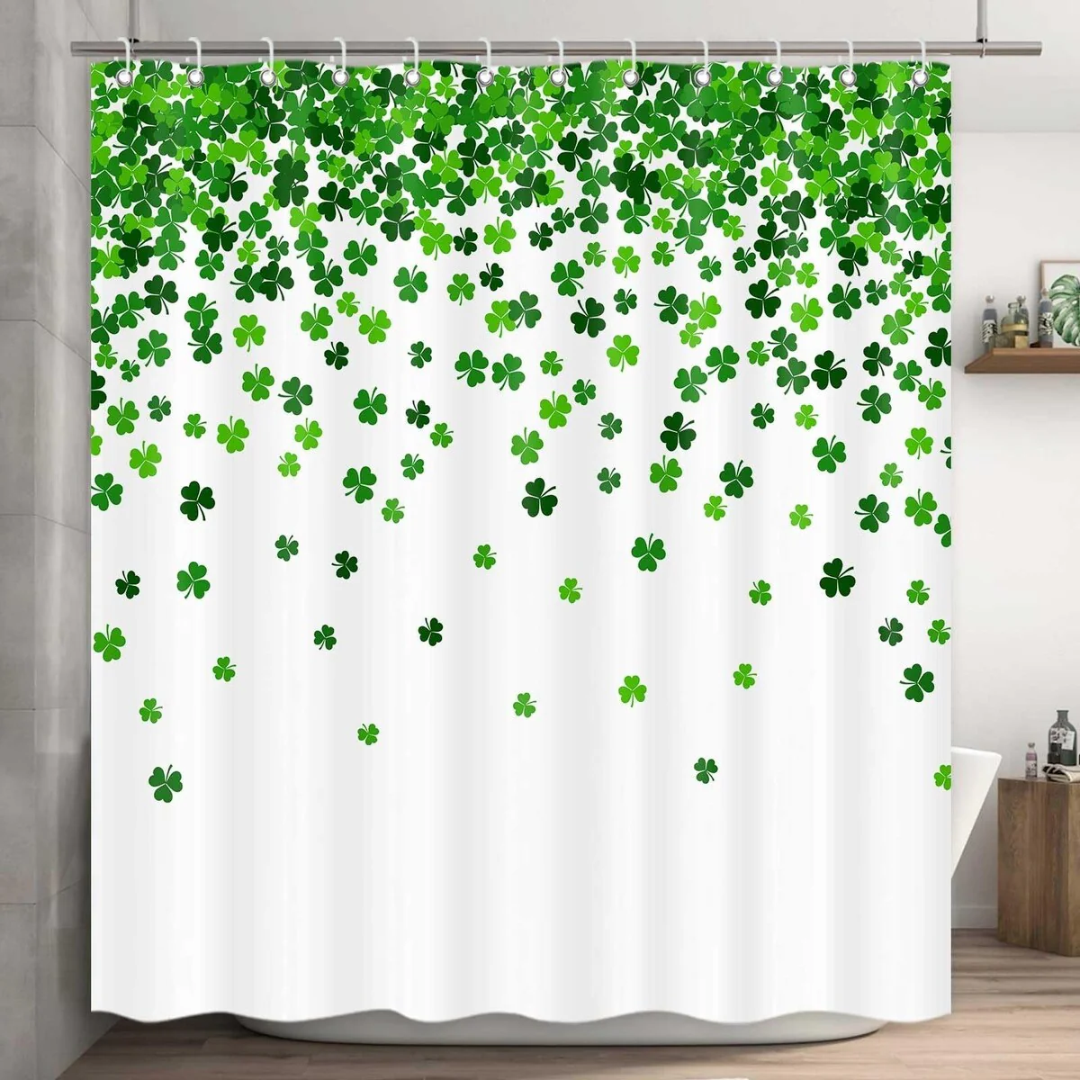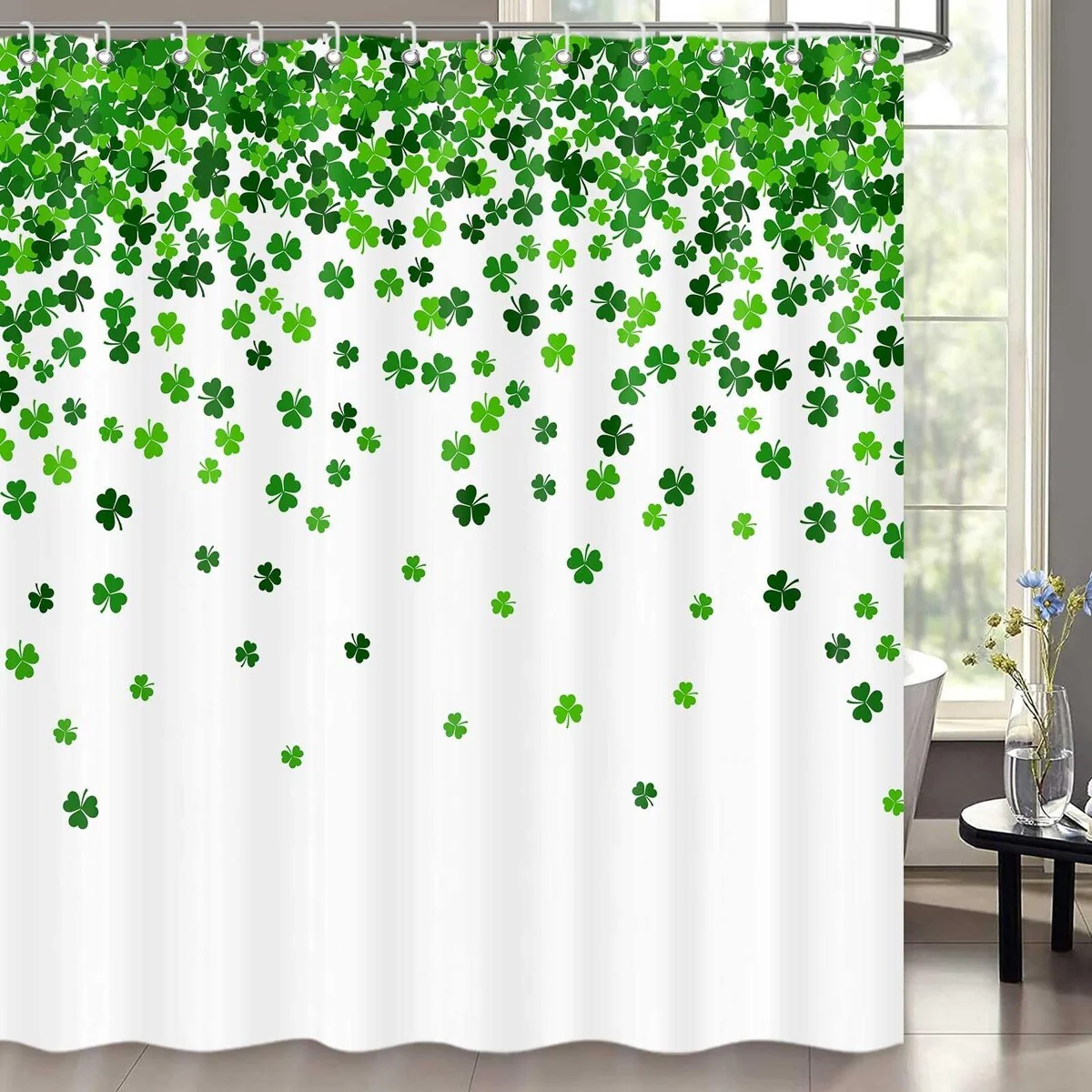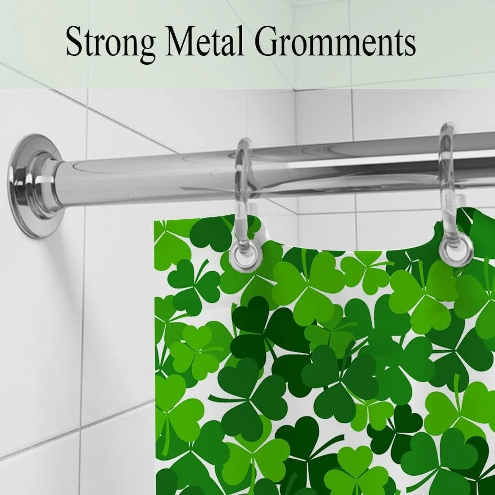 St. Patrick's Day Shower Curtain, Green Clover Leaf Decor 72" x 72"