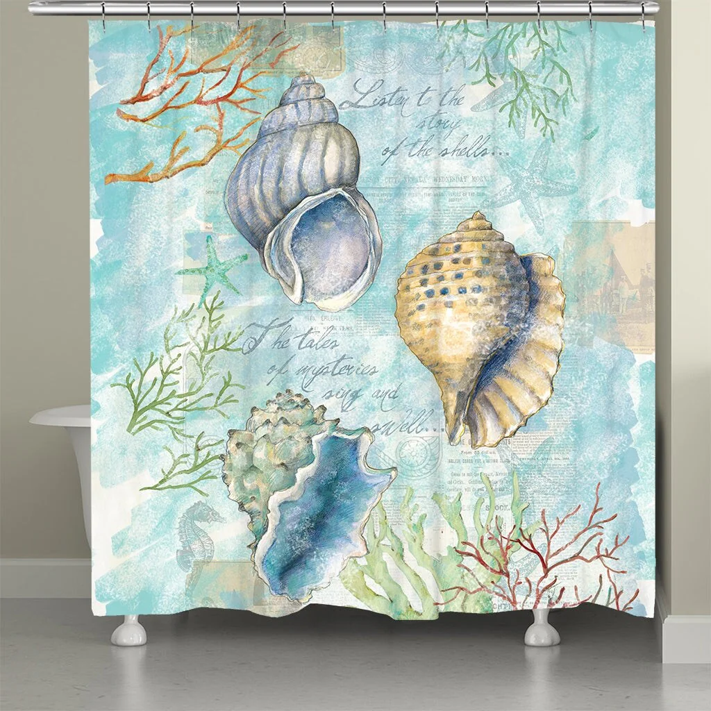Laural Home Sketchbook Shells Shower Curtain 71x72