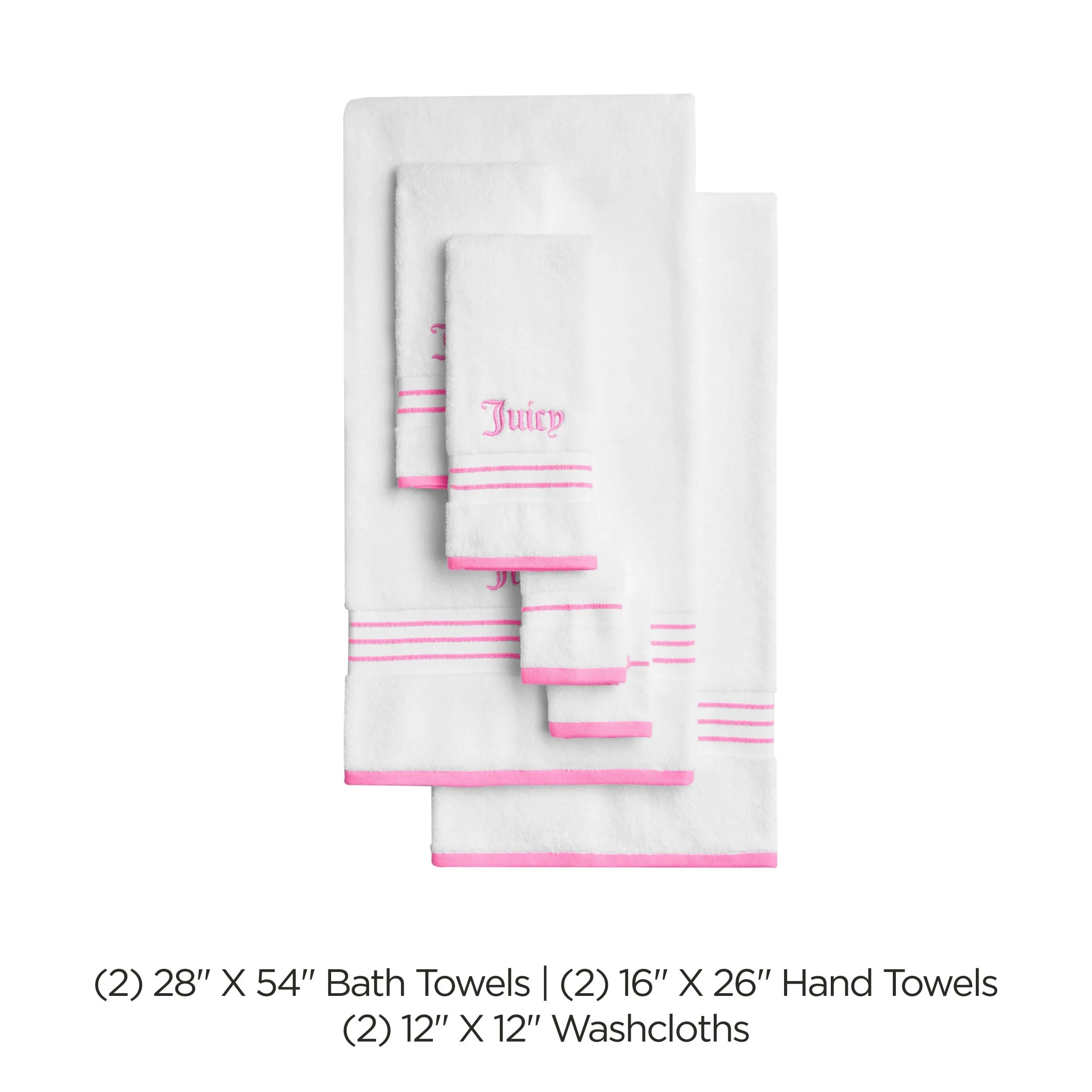 Juicy Couture Alyssa Bath Towels 6-Piece Set 2 Bath towels 2 Hand towels 2 Washcloths - 28"x54"/16"x26"/12"x12"