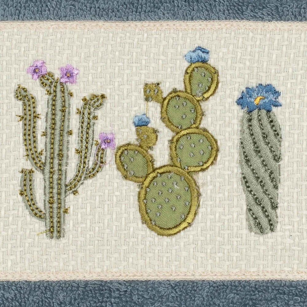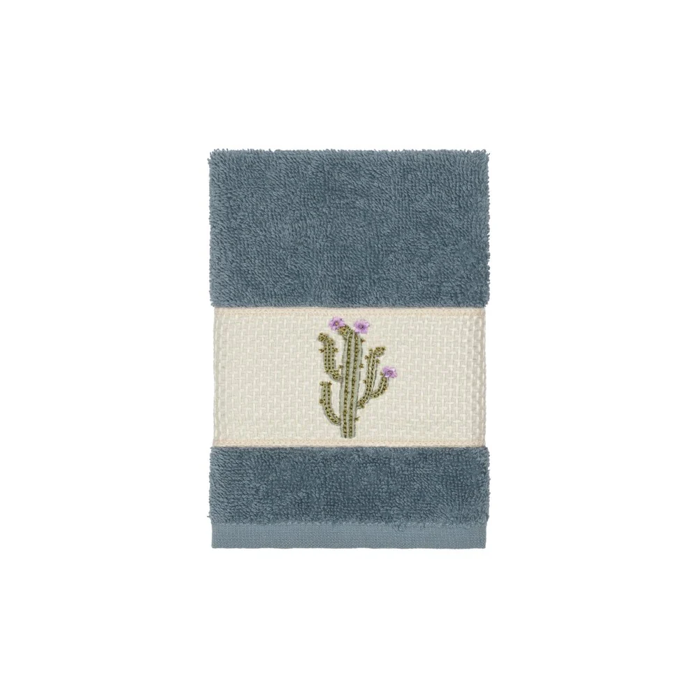 Authentic Hotel and Spa Turkish Cotton Cactus Embroidered Teal Blue 3-piece Towel Set