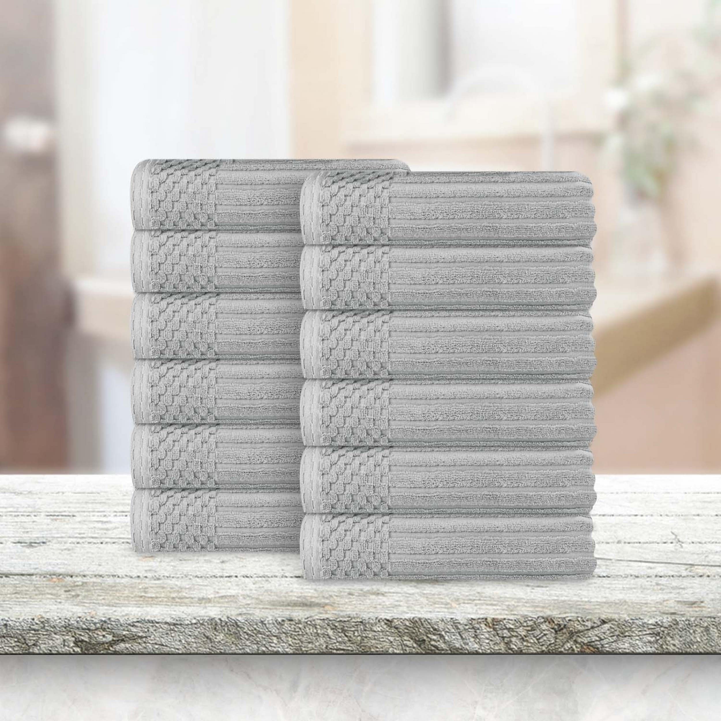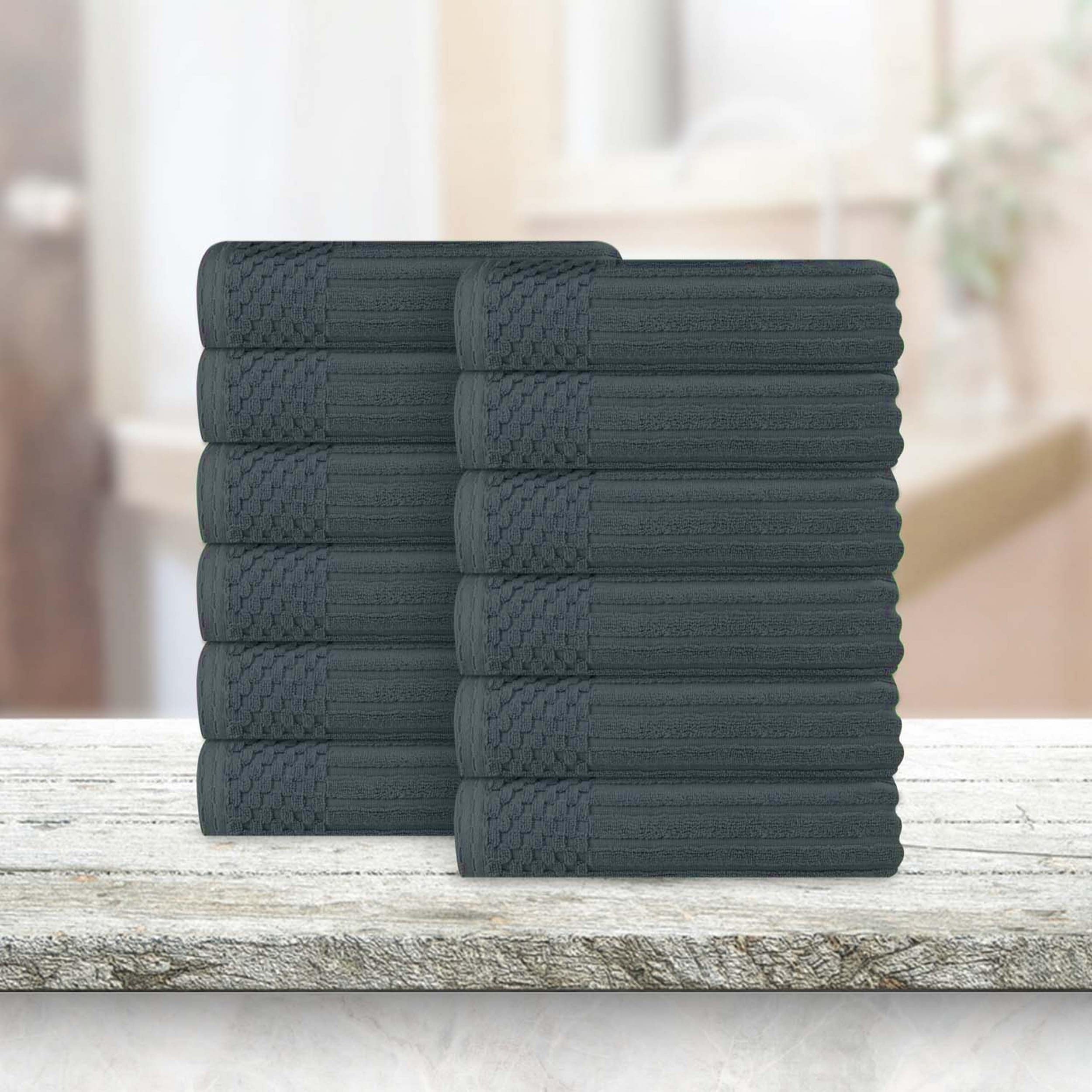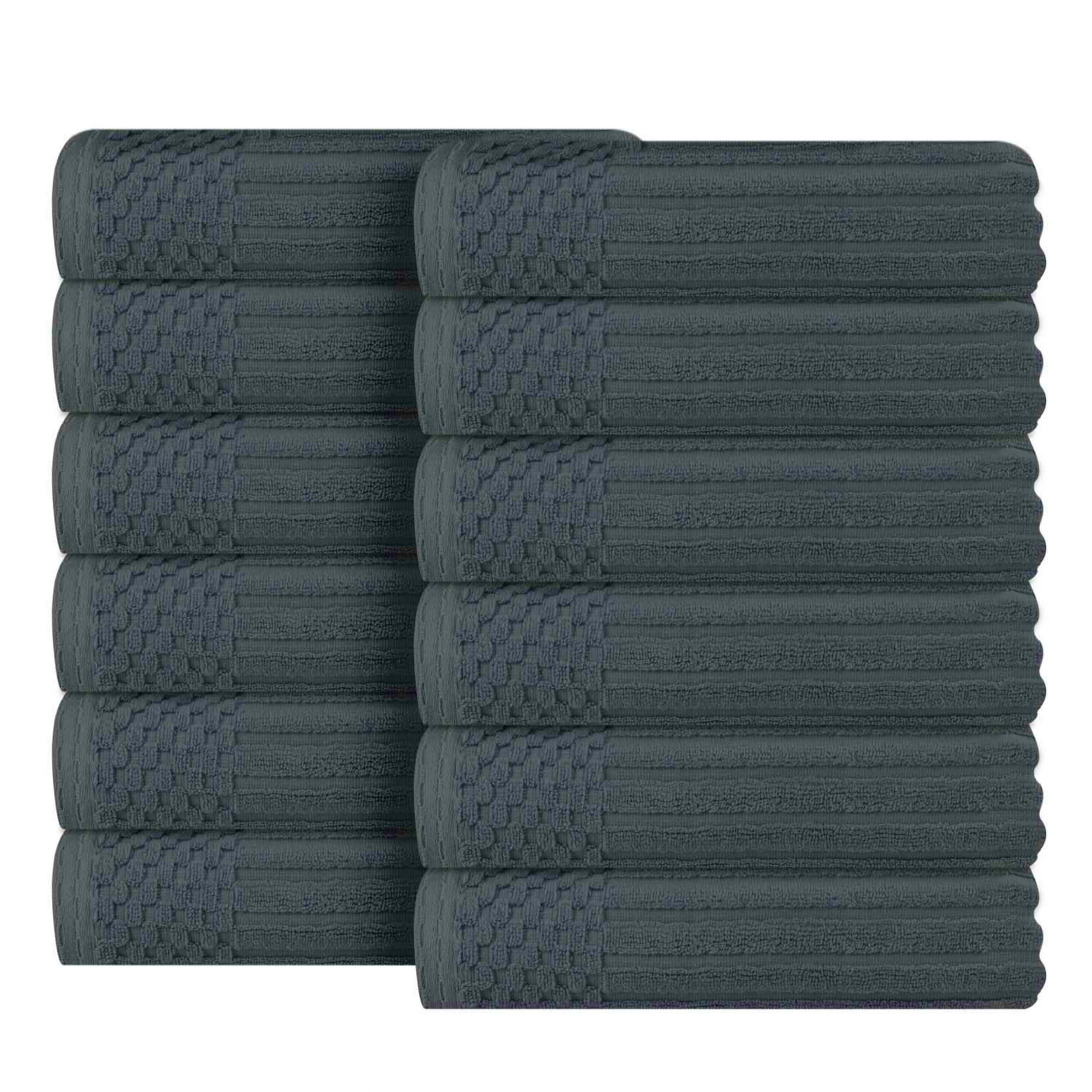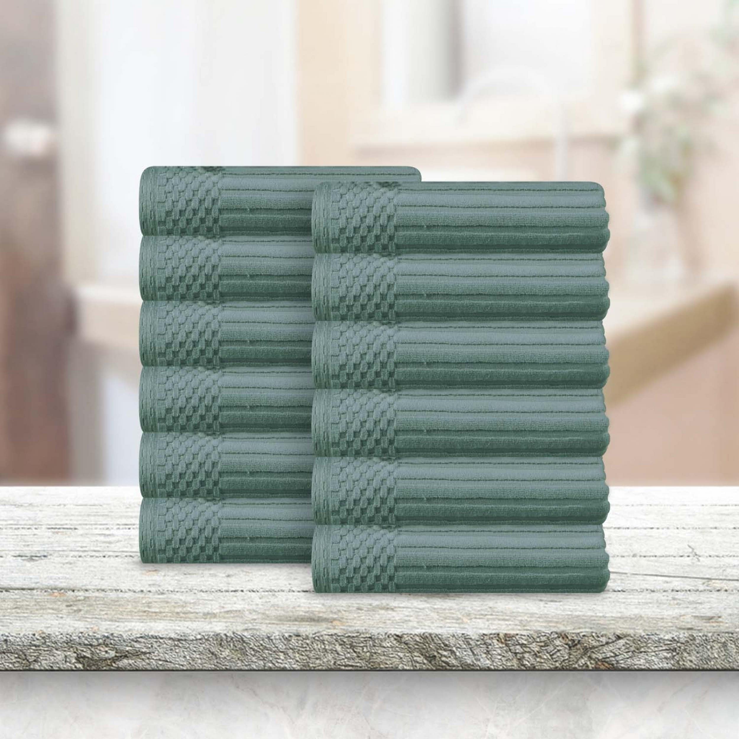 Superior Soho Ribbed Cotton Face Towel/Washcloth Set of 12