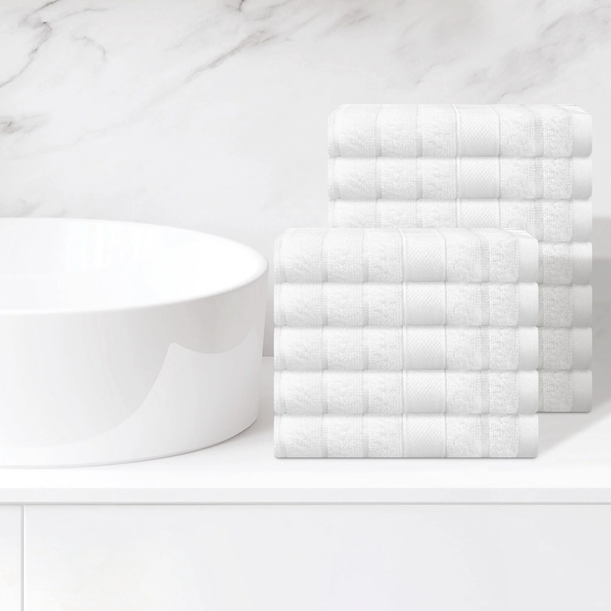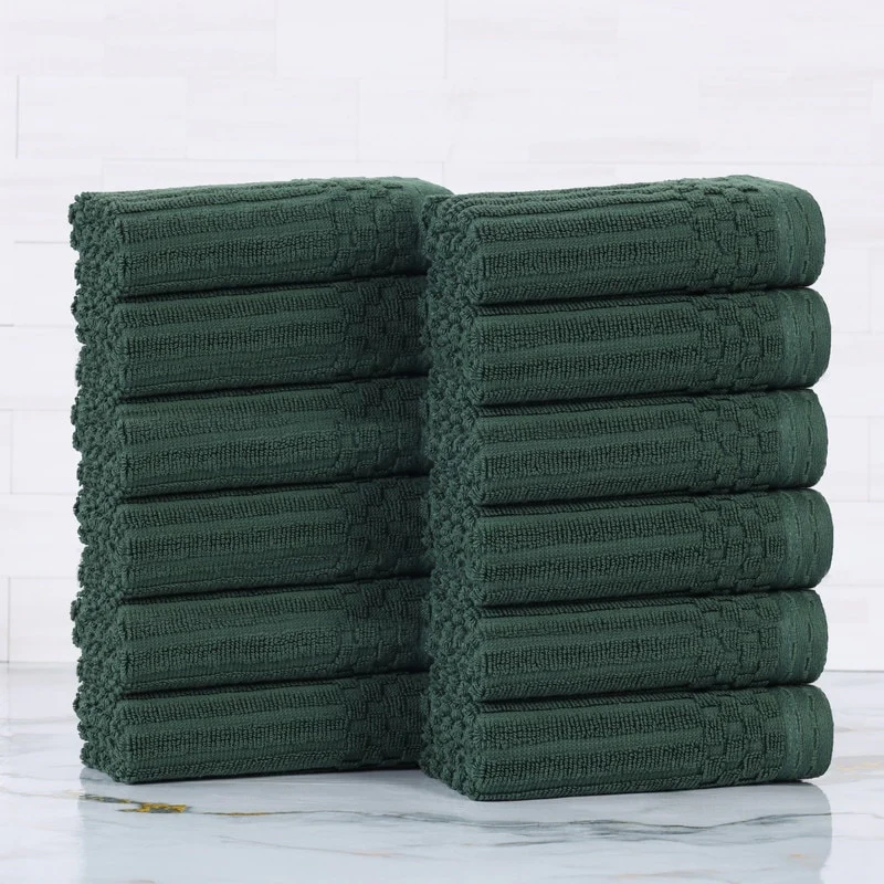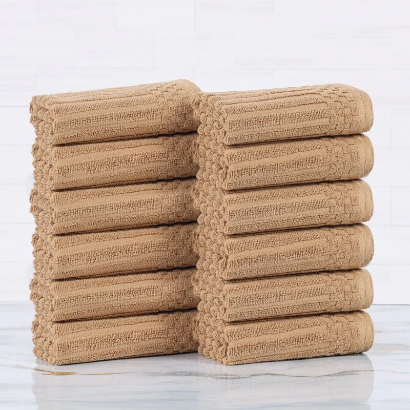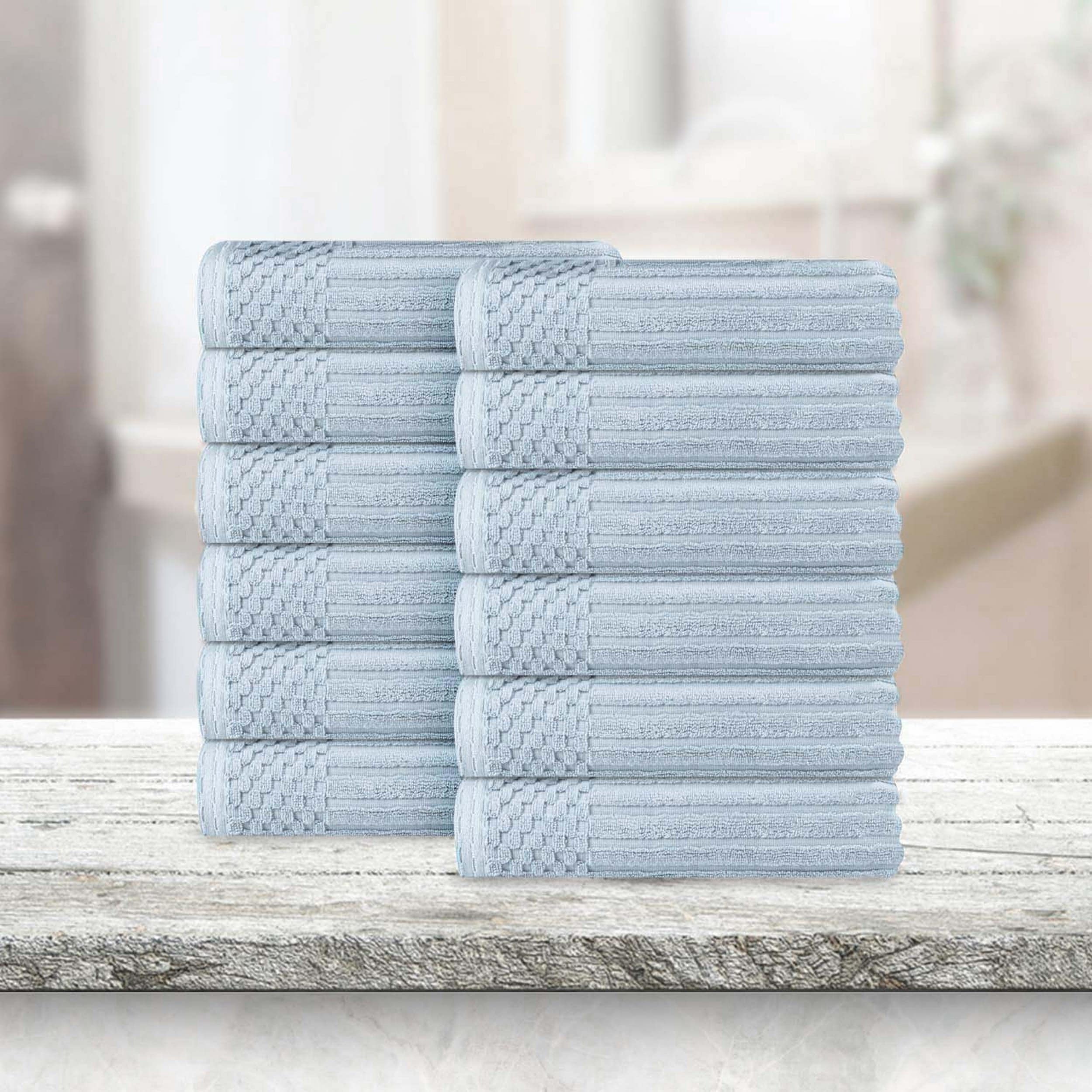 Superior Soho Ribbed Cotton Face Towel/Washcloth Set of 12