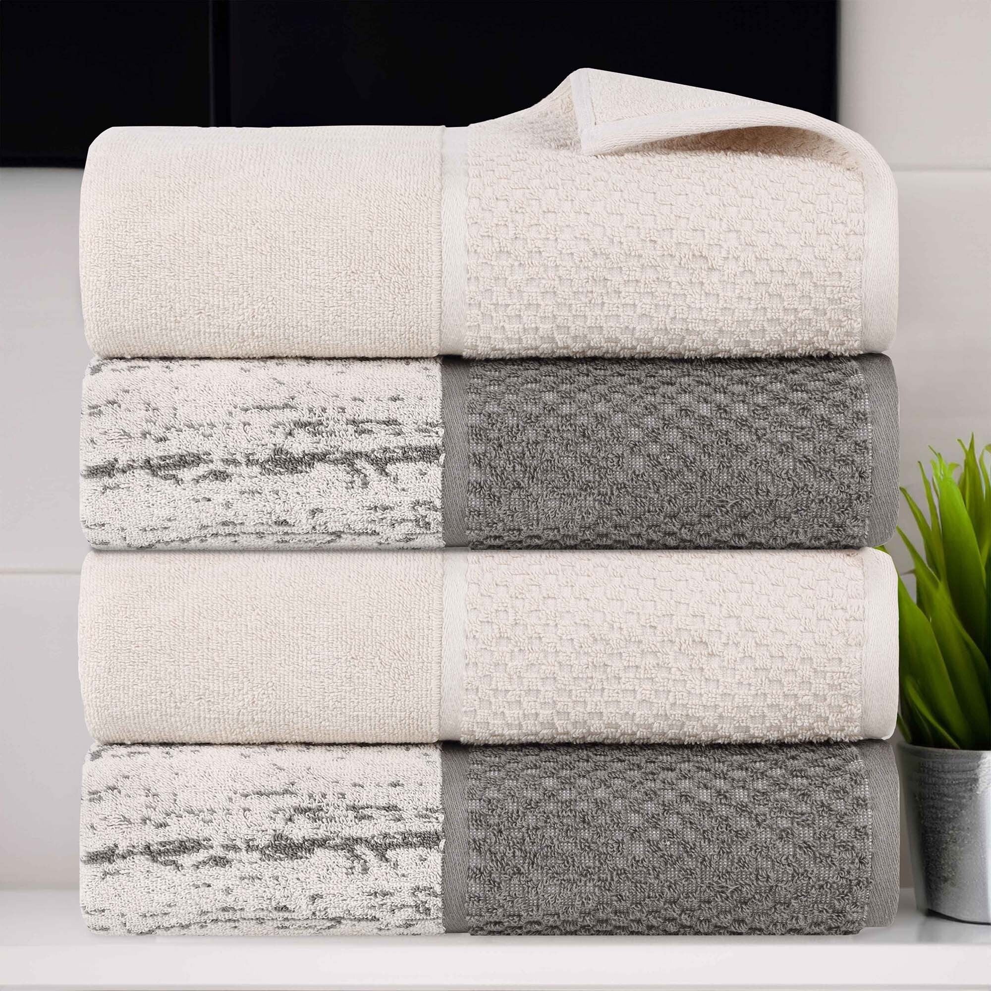 Superior Lodie Cotton Jacquard Solid and Two-Toned Bath Towel Set of 4