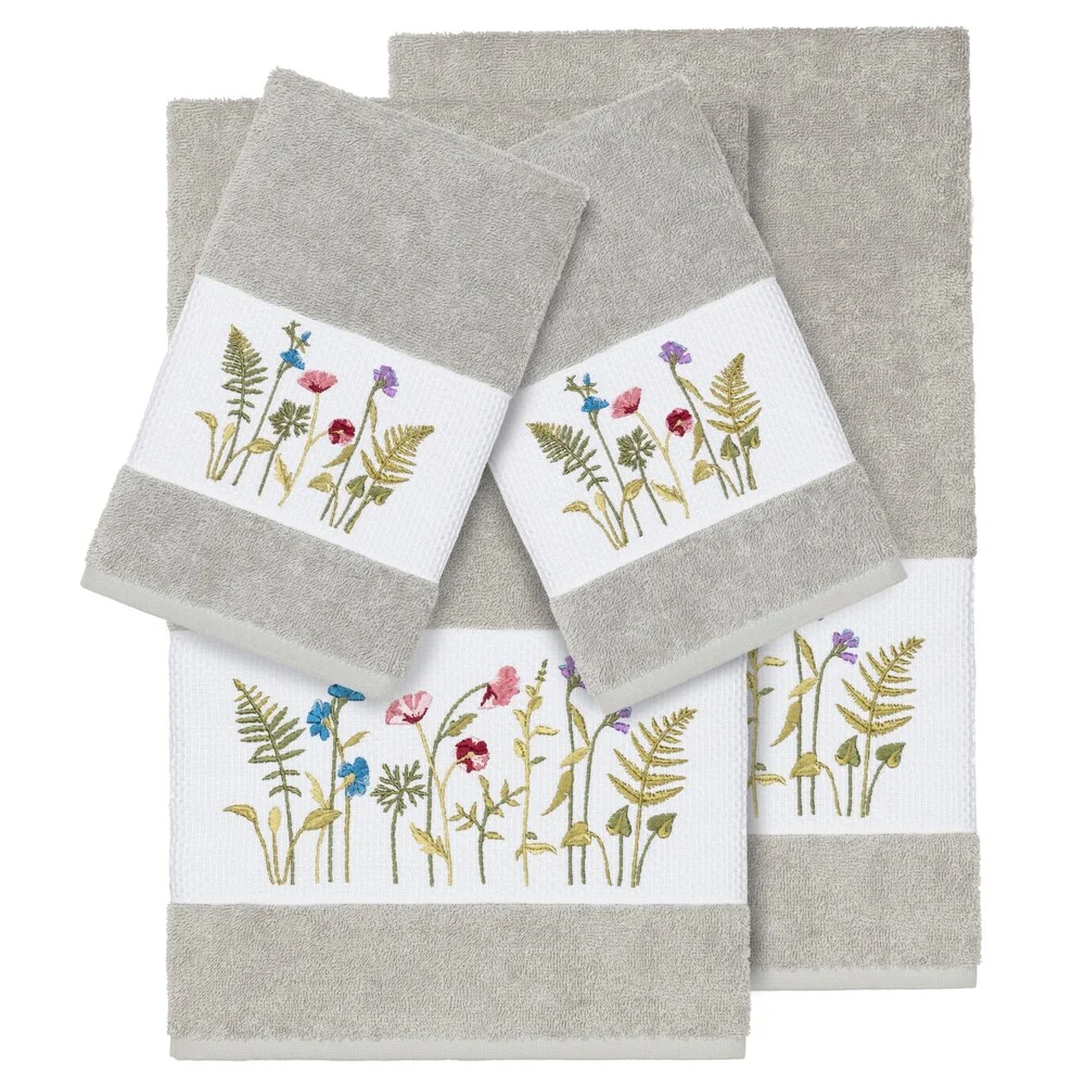 Authentic Hotel and Spa Grey Turkish Cotton Wildflowers Embroidered 4 piece Towel Set