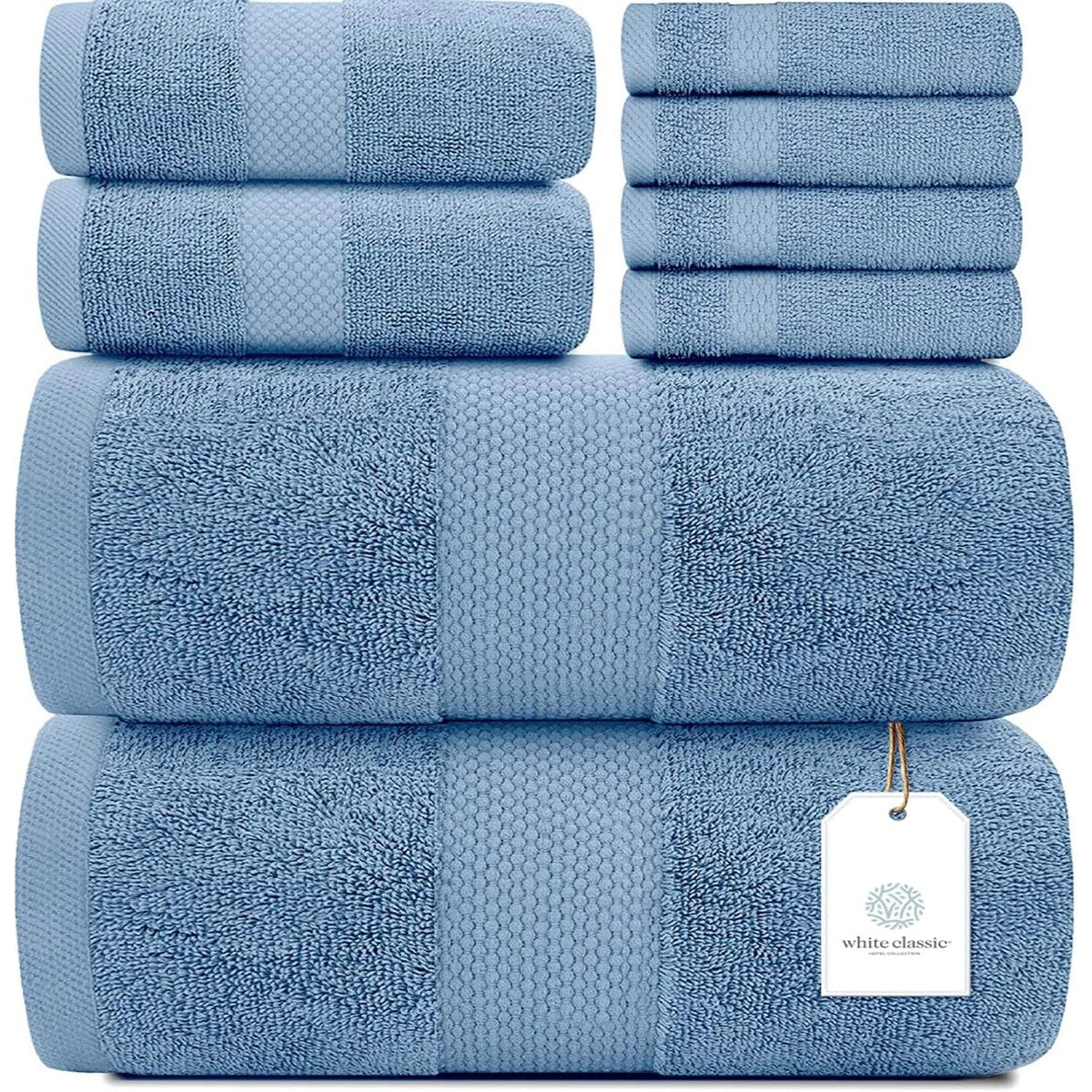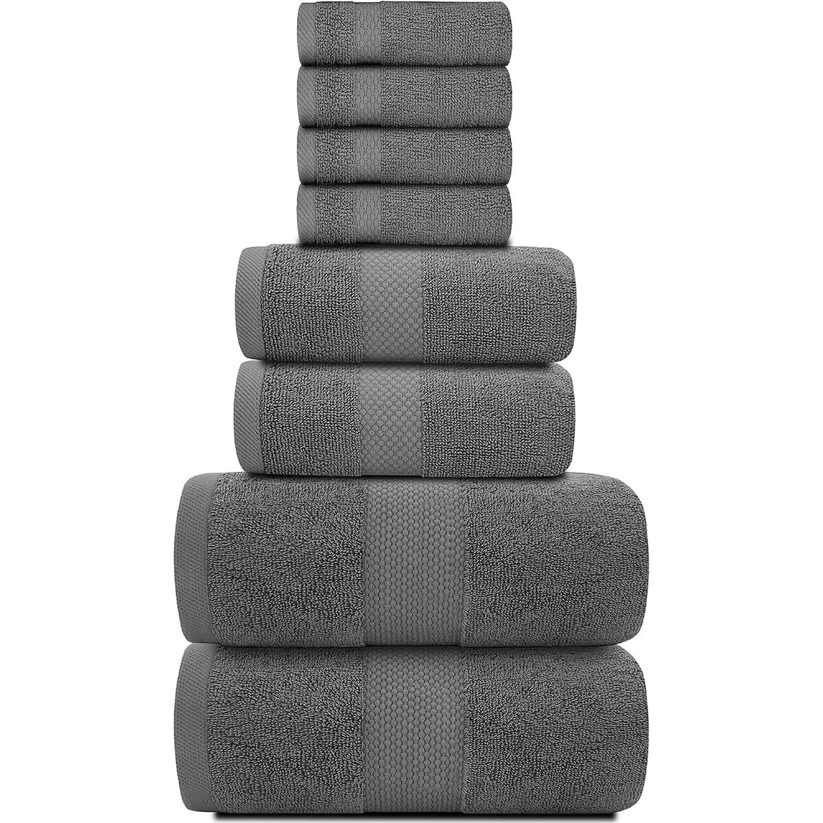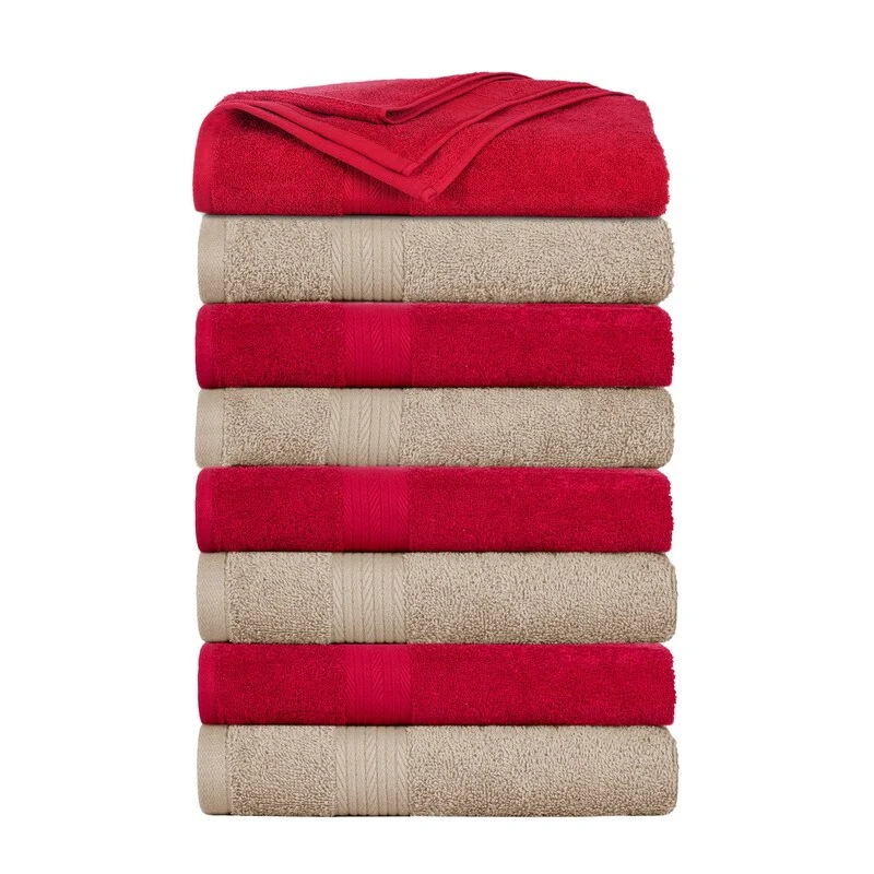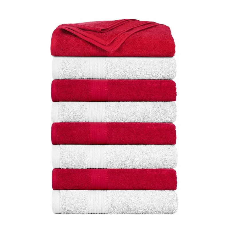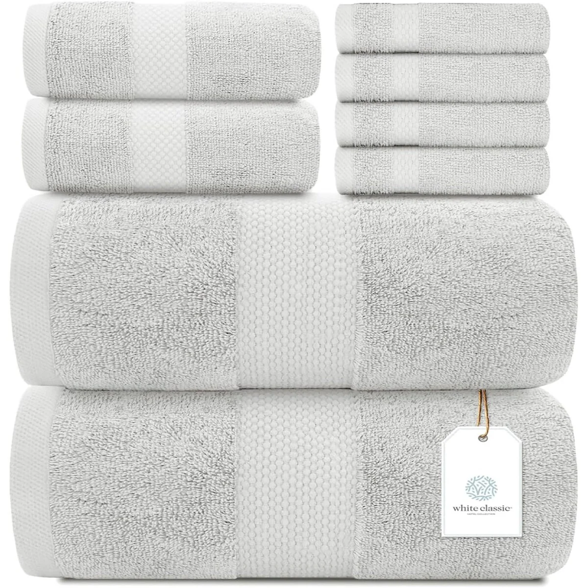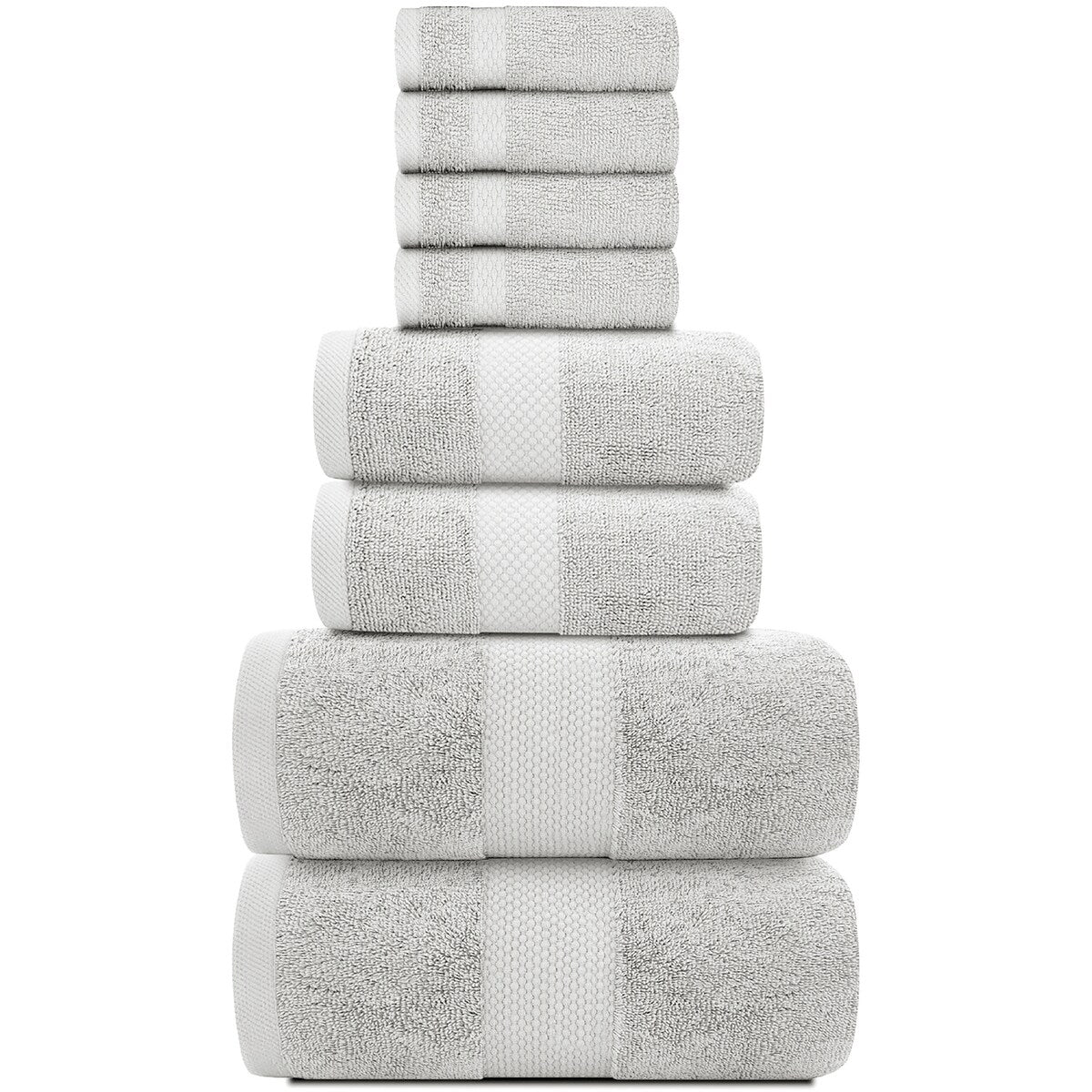8 Piece Oversized Bath Towel Set, 100% Cotton Bath Towels, Highly Absorbant Bordered Towels