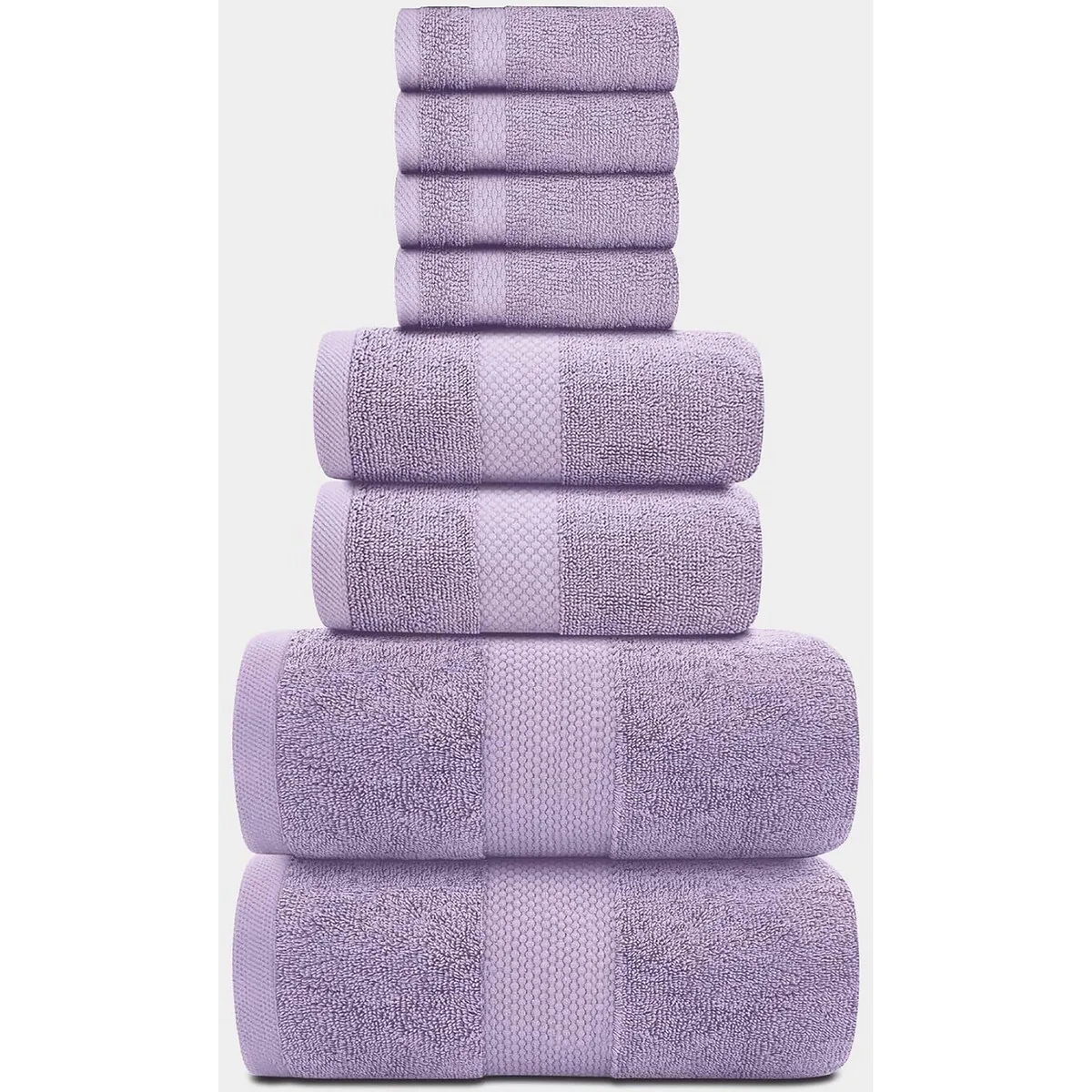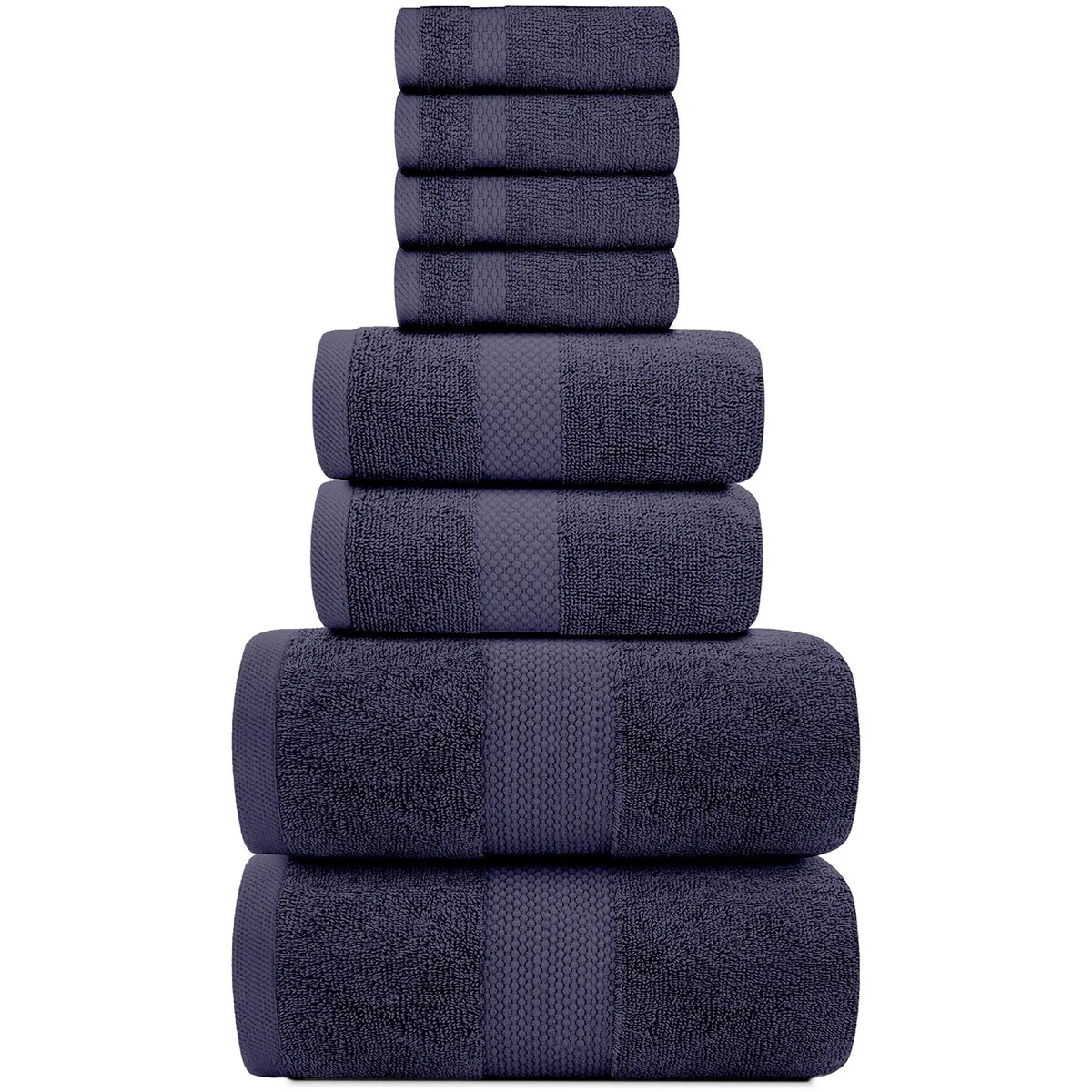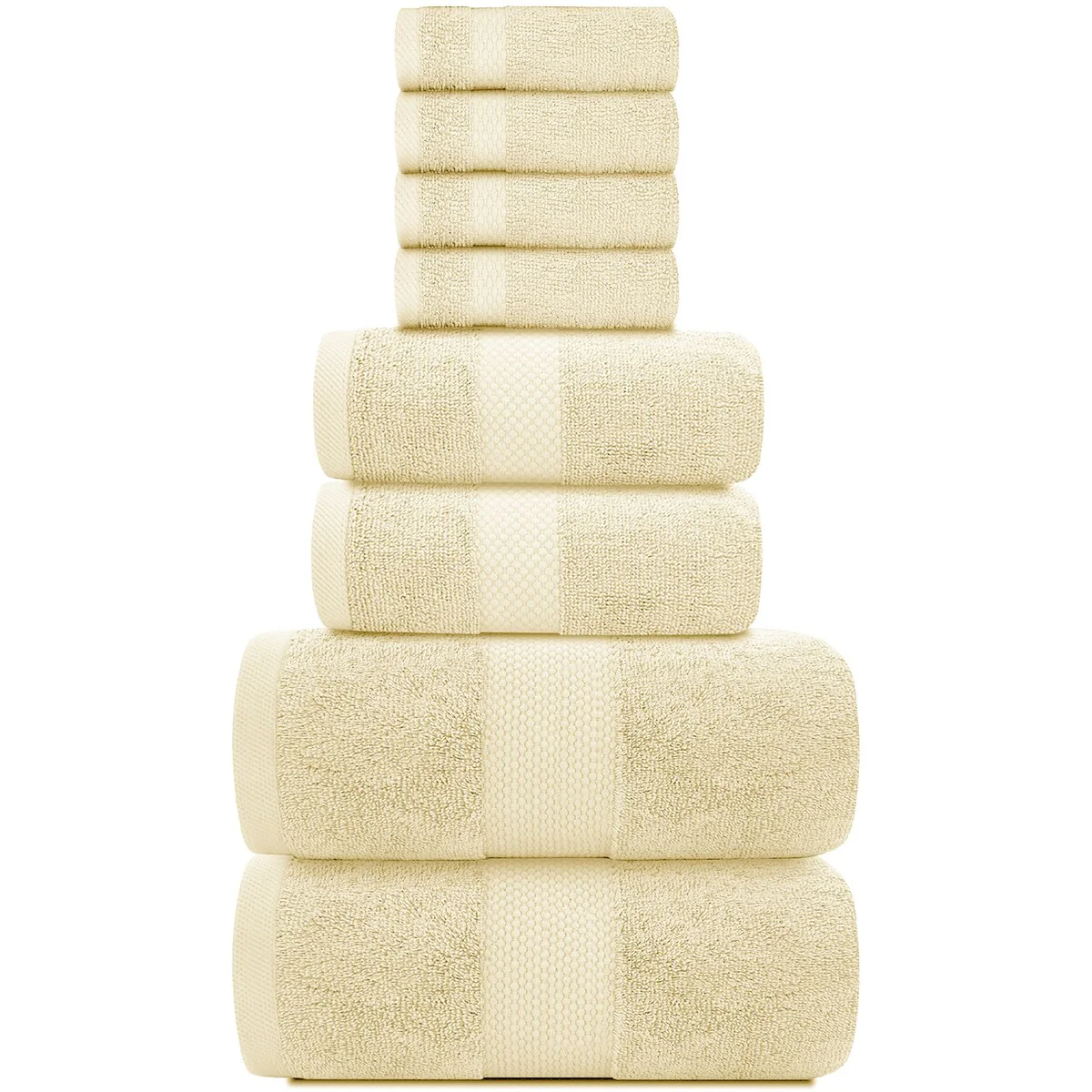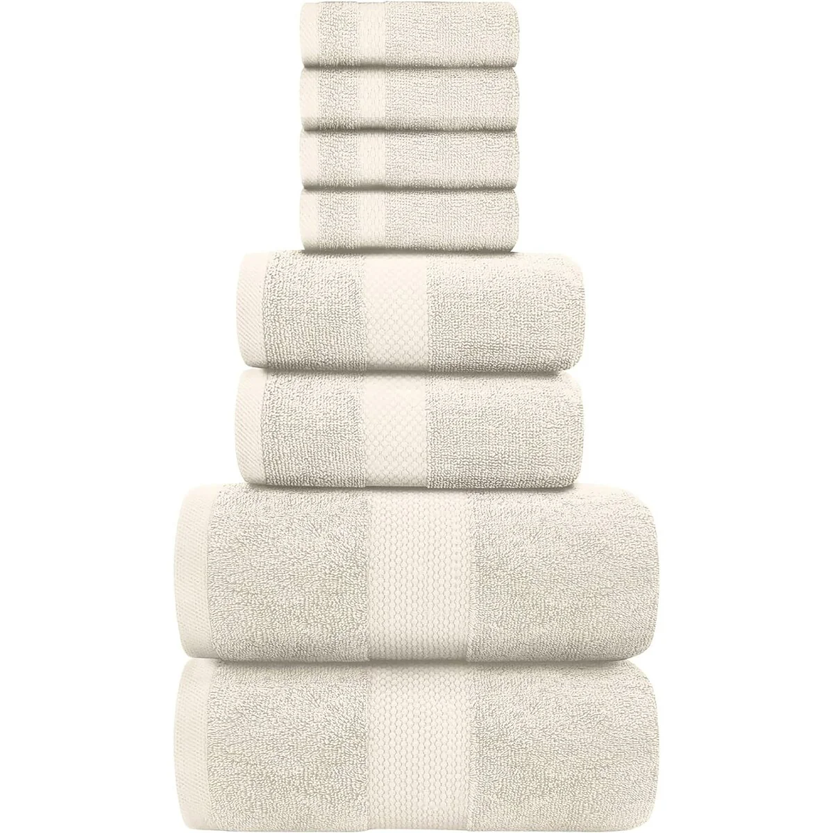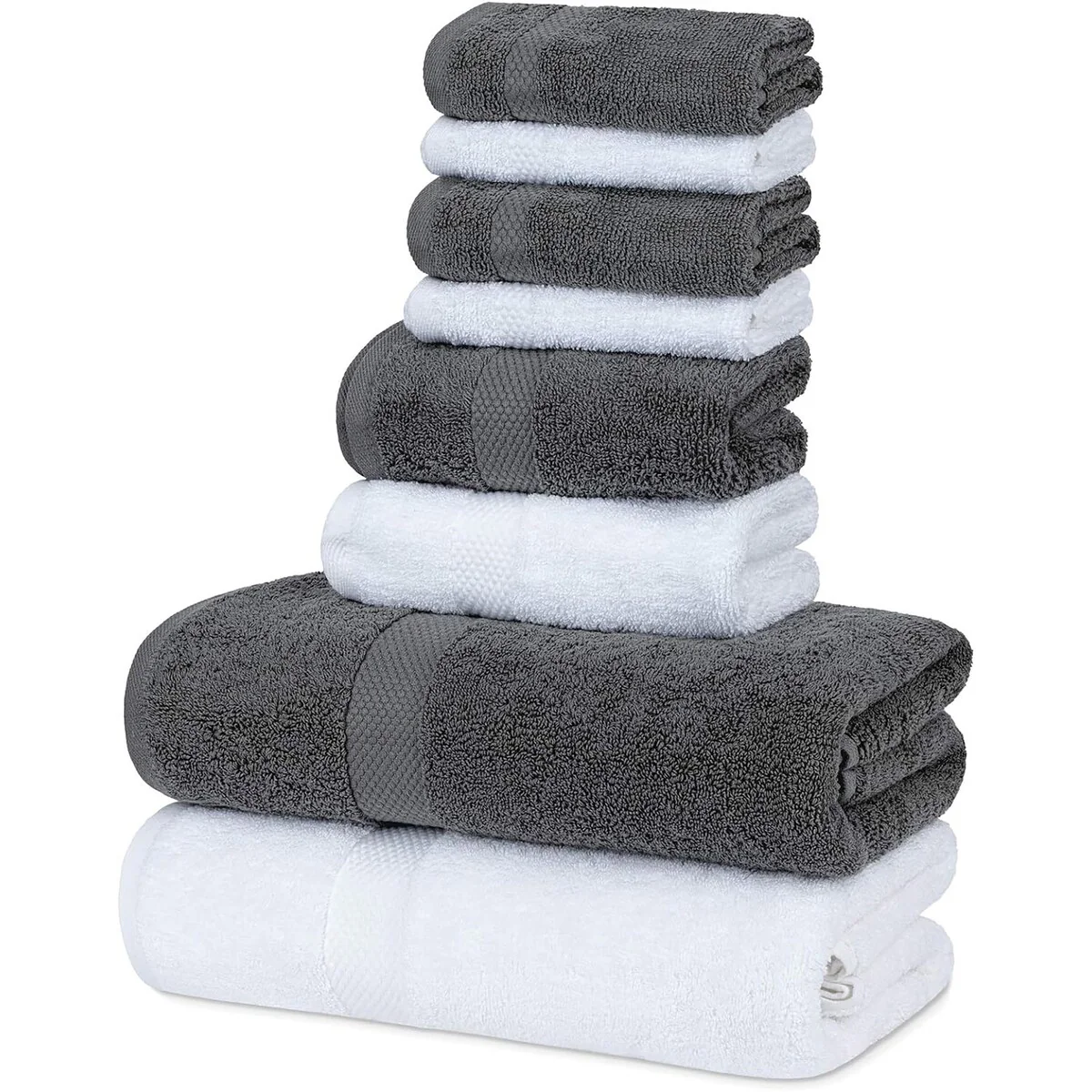 8 Piece Oversized Bath Towel Set, 100% Cotton Bath Towels, Highly Absorbant Bordered Towels