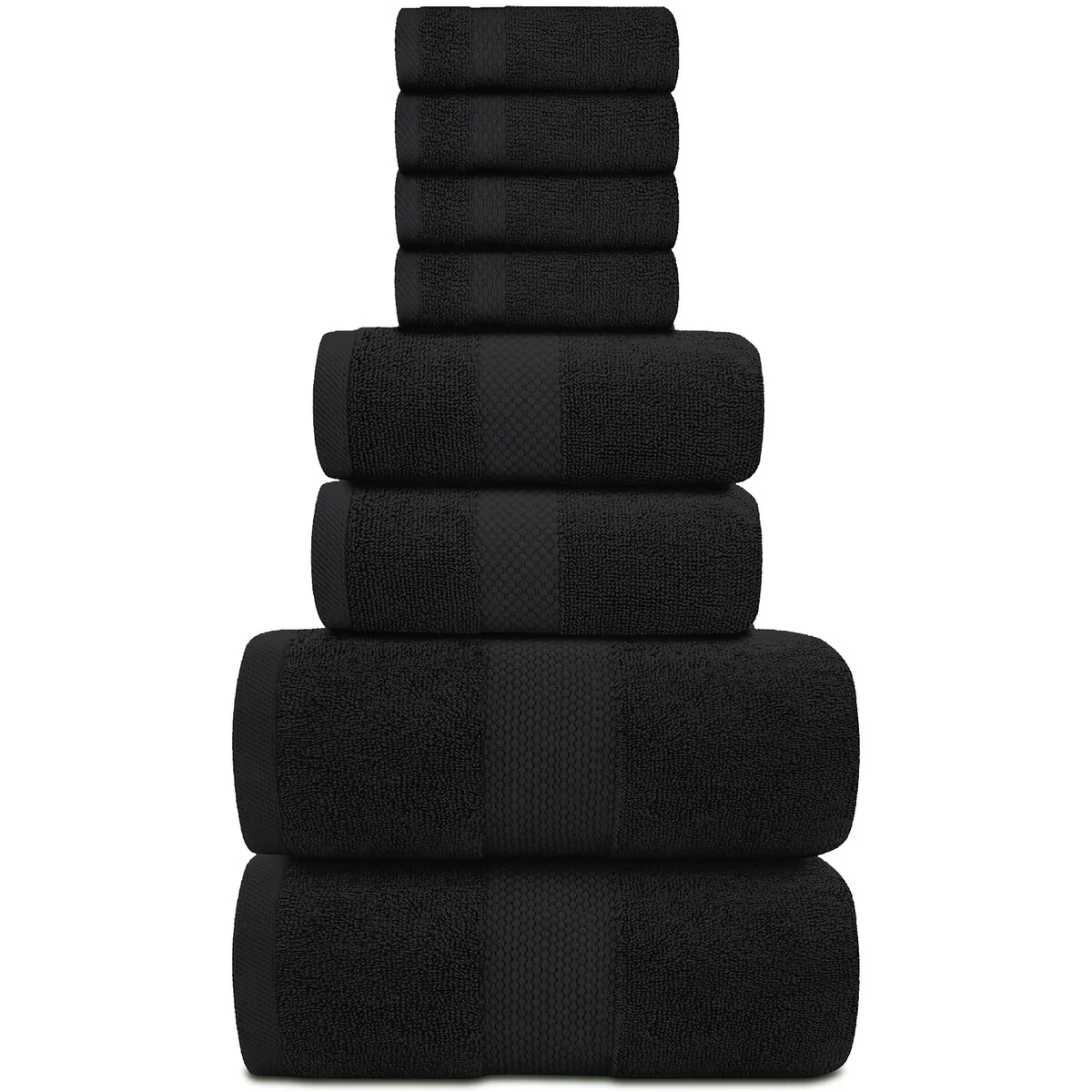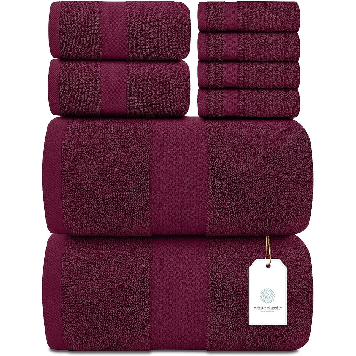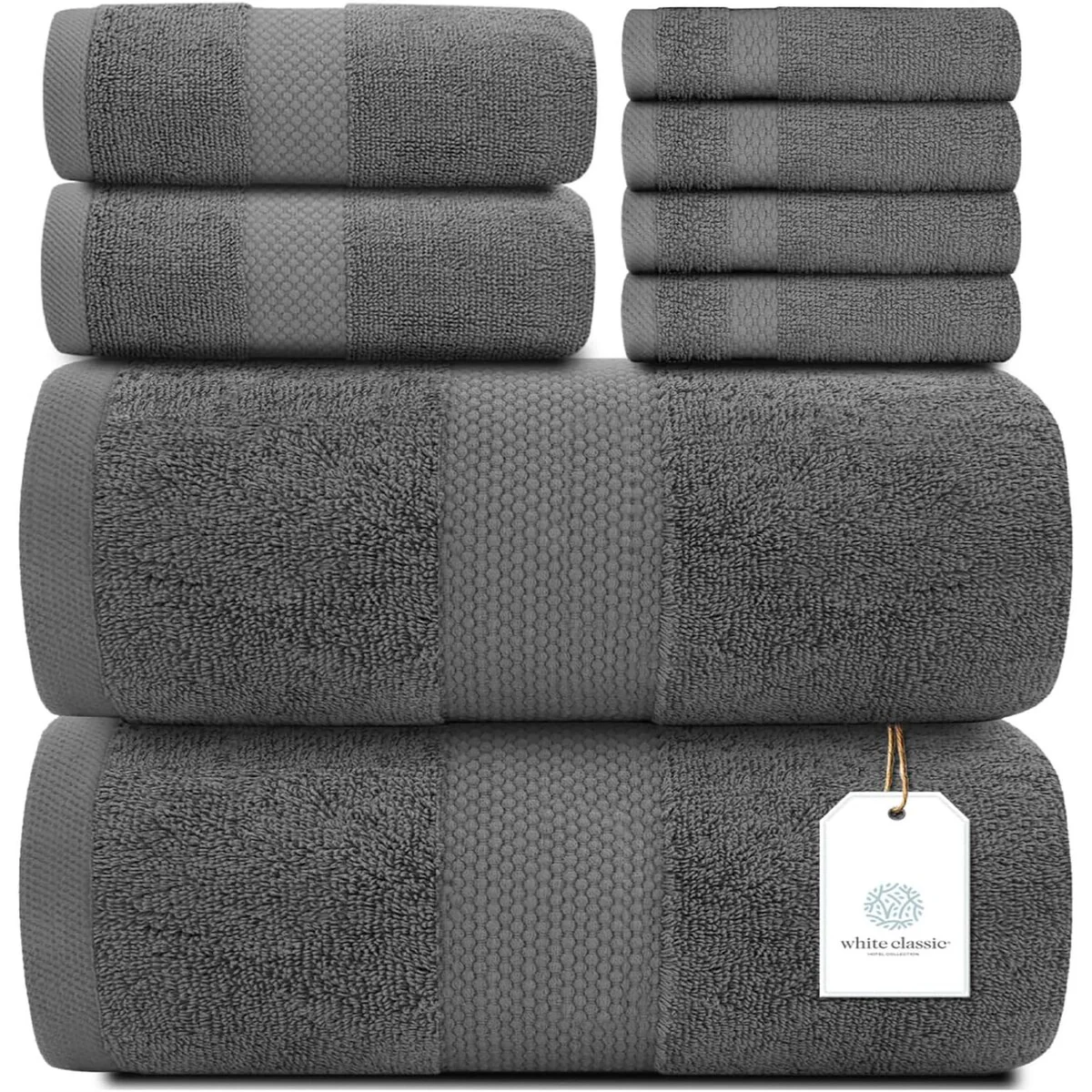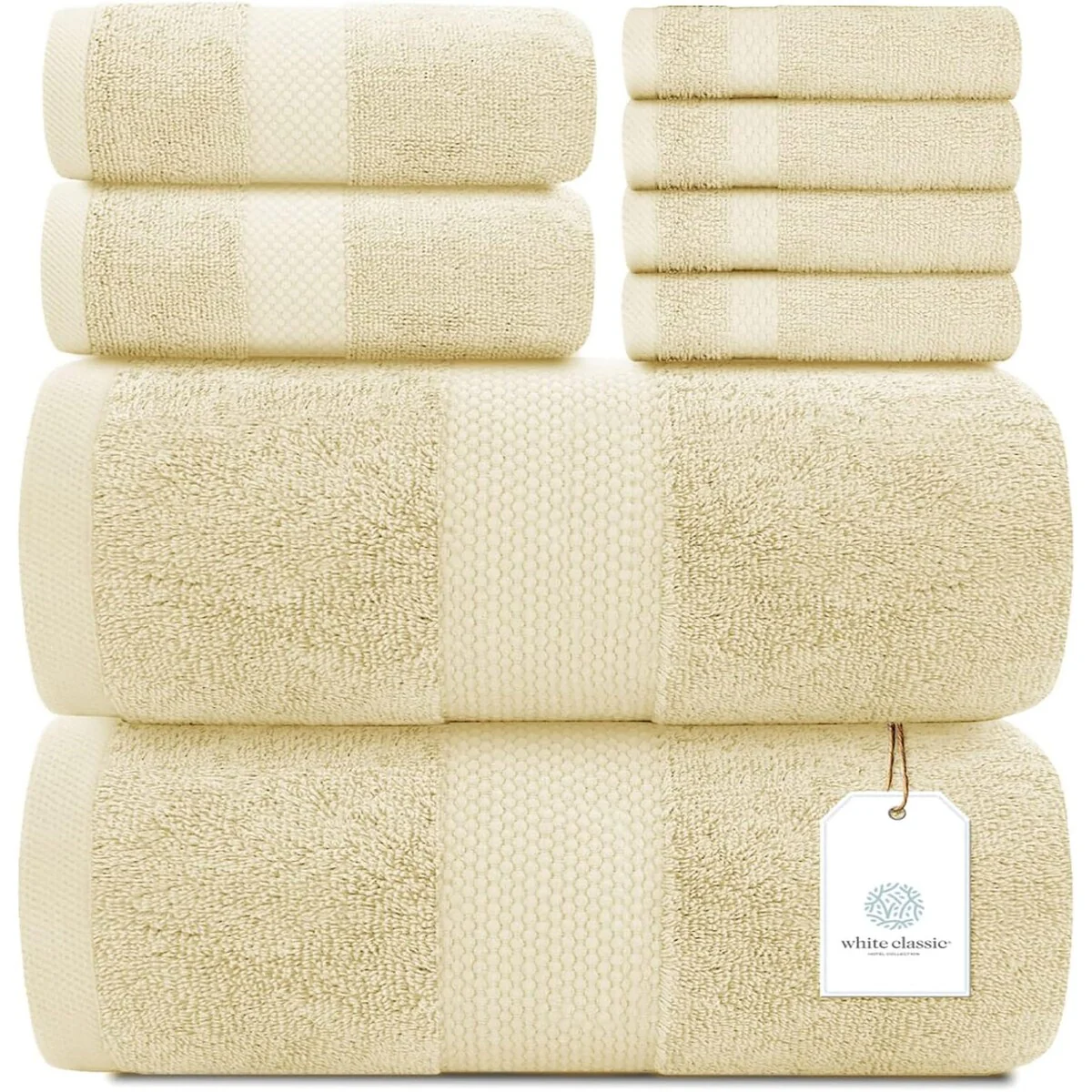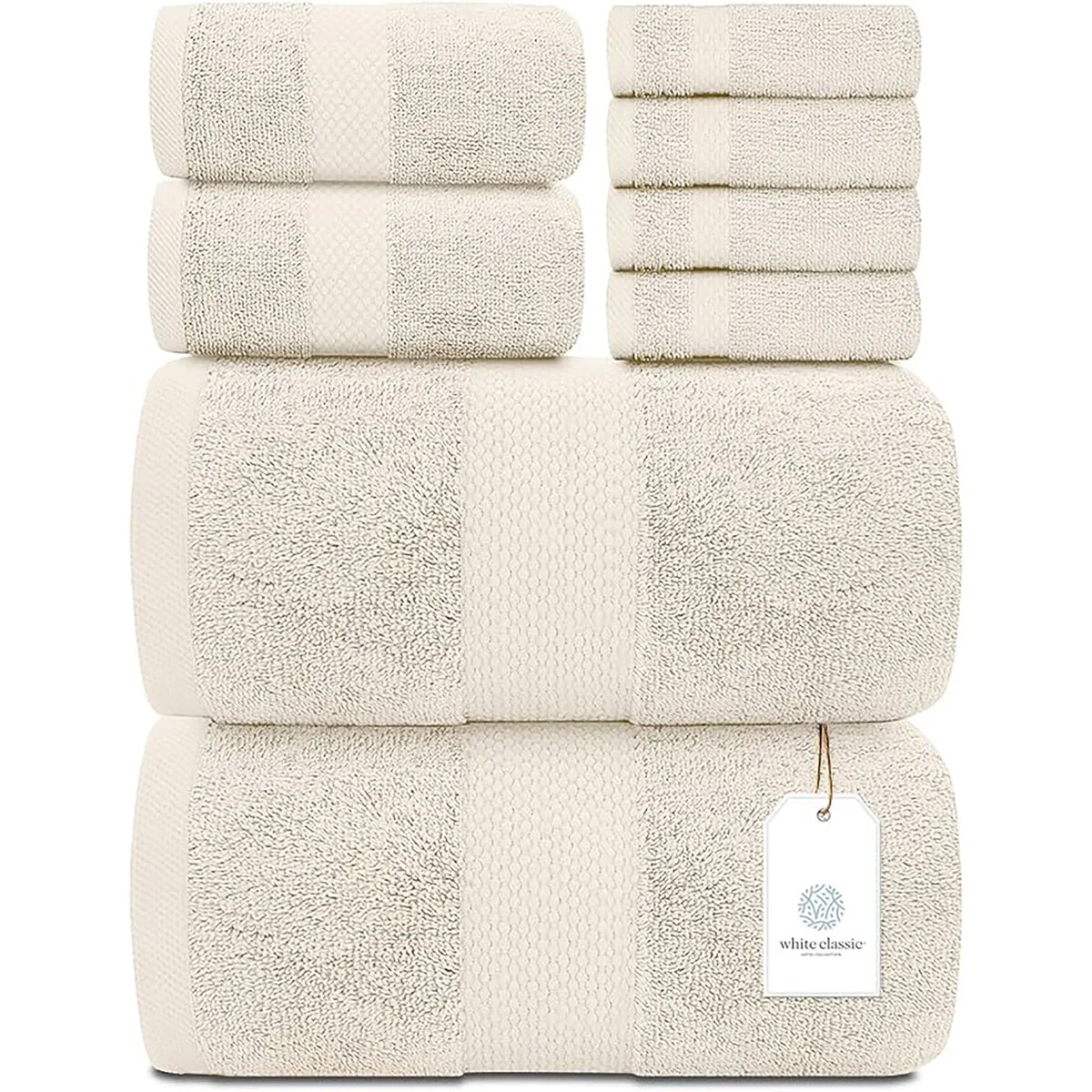 8 Piece Oversized Bath Towel Set, 100% Cotton Bath Towels, Highly Absorbant Bordered Towels