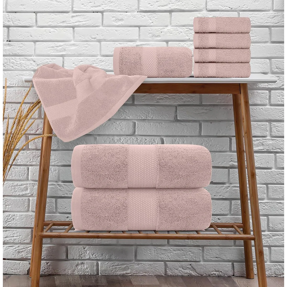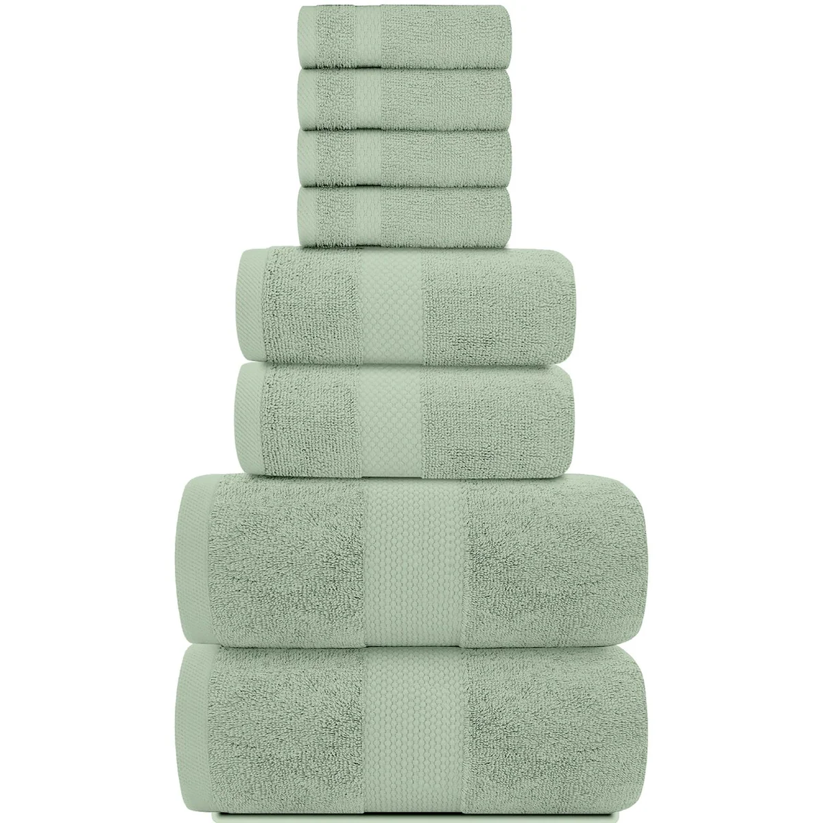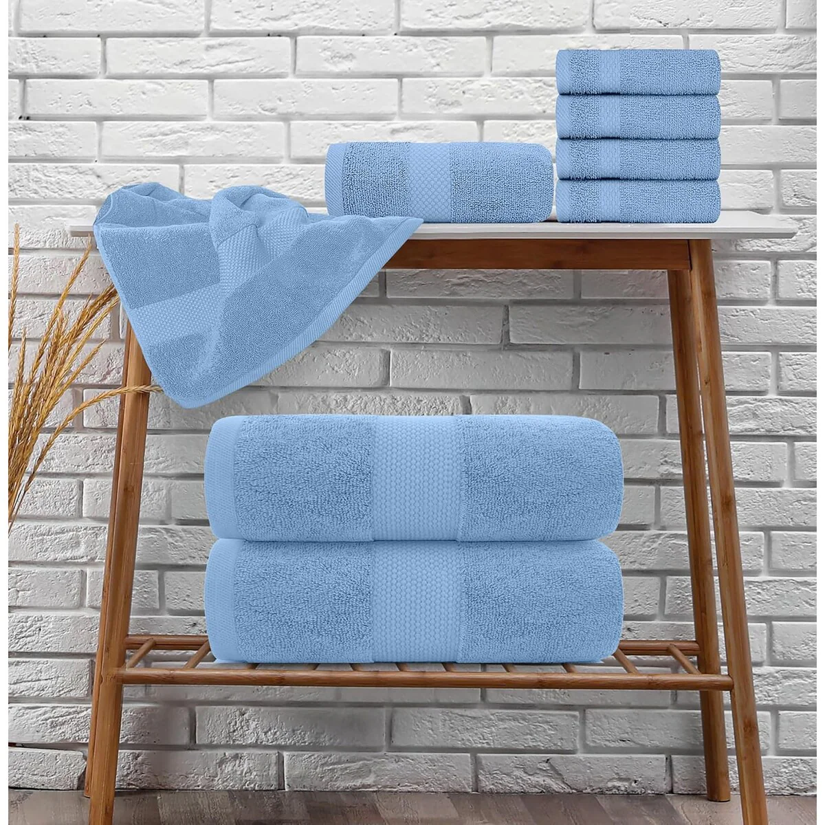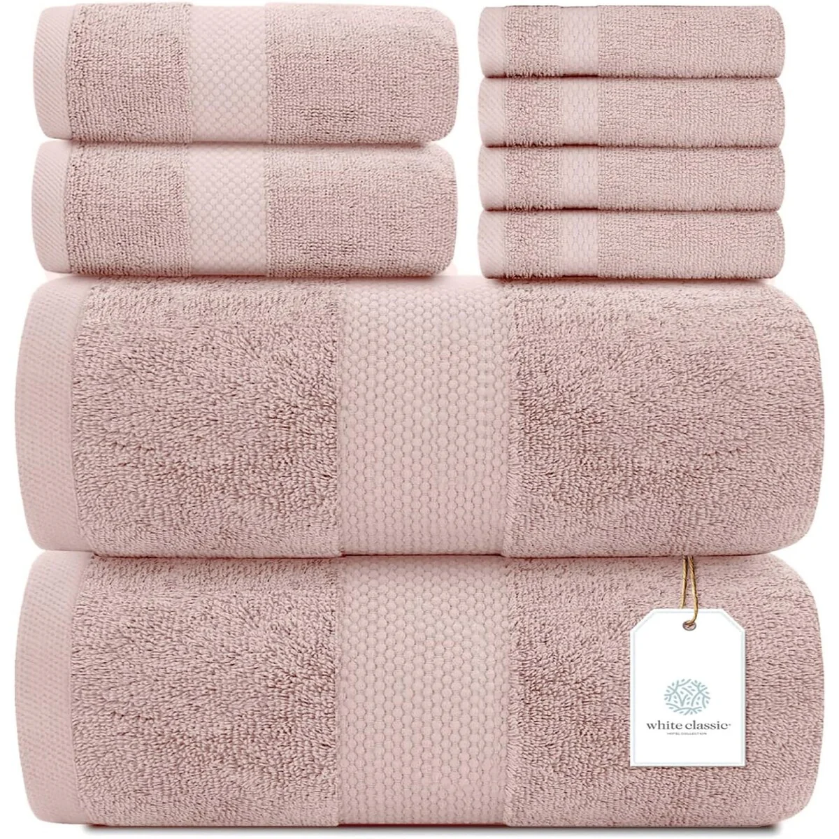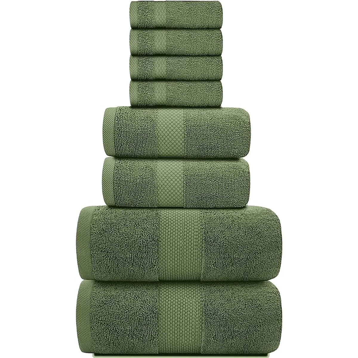 8 Piece Oversized Bath Towel Set, 100% Cotton Bath Towels, Highly Absorbant Bordered Towels