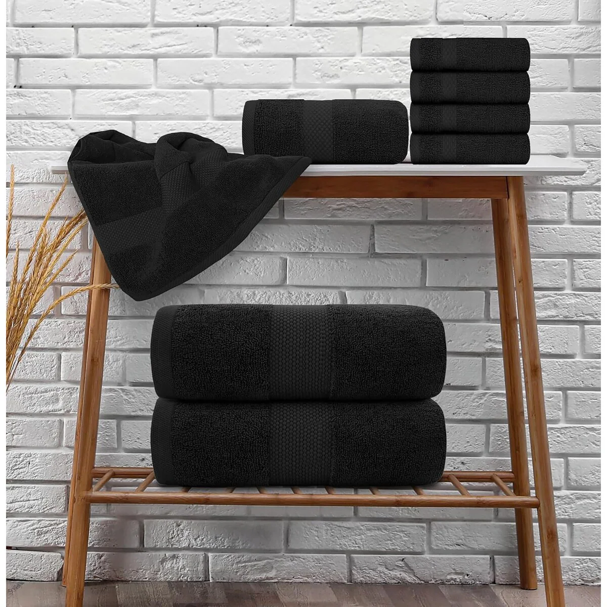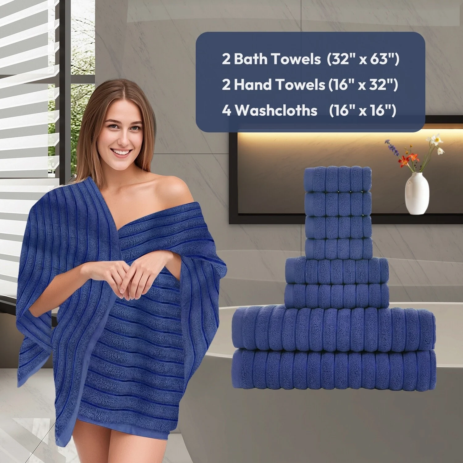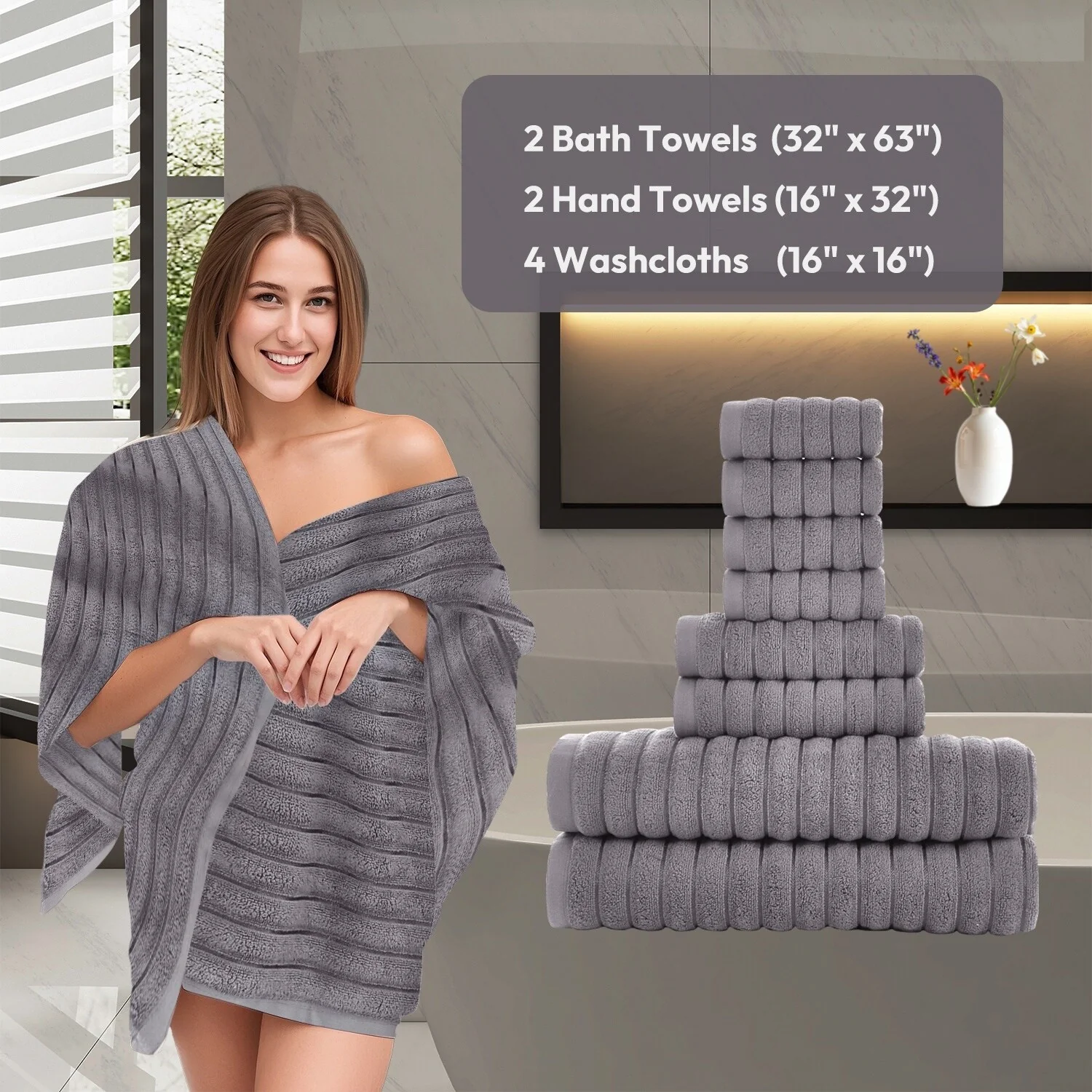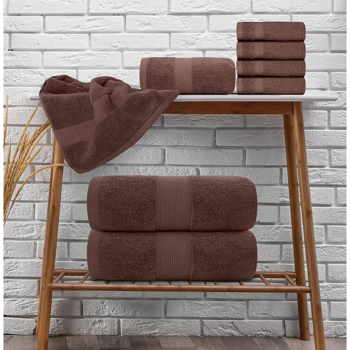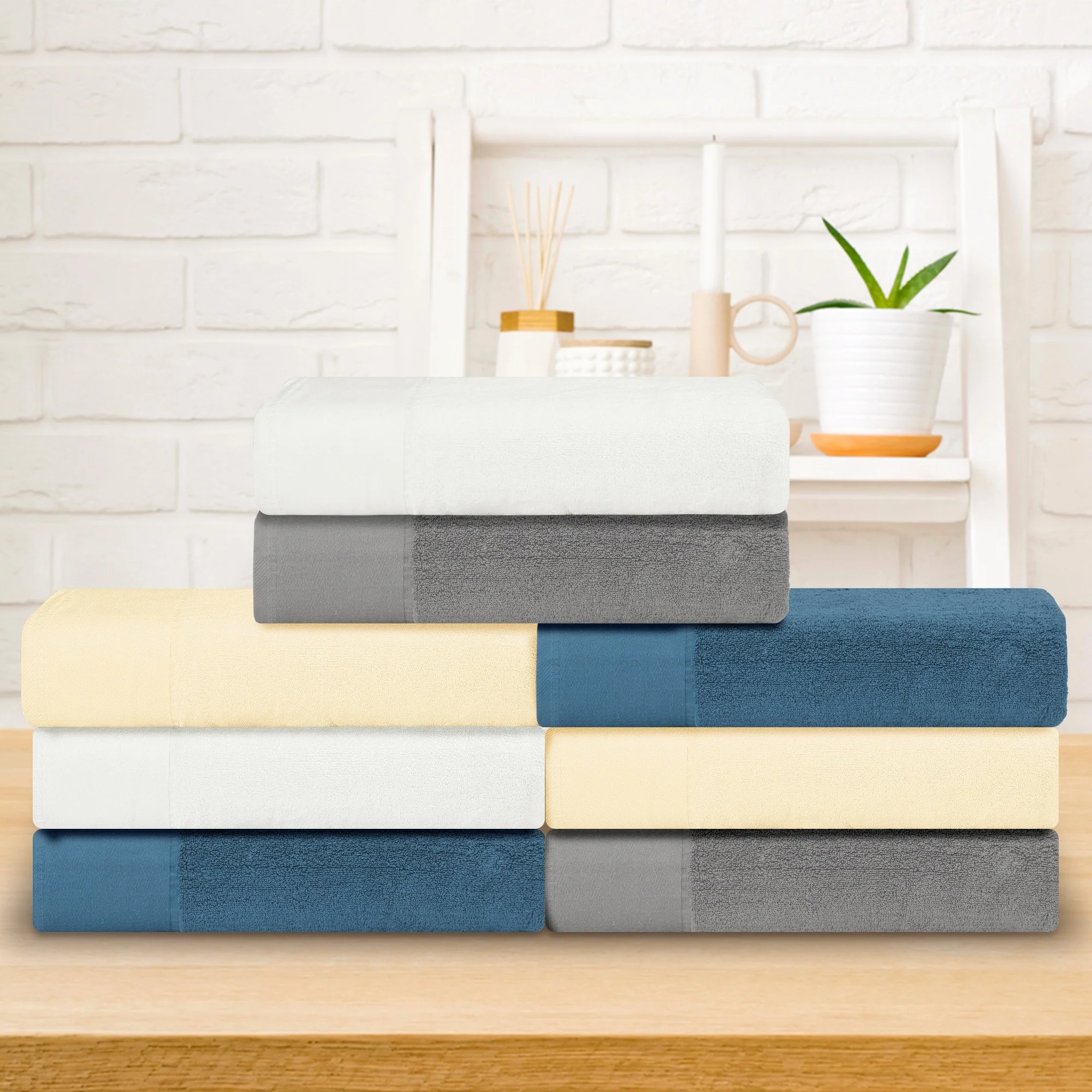 8 Piece Oversized Bath Towel Set, 100% Cotton Bath Towels, Highly Absorbant Bordered Towels