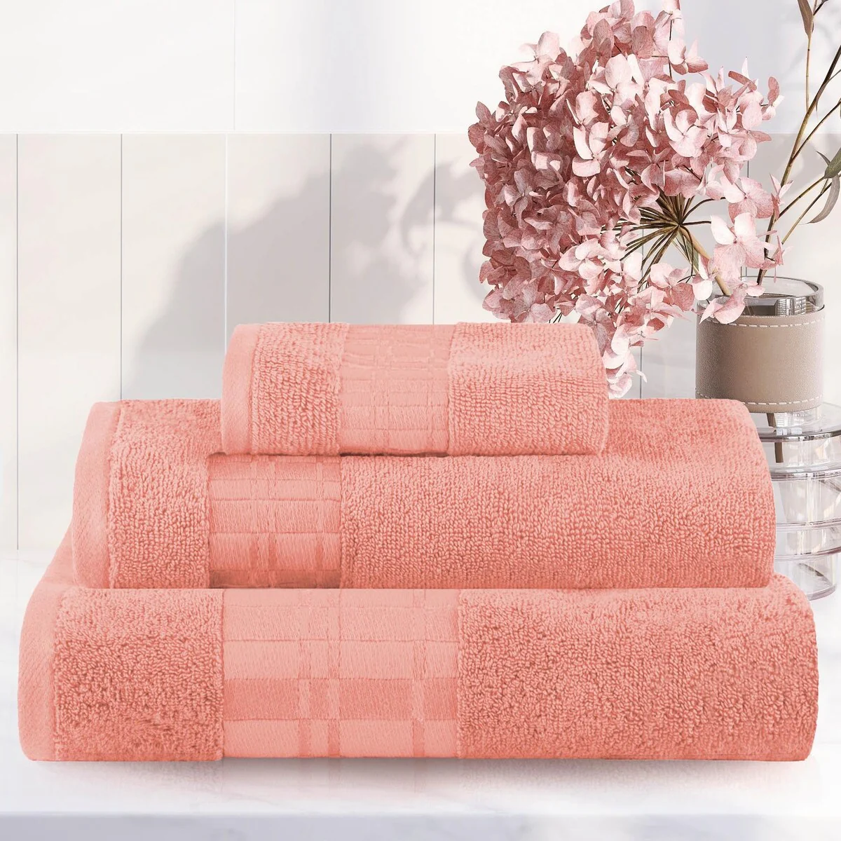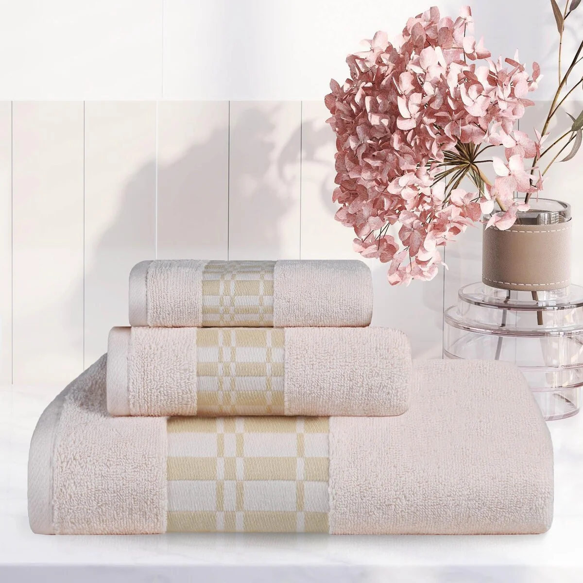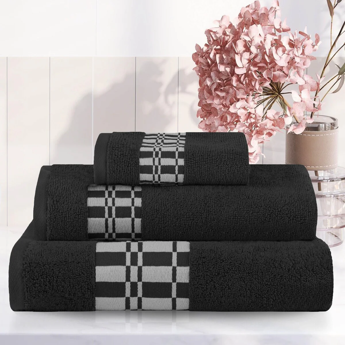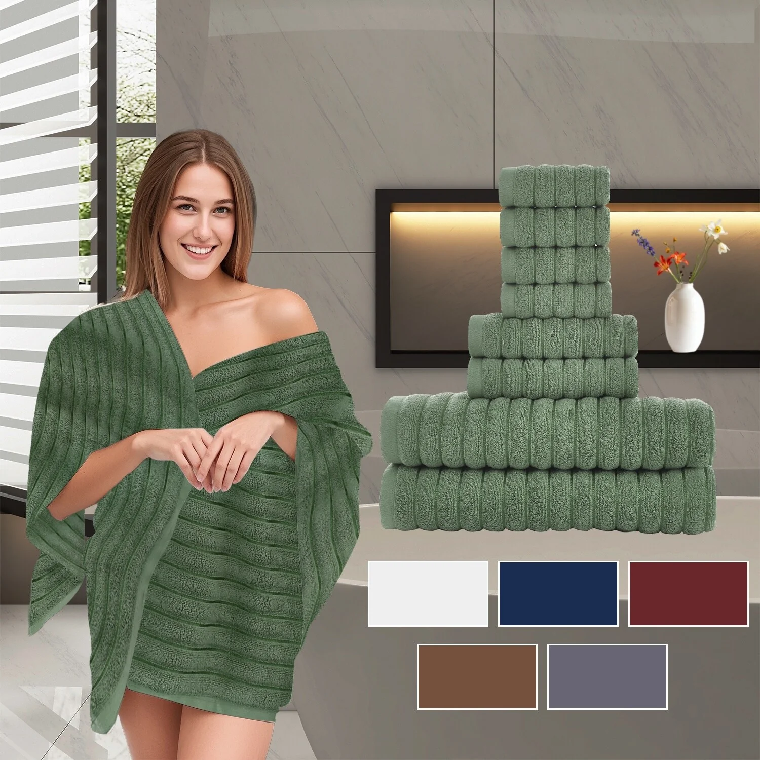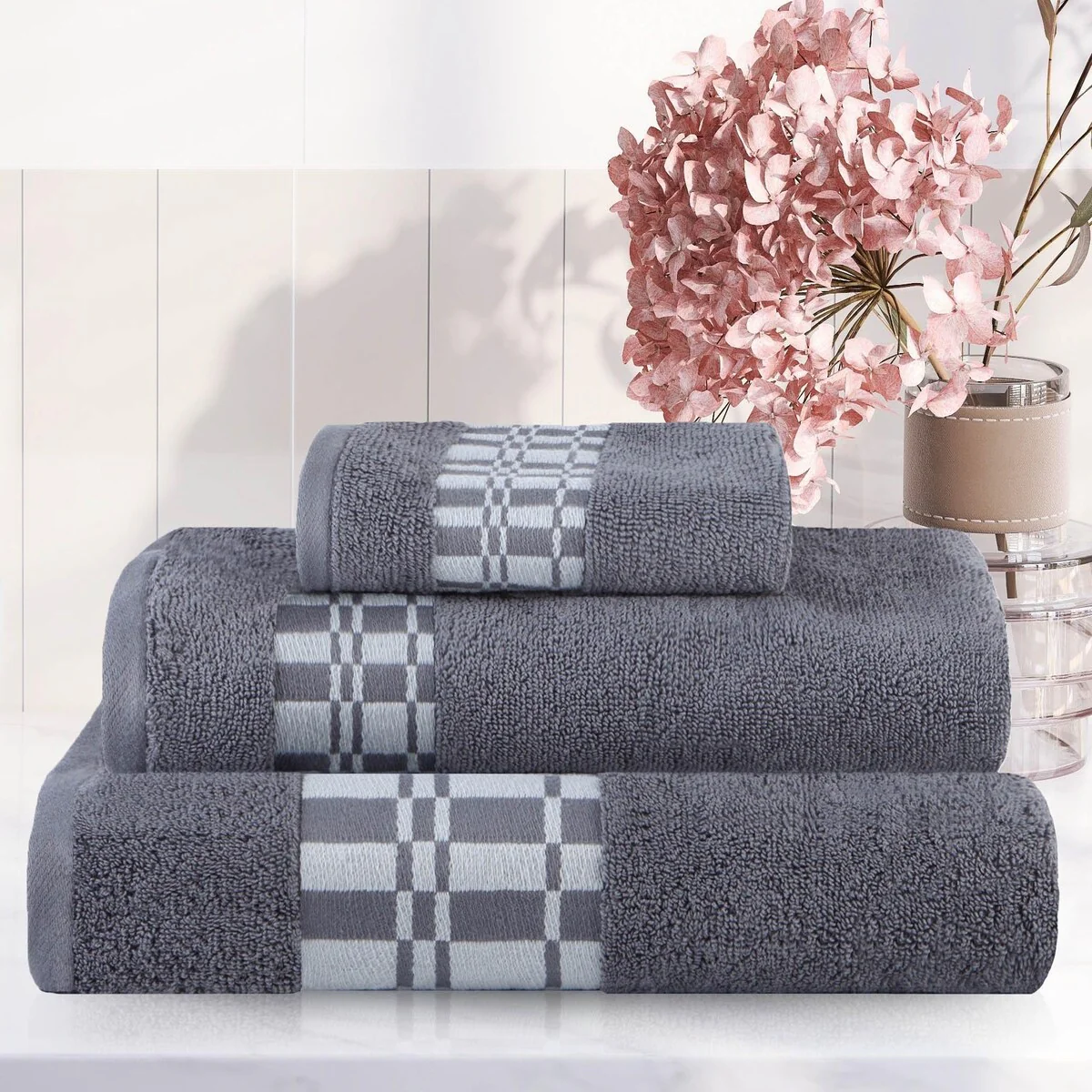 8 Piece Oversized Bath Towel Set, 100% Cotton Bath Towels, Highly Absorbant Bordered Towels