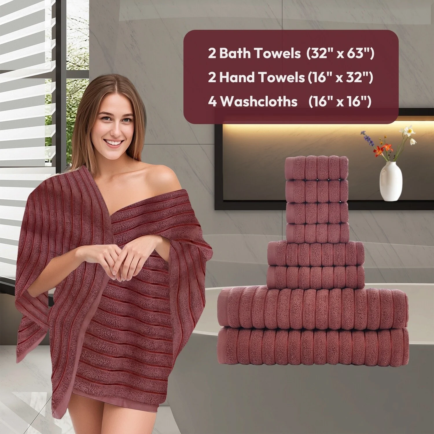 Burgundy-Bath Towel;Hand Towel;Washcloth