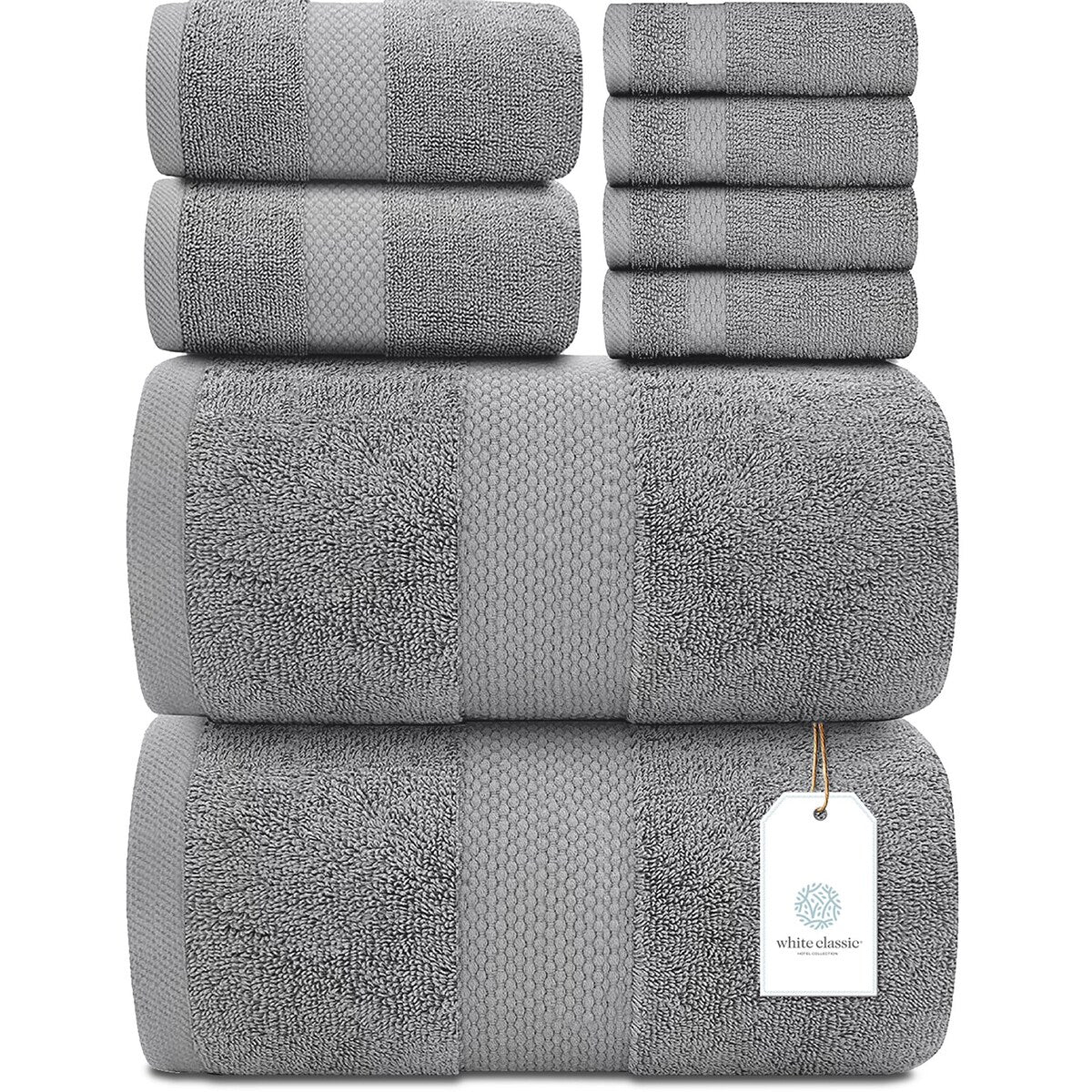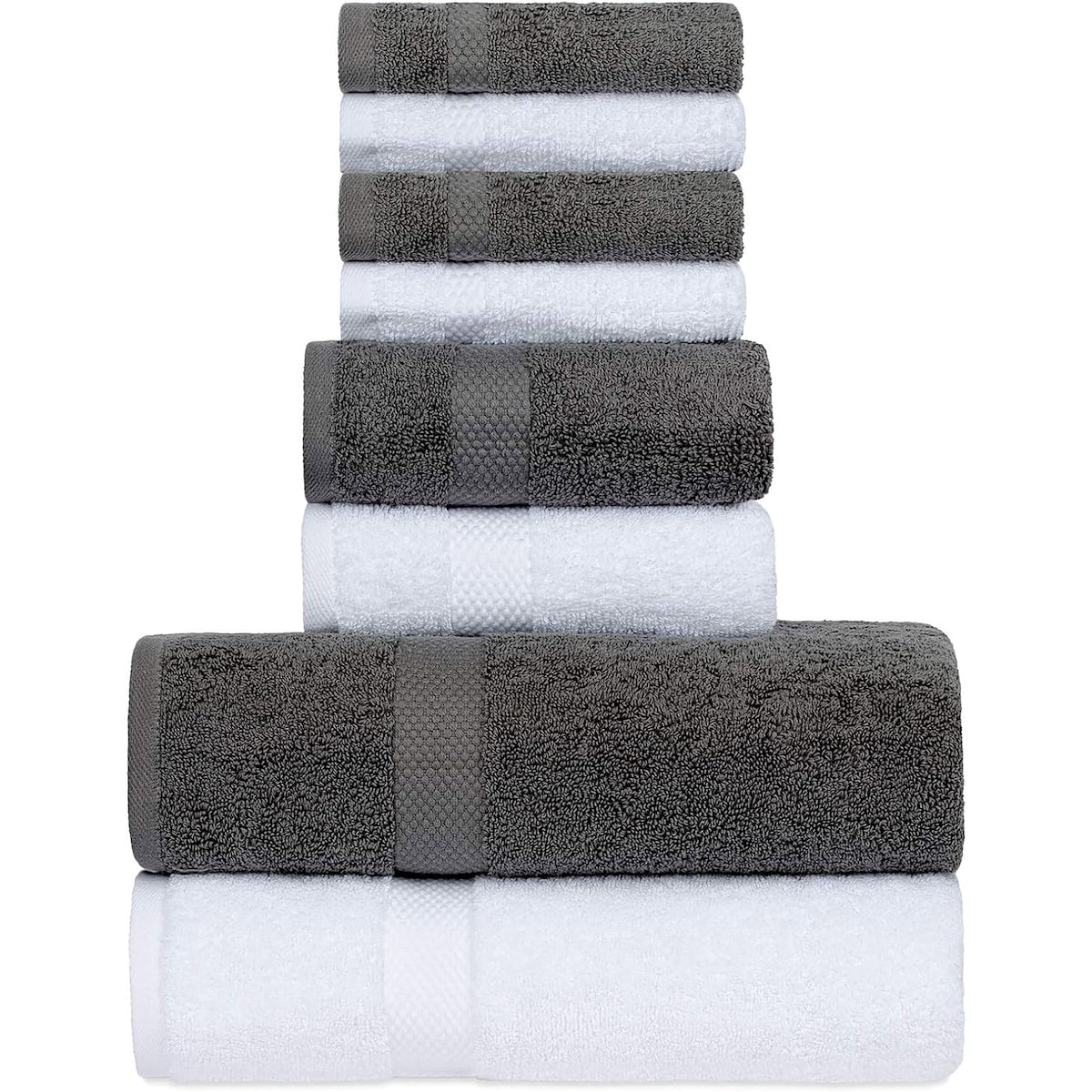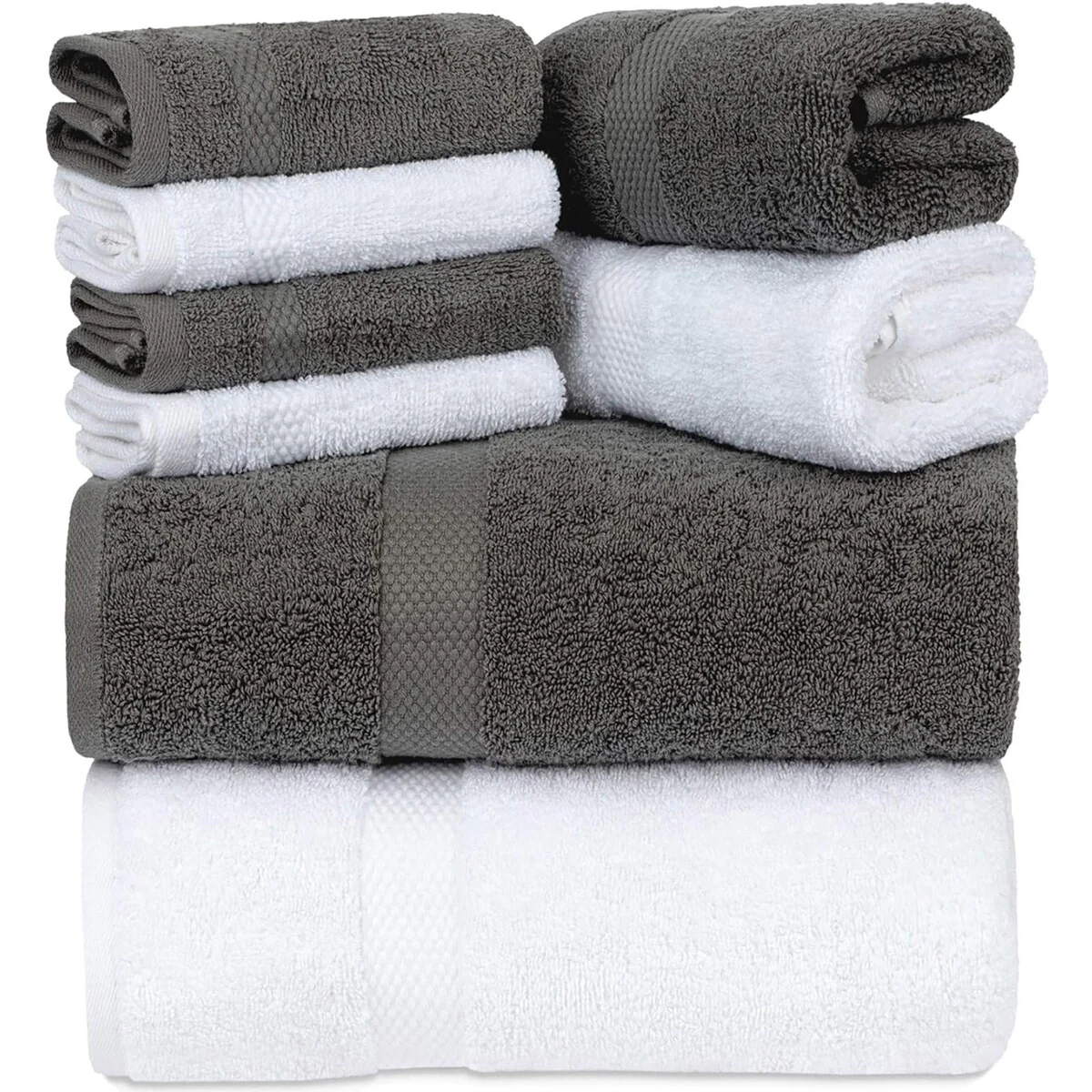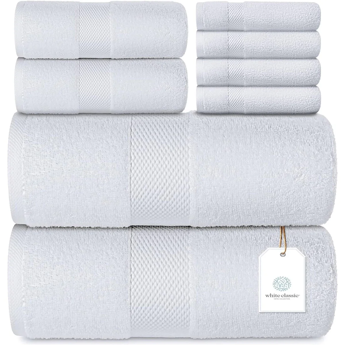 White Classic Luxury Cotton 8Pc Multi Size Towel Set [2 Bath Towels, 2 Hand Towels, 4 Washcloths] - N/A
